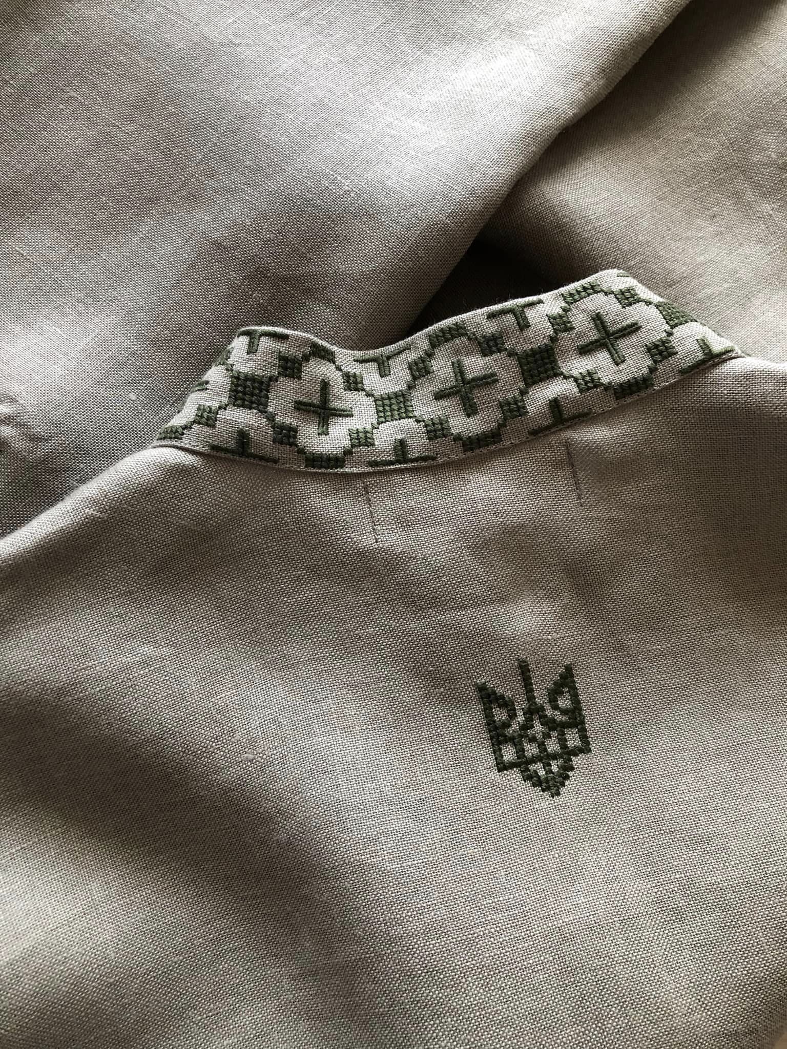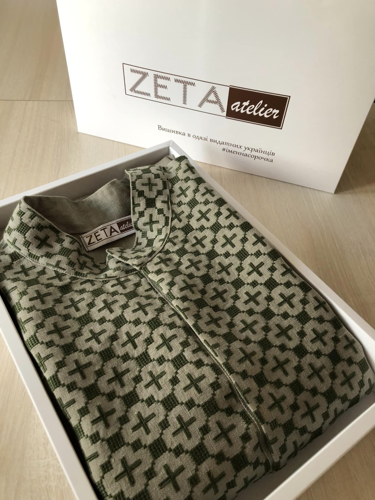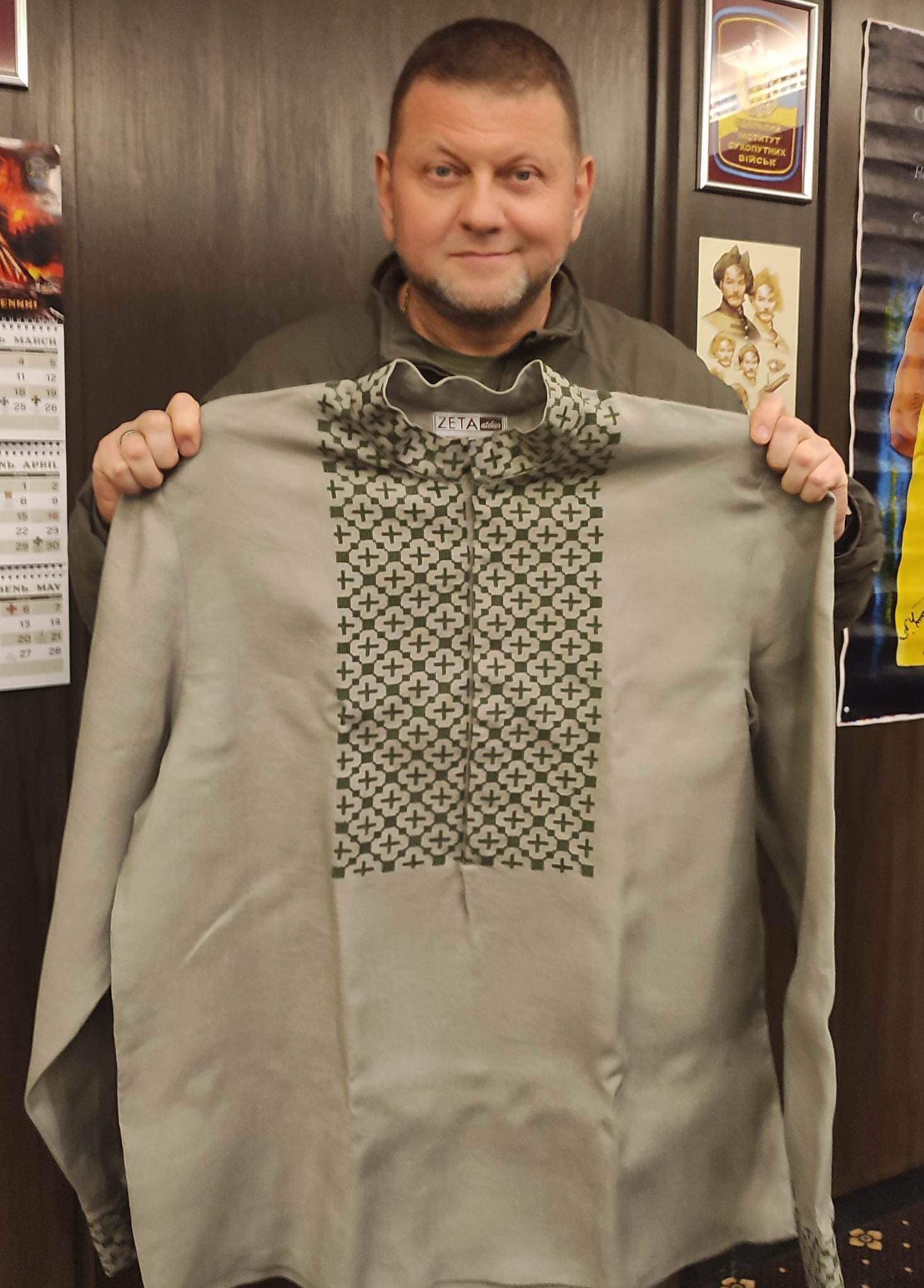 – Потім Таня «запалилась» новою великою ідеєю – подарувати «бандерівку» Головнокомандувачу нашої армії Валерію Залужному. Спеціально для нього ми дещо видозмінили сорочку – вона у стилі «мілітарі» (зелений орнамент) і на спині має невеликий тризуб. Вишиванка зроблена за моєю схемою, створила її львівська майстриня Ольга Лелик, а докупи зшила Тетяна. Тобто, над сорочкою працювали ми троє. Я не вірила, що дівчатам вдасться подарувати її Залужному, – дивується Вікторія.
