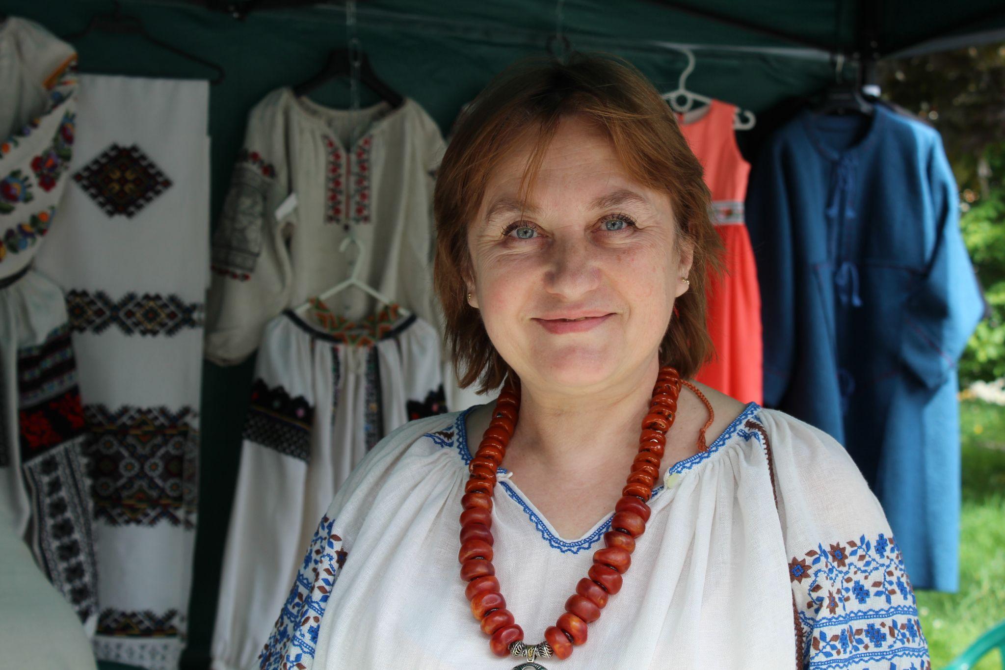 З Вікторією Кривоніс спілкуємось під час ярмарку, який організував Тернопільський обласний методичний центр народної творчості напередодні Дня вишиванки. Жінка принесла сюди власні вироби – неймовірної краси борщівські сорочки, вишиті хрестиком рушники й намиста з натуральних каменів.