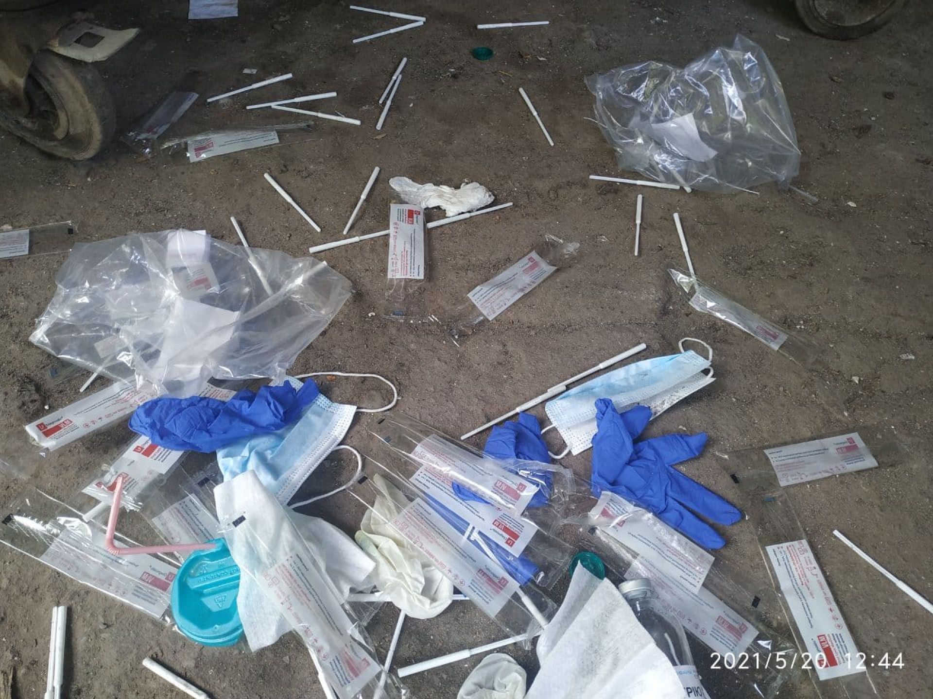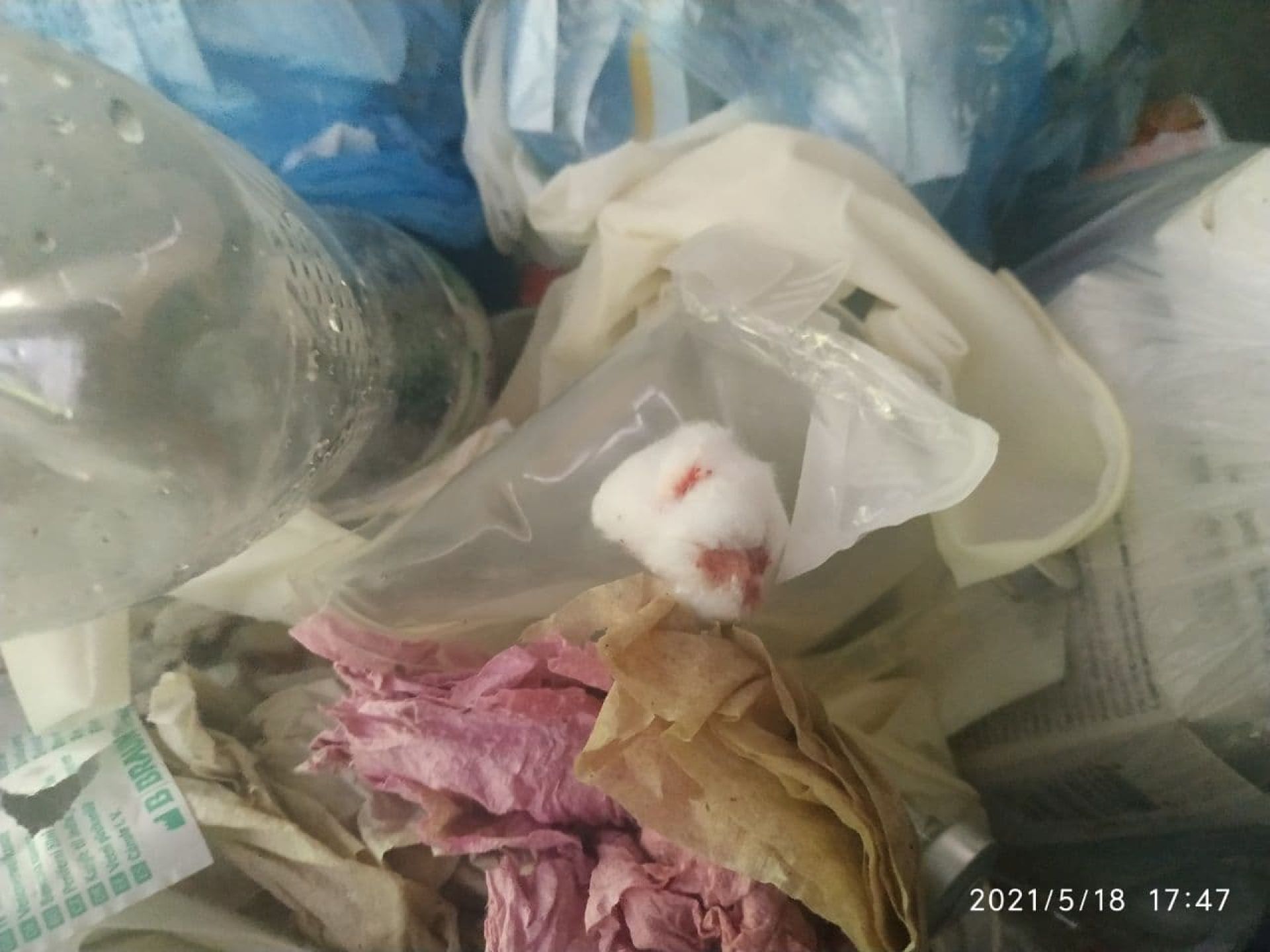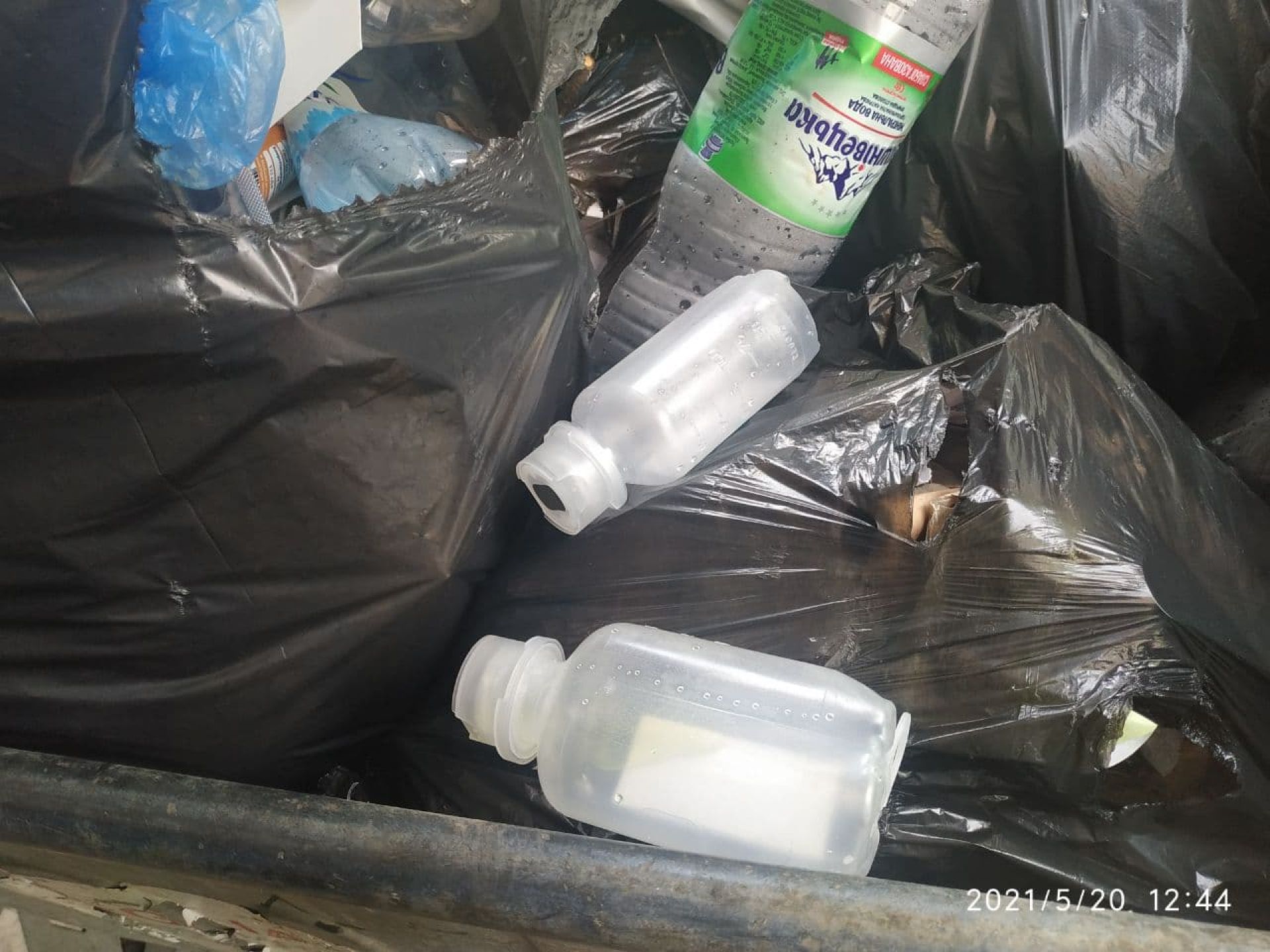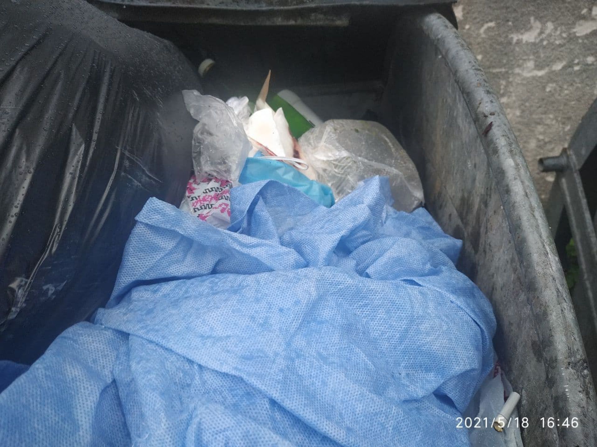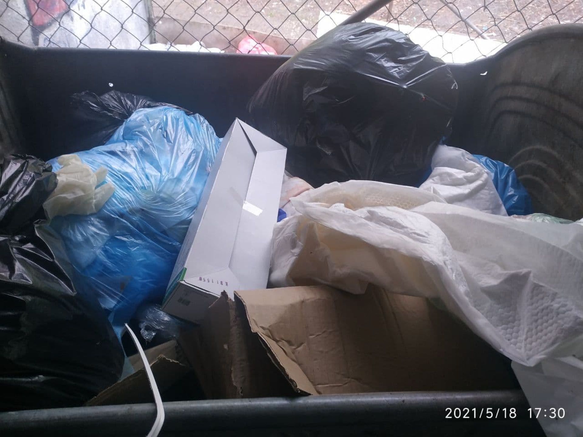 У сміттєвих баках, окрім побутових відходів були і використані маски, рукавички, крапельниці, але без голок, а також ватні диски та вата, на якій залишилася кров.