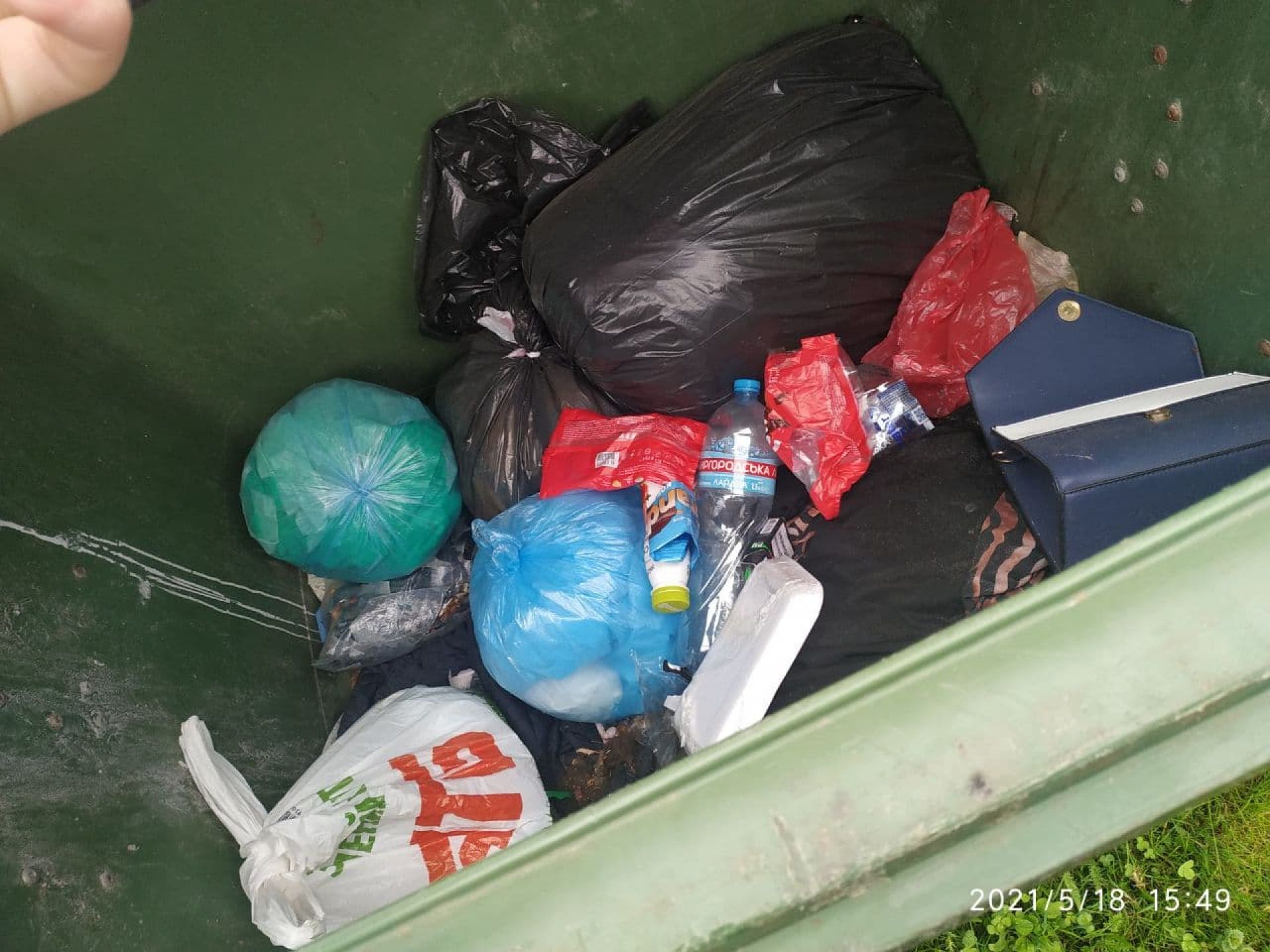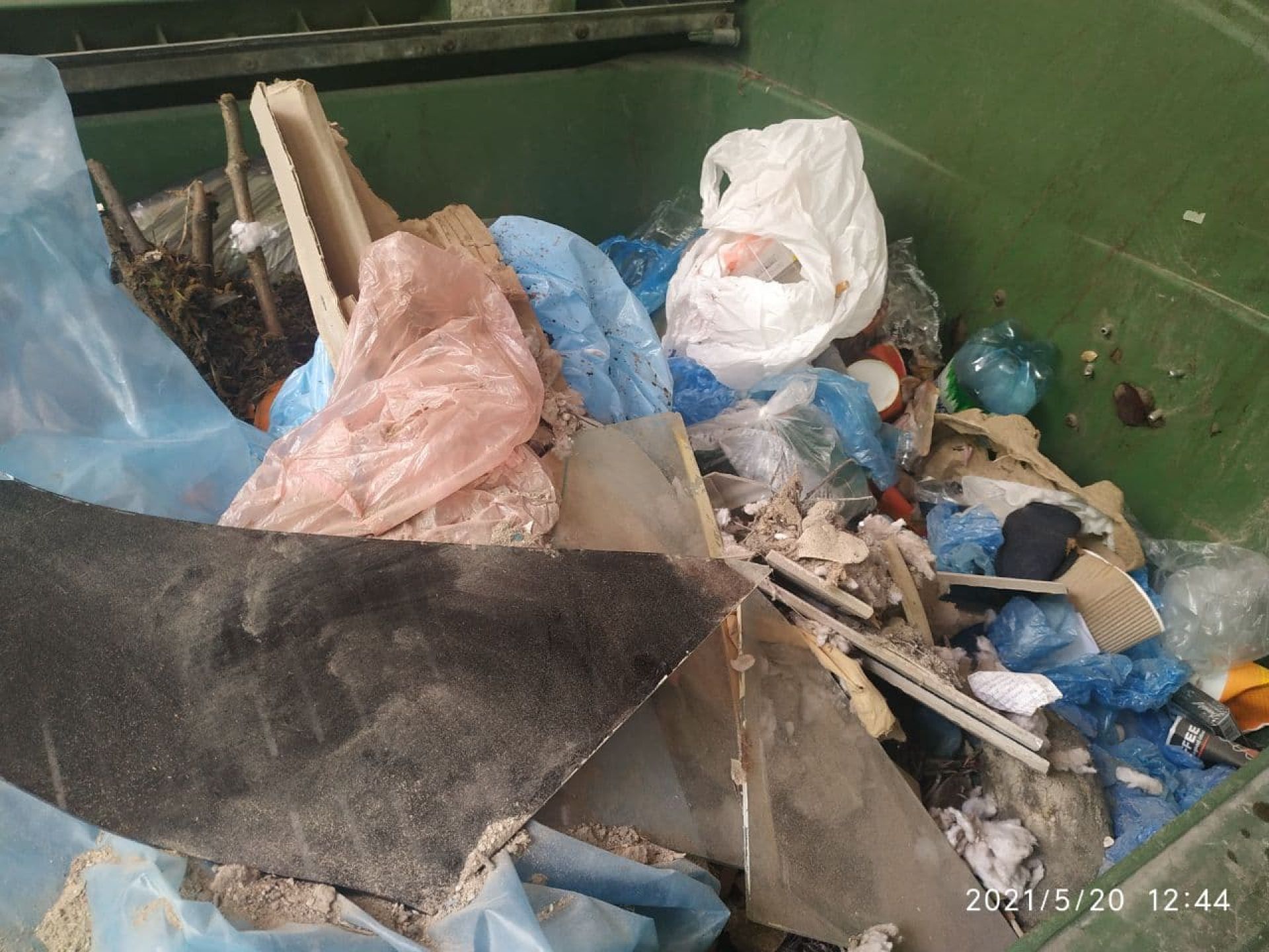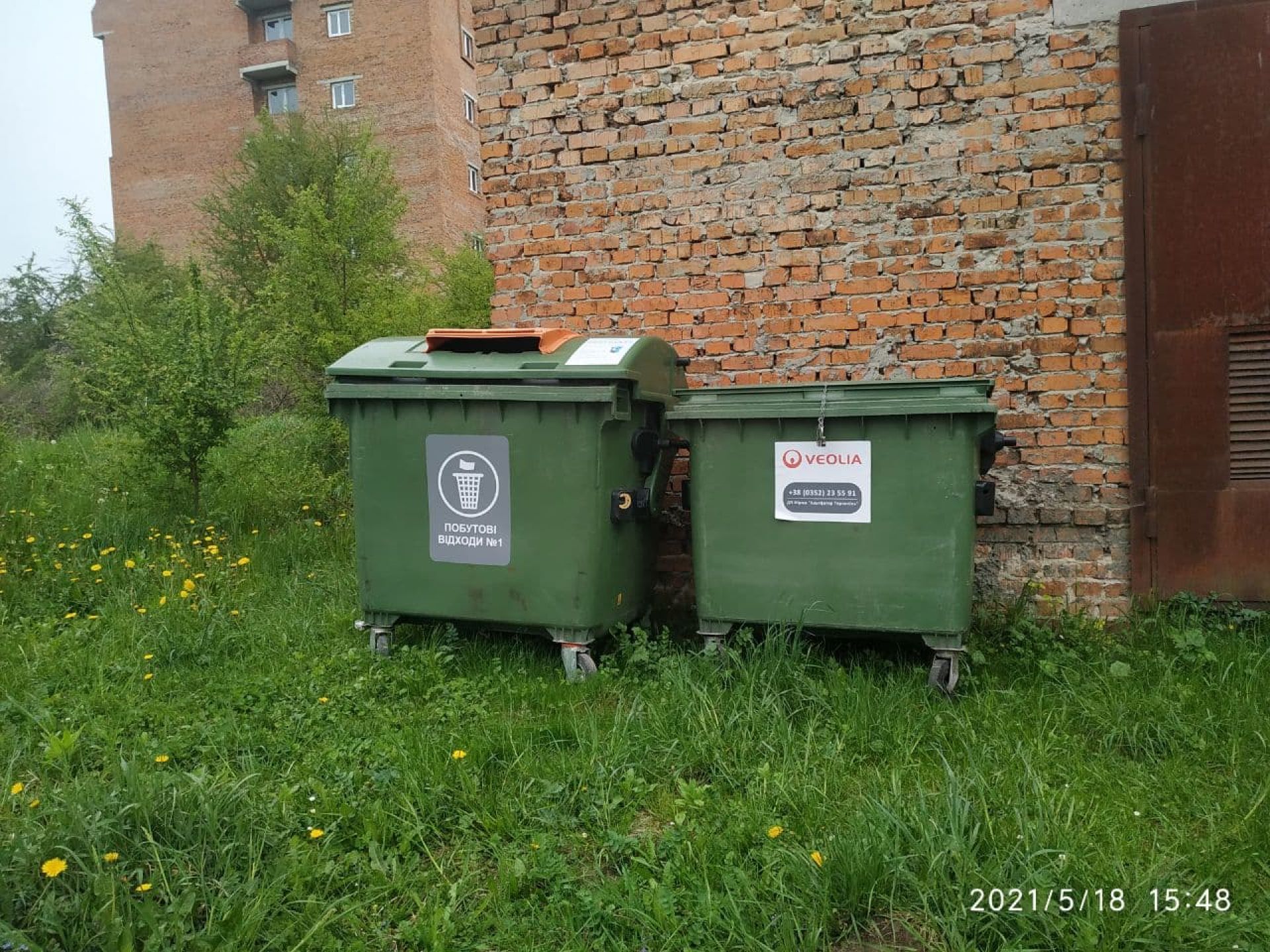 Побачили лише два сміттєвих баки, один з яких закрили на замок. У відкритому баку було лише побутове сміття та декілька сміттєвих пакетів, які ми не відкривали.
