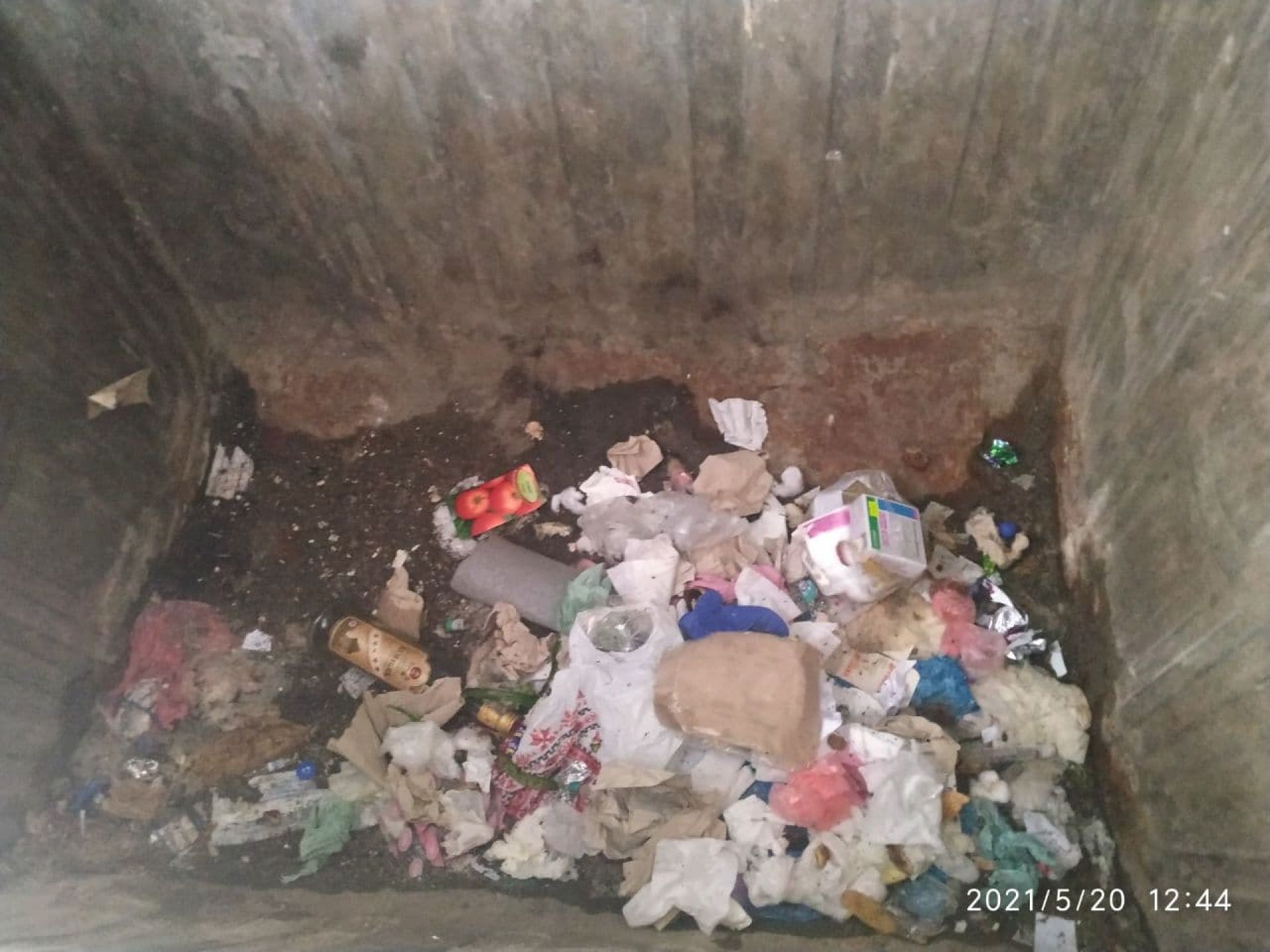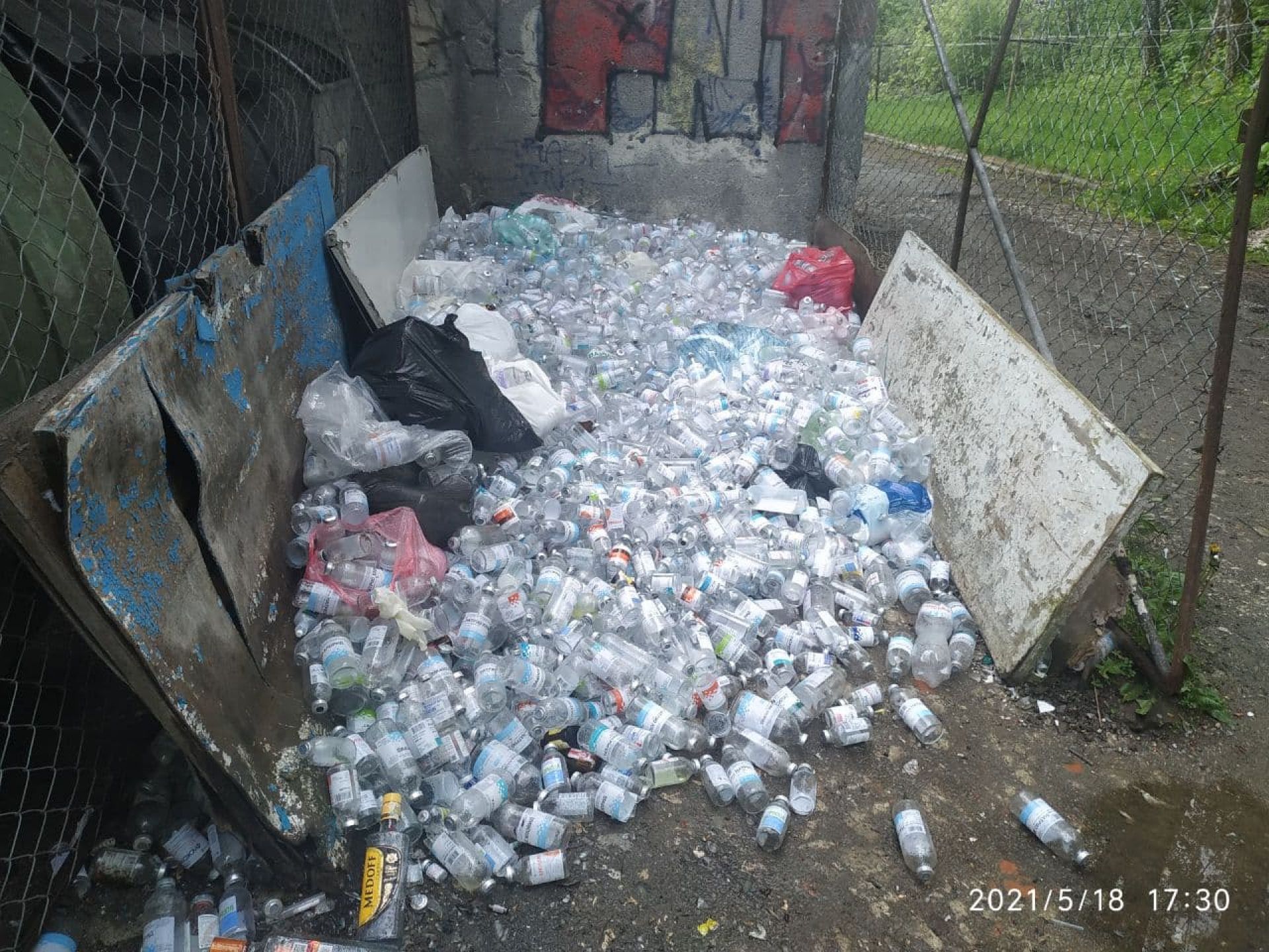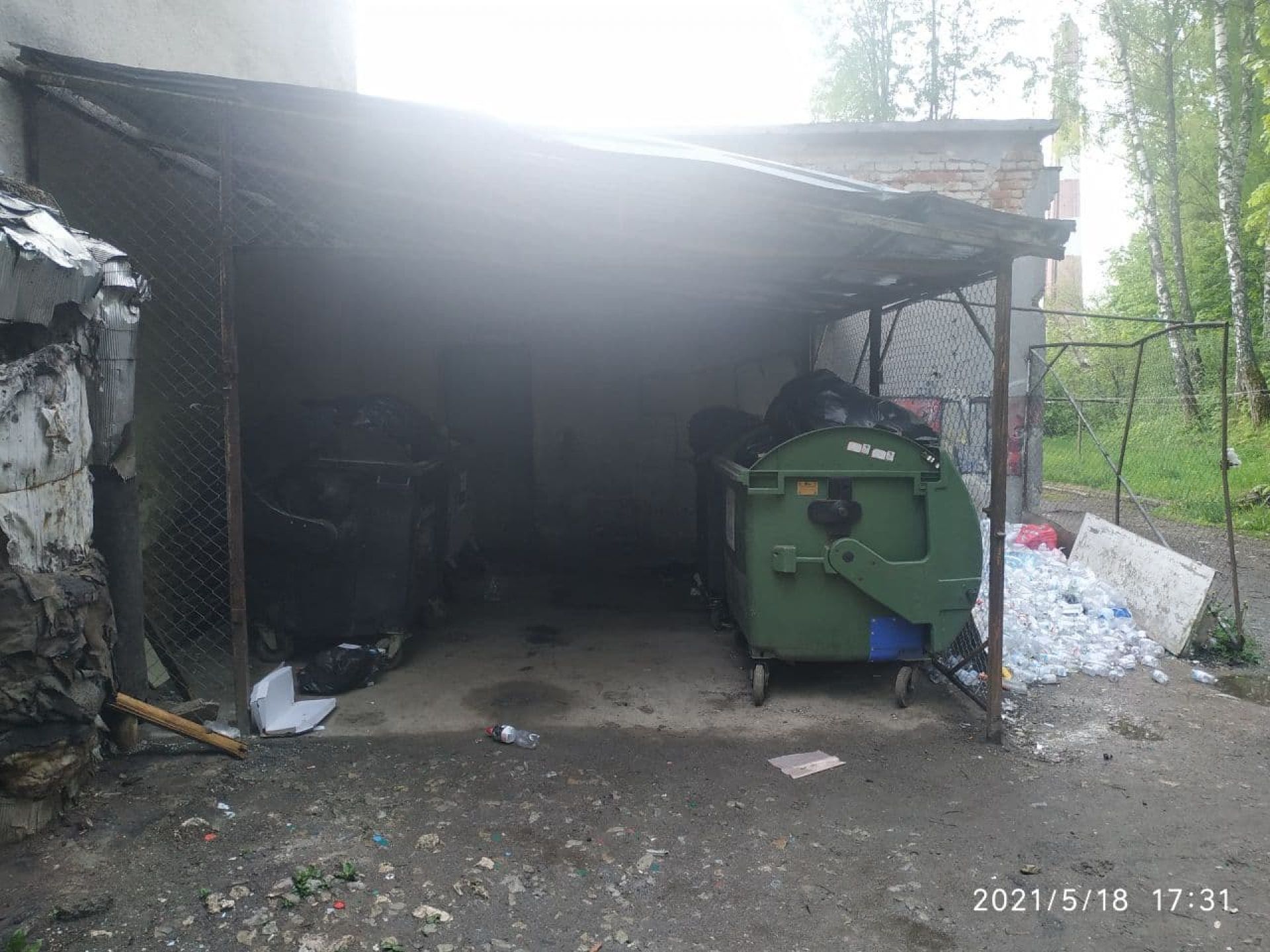 Побачили лише два сміттєвих баки, один з яких закрили на замок. У відкритому баку було лише побутове сміття та декілька сміттєвих пакетів, які ми не відкривали.