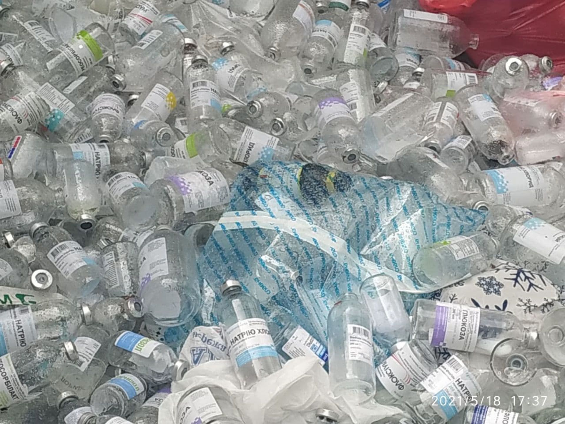 – Щодо скла, яке ми зберігаємо окремо, воно не належить до медичних відходів, а до побутових. Так, в нас є багато скляних пляшок та інших скляних відходів. Ми зберігаємо їх та шукаємо представників фірм, які куплять в нас це скло, тож матимемо певний дохід. Чи можна було б його збирати в контейнер, а не скидати насипом? Напевно, ми так і зробимо, – розповіла лікарка.