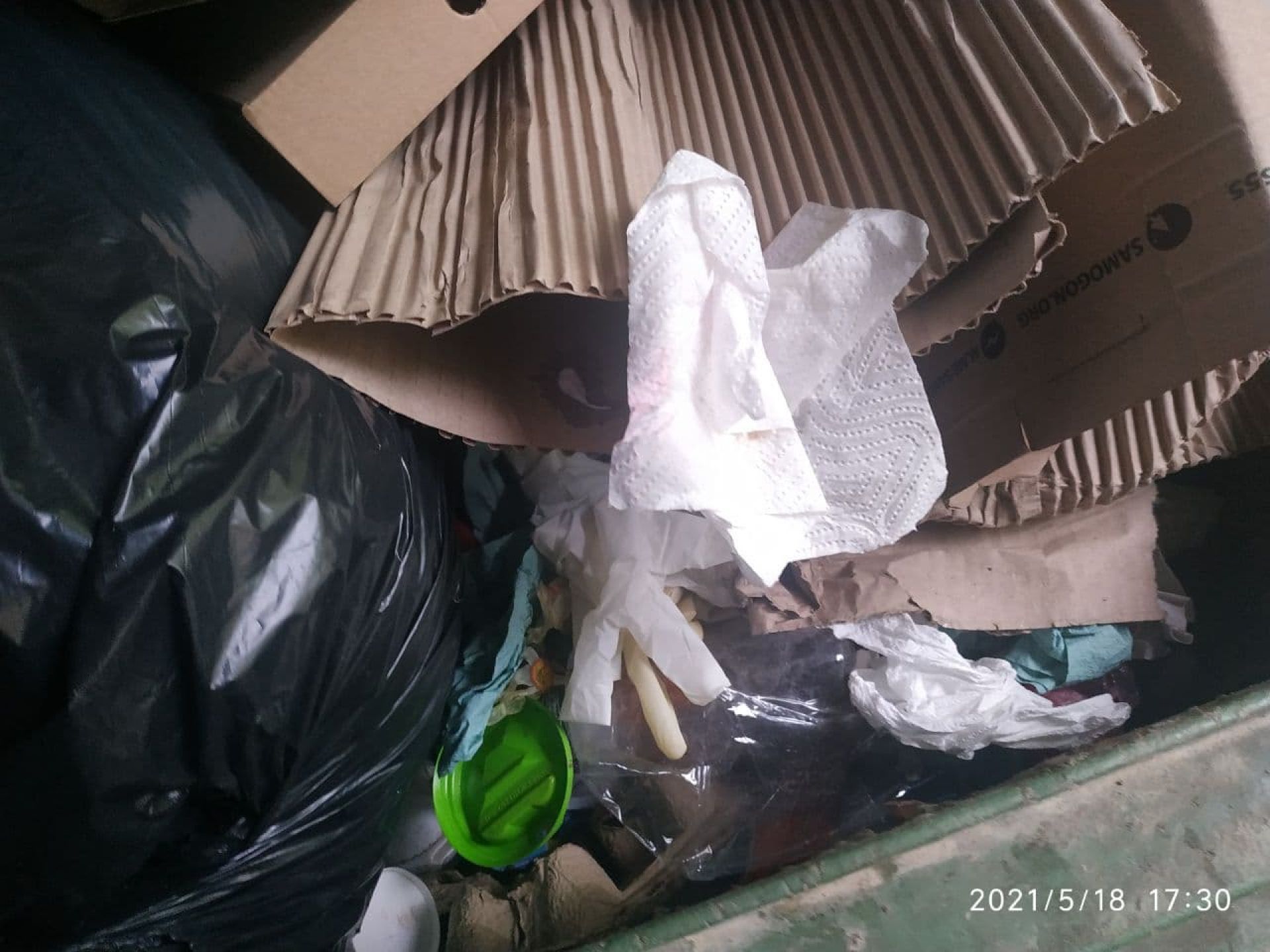 Не все було в пакетах і не все можна було віднести до побутових відходів. Так, в одному з контейнерів журналісти помітили використані рукавички, ковпачок від шприца та медичні маски.