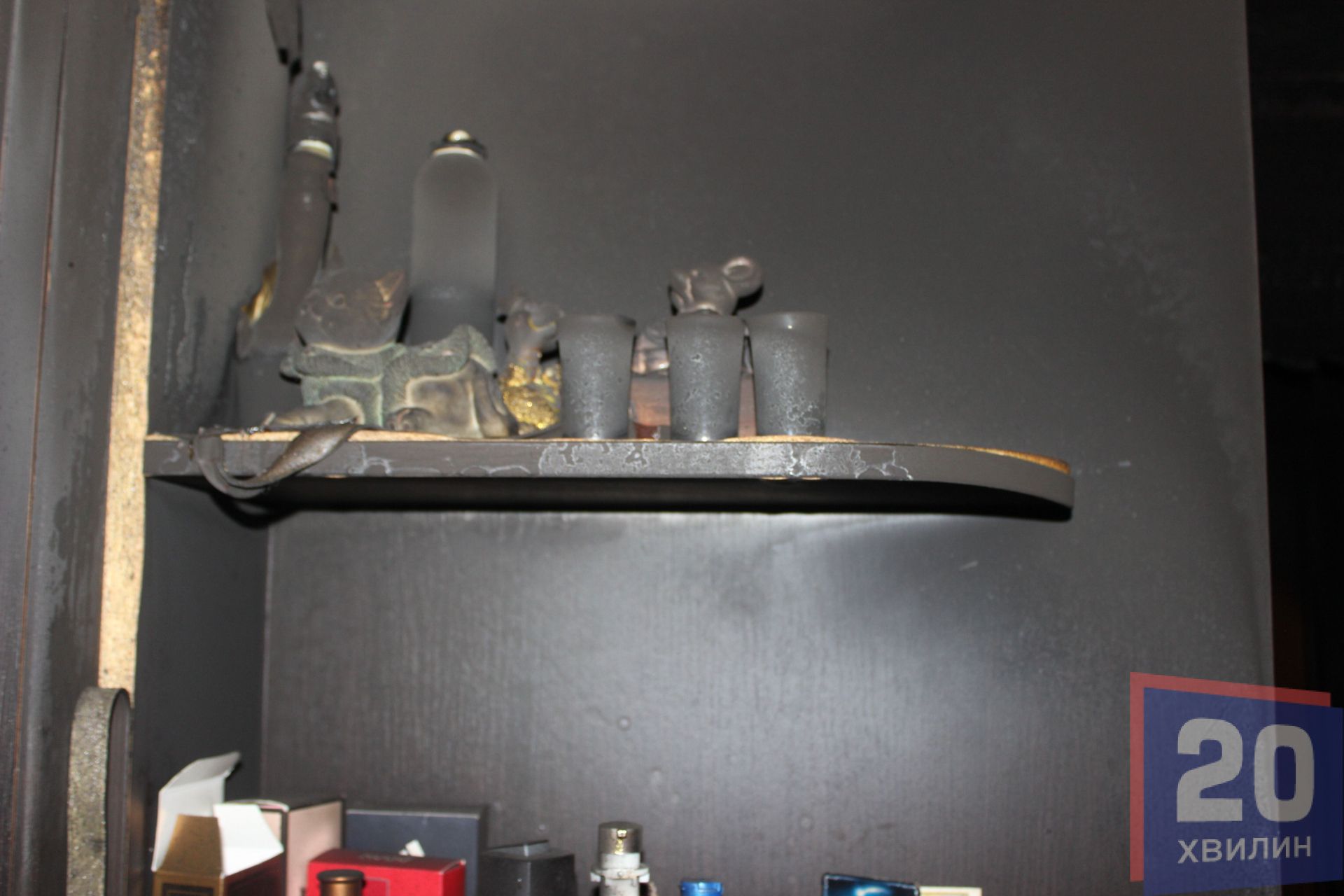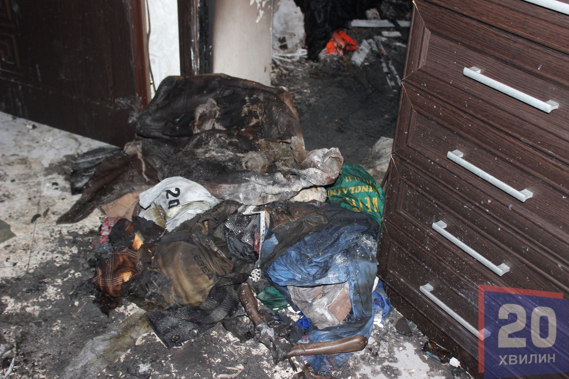У згорілій спальні зберігся лише комод, і то не весь. У ньому закіптявілі речі. Згоріло ліжко, дві тумбочки, шафа купе і телевізор.