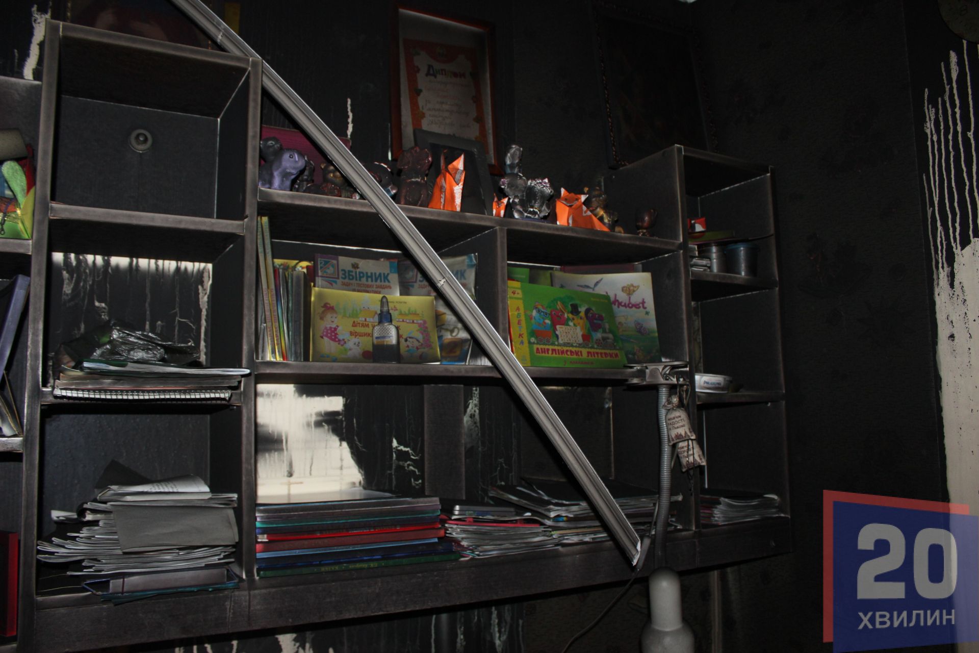 У дитячій кімнаті речі не згорені, проте закіптявілі. Найбільше мама шкодує за іконами, які подарували дівчатам хресні батьки на перше причастя. У чорній сажі фотографії, книги, іграшки дітей.