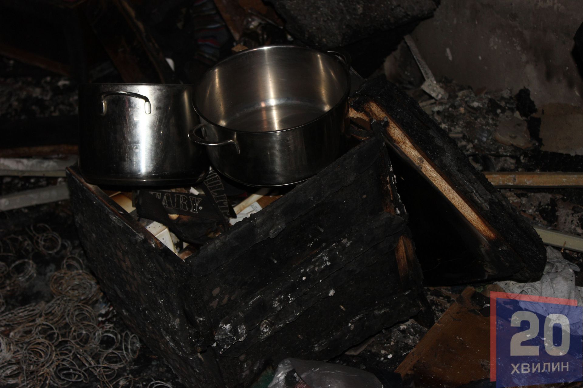- Дещо врятувалося, багато чого просто розплавилося, - продовжує жінка. - В нас згоріла повністю спальня і коридор, решта приміщень закопчені. Багато чого затопилось, коли гасили пожежу. Одяг якийсь є, але не знаю чи він придатний для використання. Мені зараз не до того. Єдине, що я сьогодні зайшла, щоб забрати хоч якісь дитячі речі з їхньої кімнати, може, врятуємо. Хоч літні, але хоч щось.