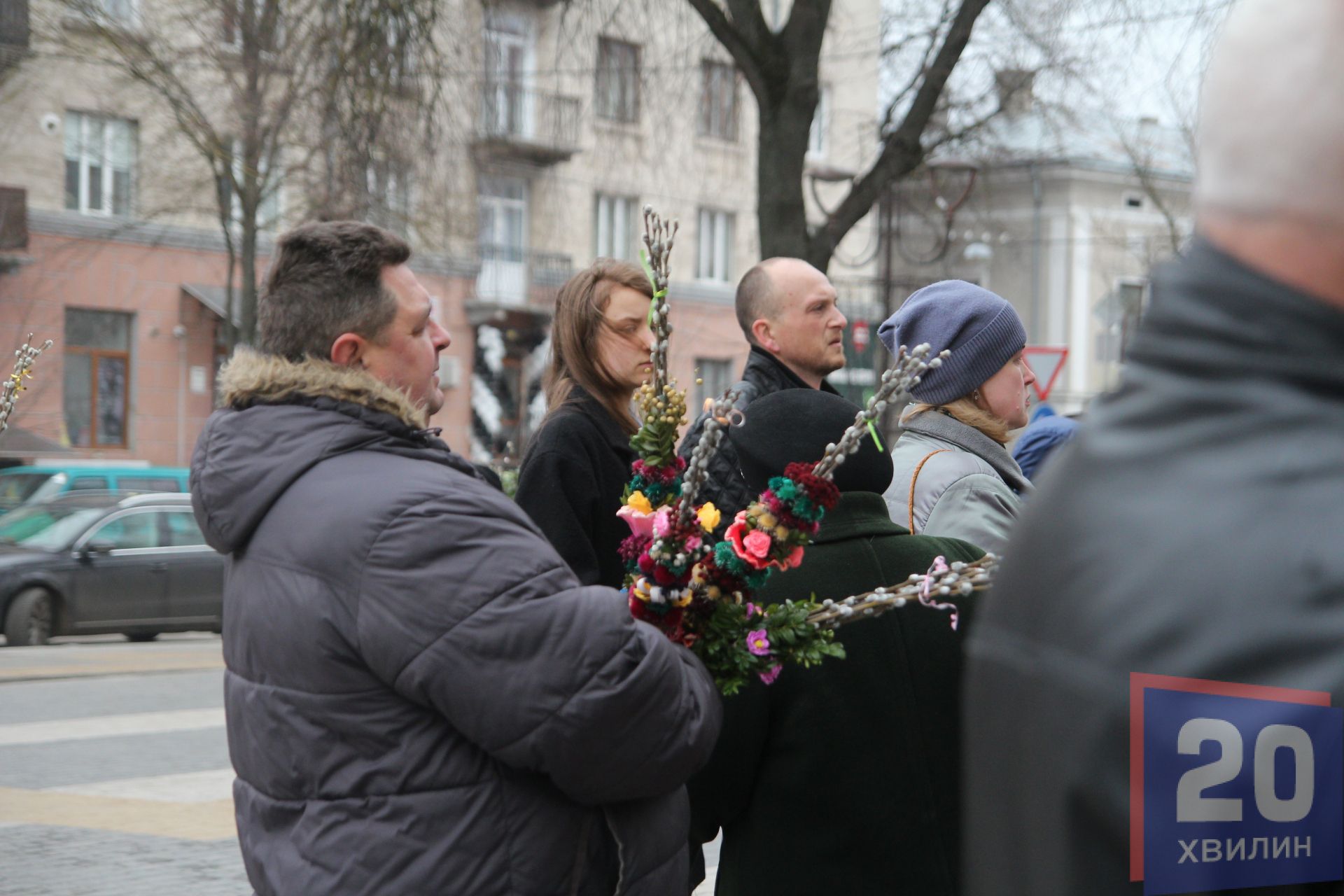 Навколо церкви Різдва Христового дуже людно, тернополяни від малого до великого стоять зі святковою атрибутикою і вітають одне одного, жартома б’ючи освяченою вербою та промовляючи: «Не я б'ю - верба б'є, за тиждень - Великдень».