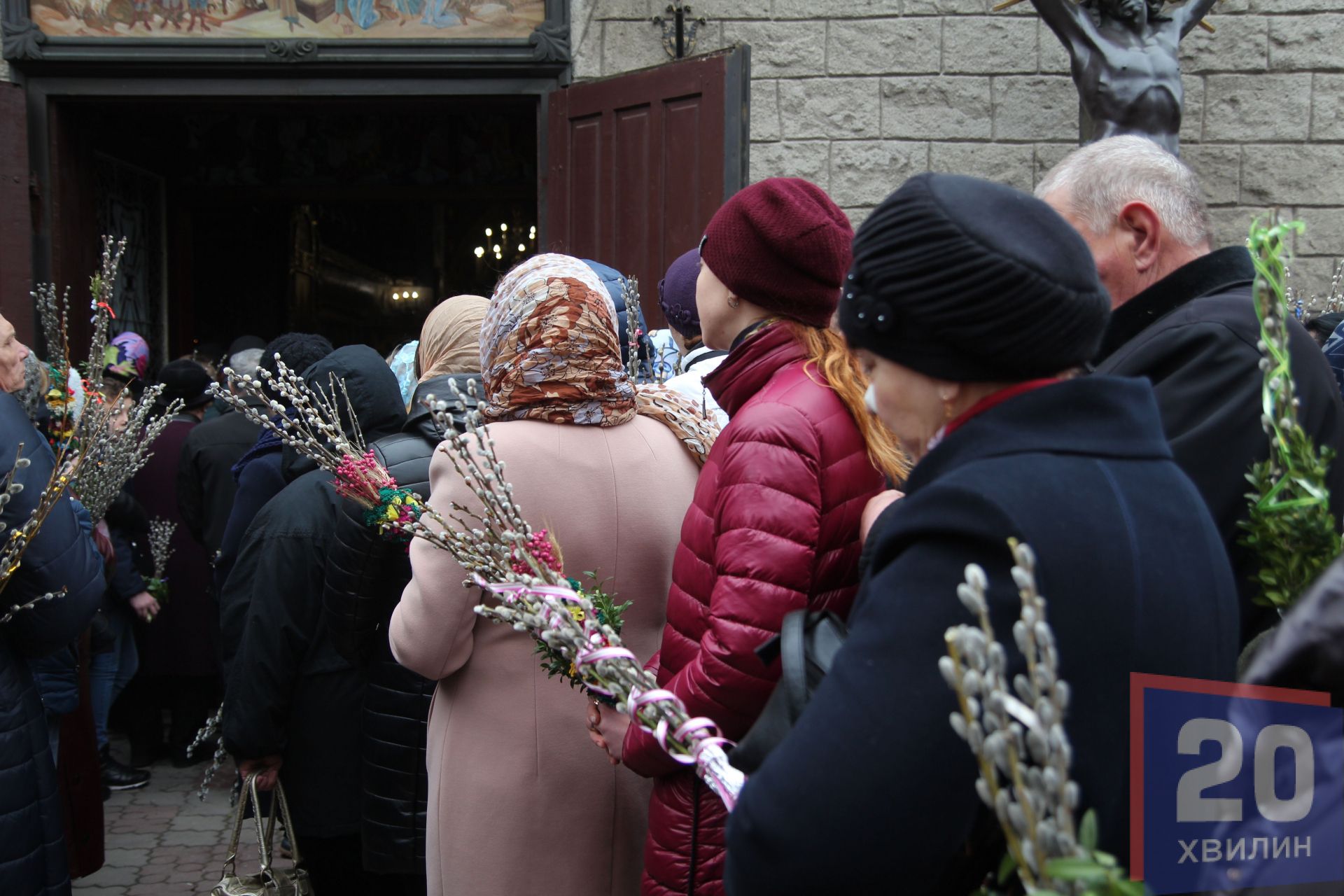 Перед входом до церкви стоять продавці з вербовими гілочками, оздобленими найрізноманітнішим чином.