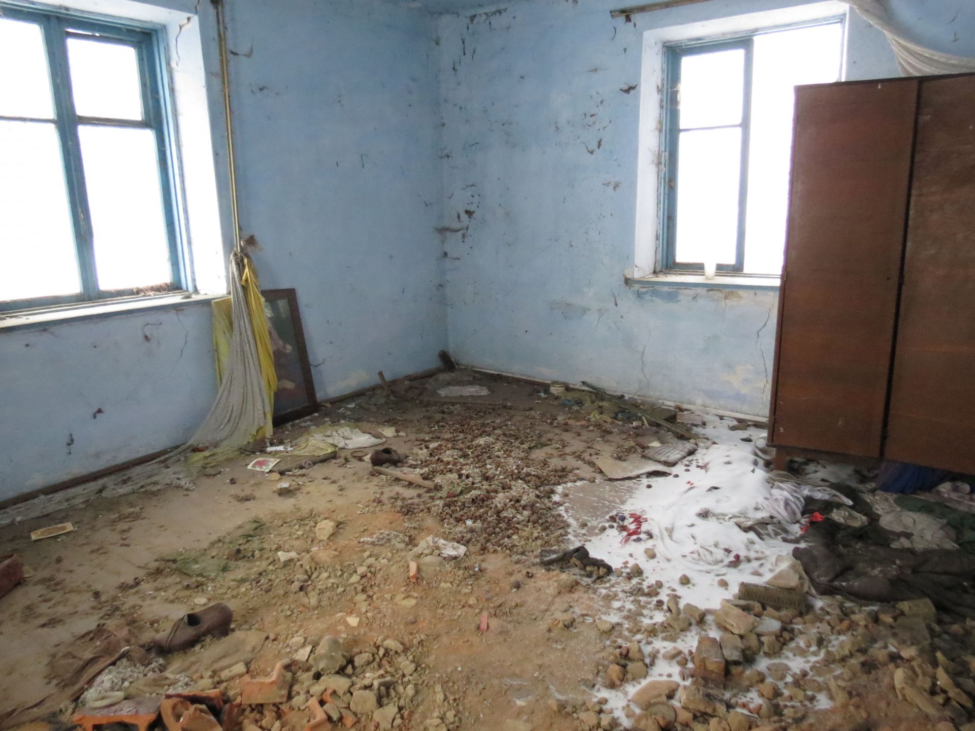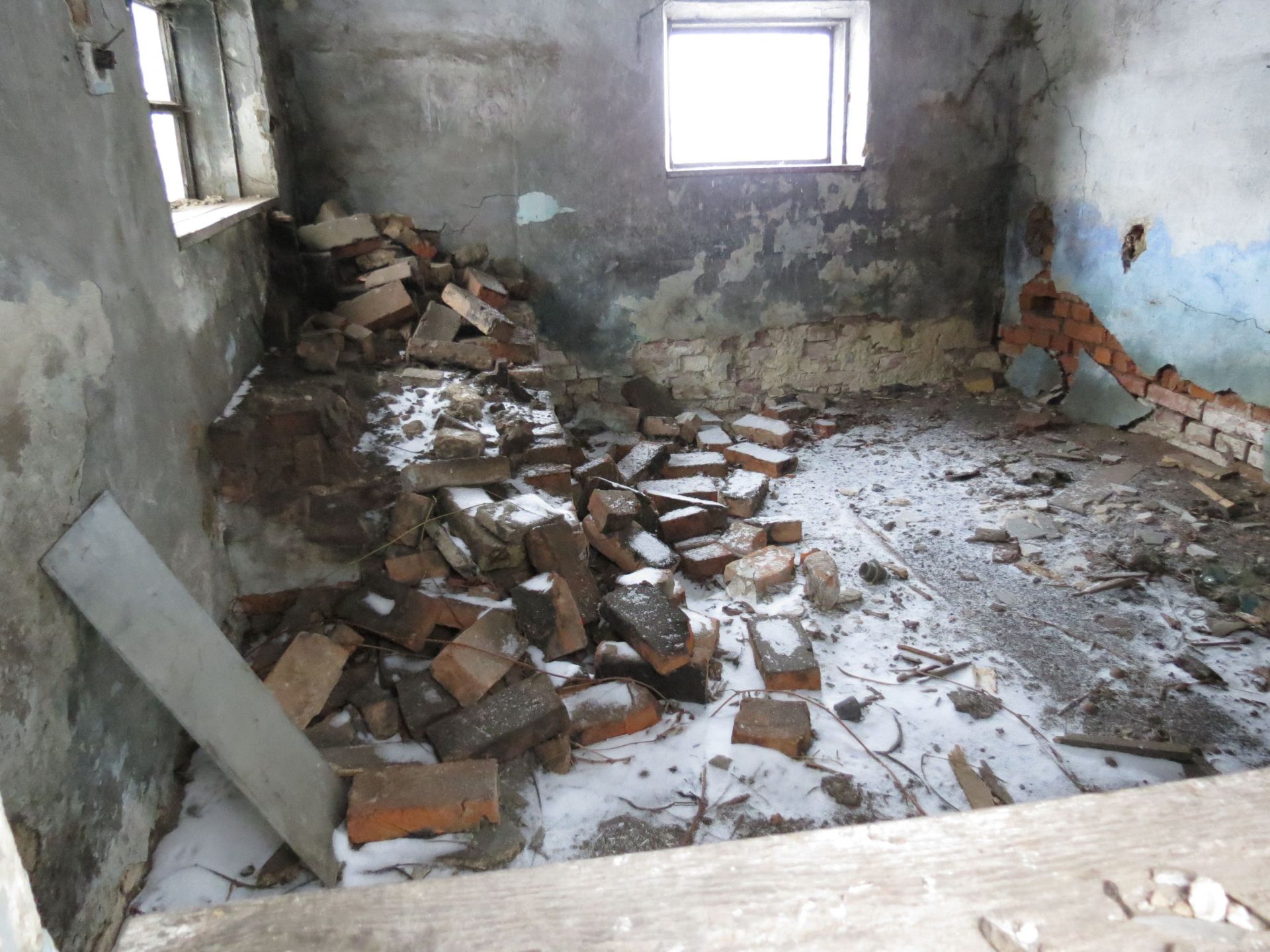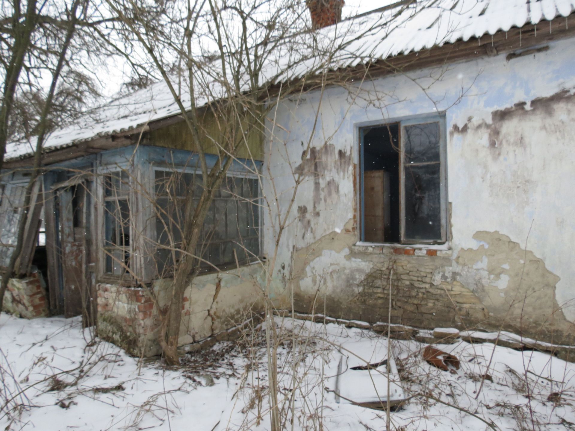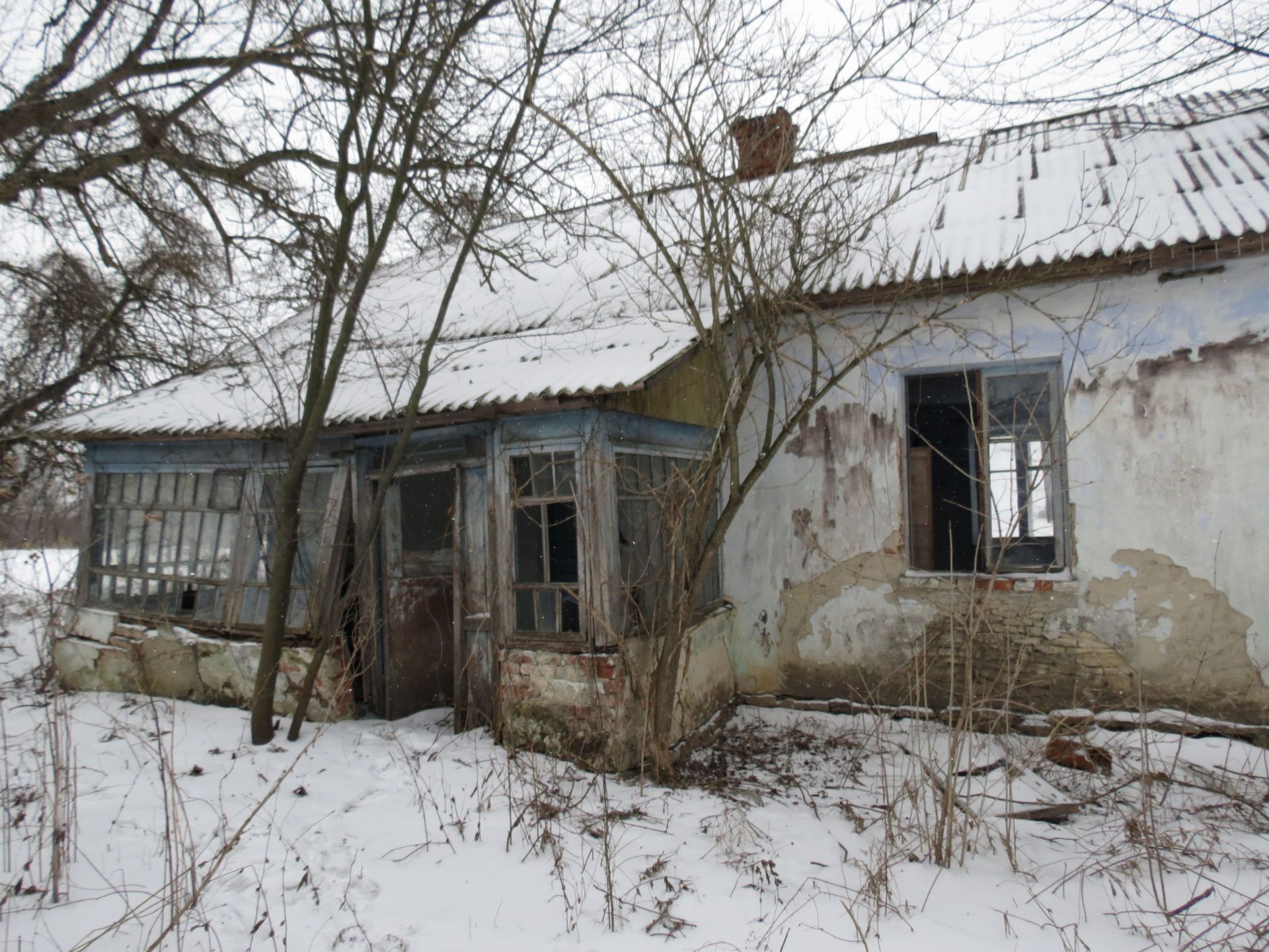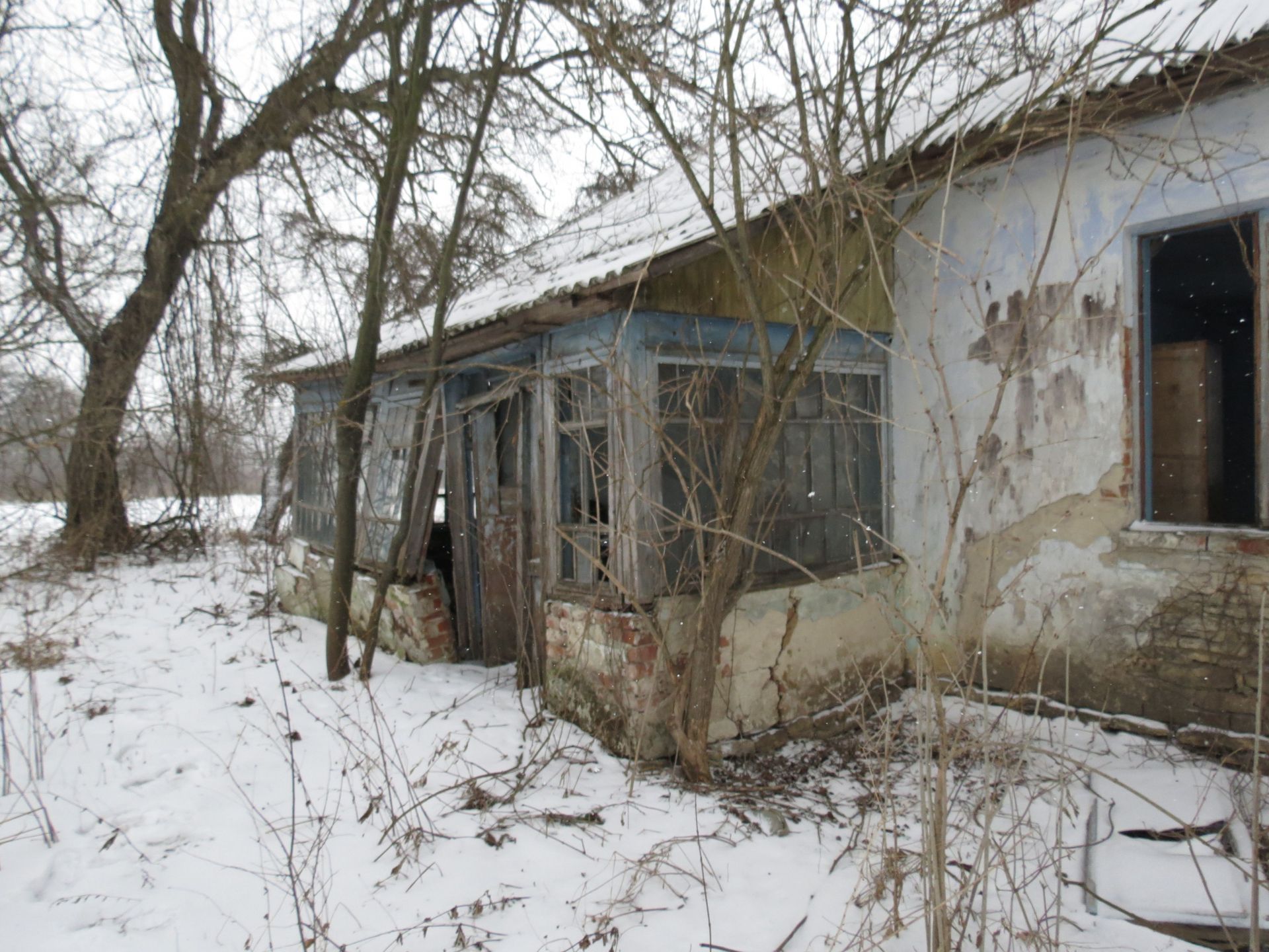 Інший будинок в півтора рази більший. Також з господарськими будівлями. Видно, що тут ще кілька років тому жили люди. Двері у помешкання хоч і зачинені на замок, але вікна разом з коробкою давно на землі. Навряд сильний вітер зумів їх кинути.