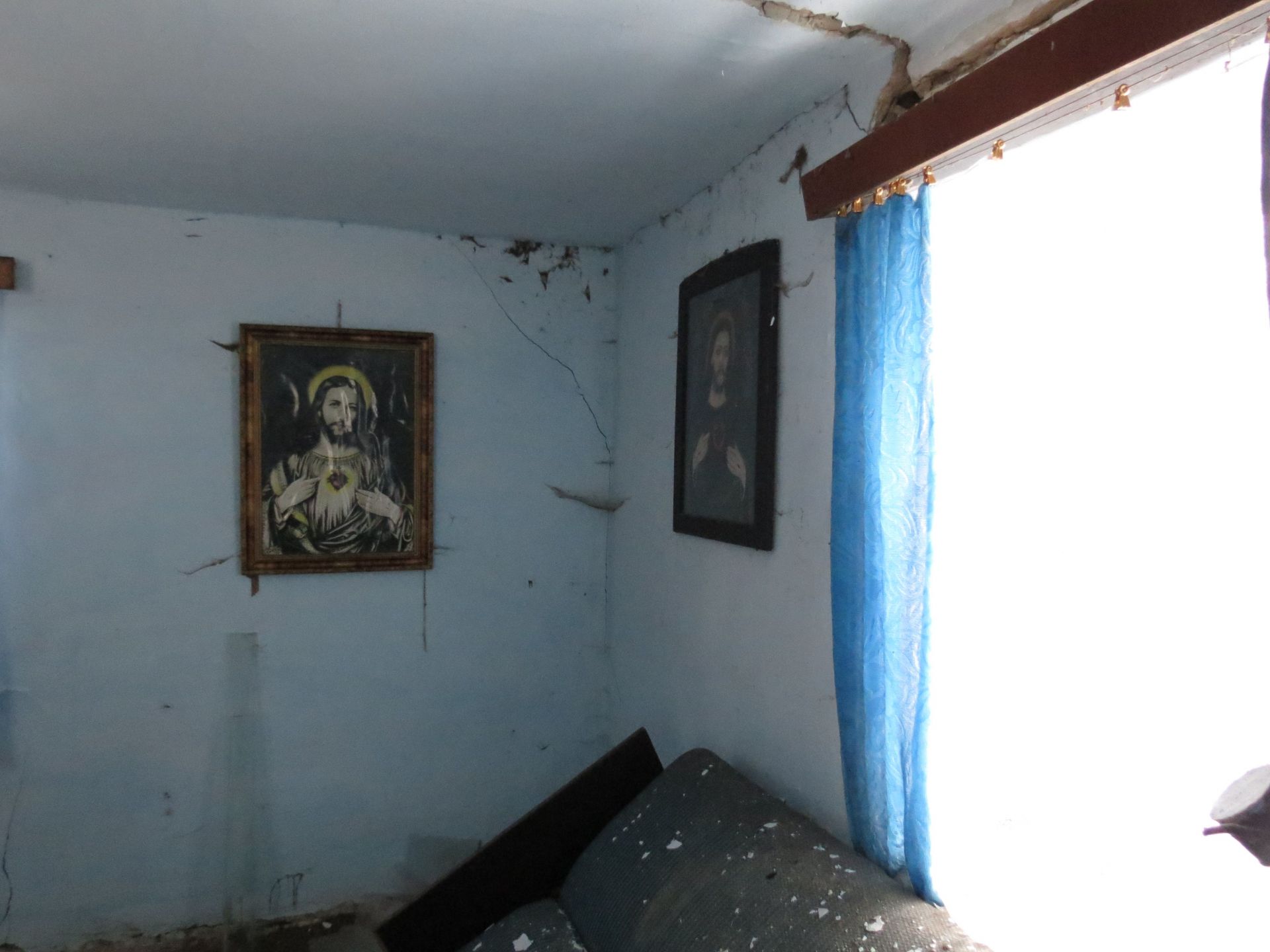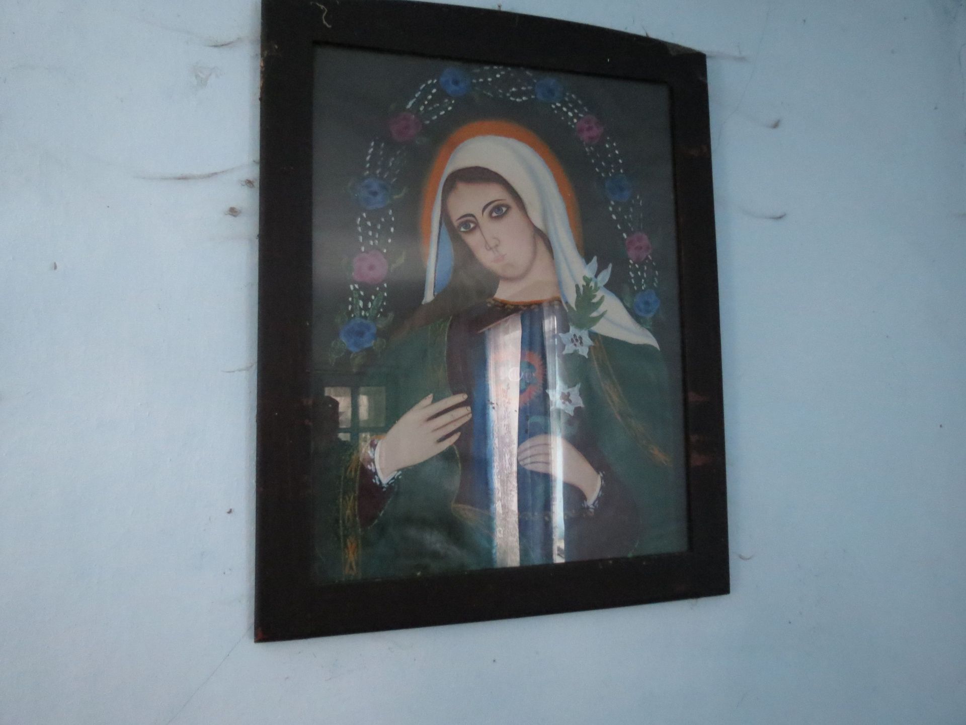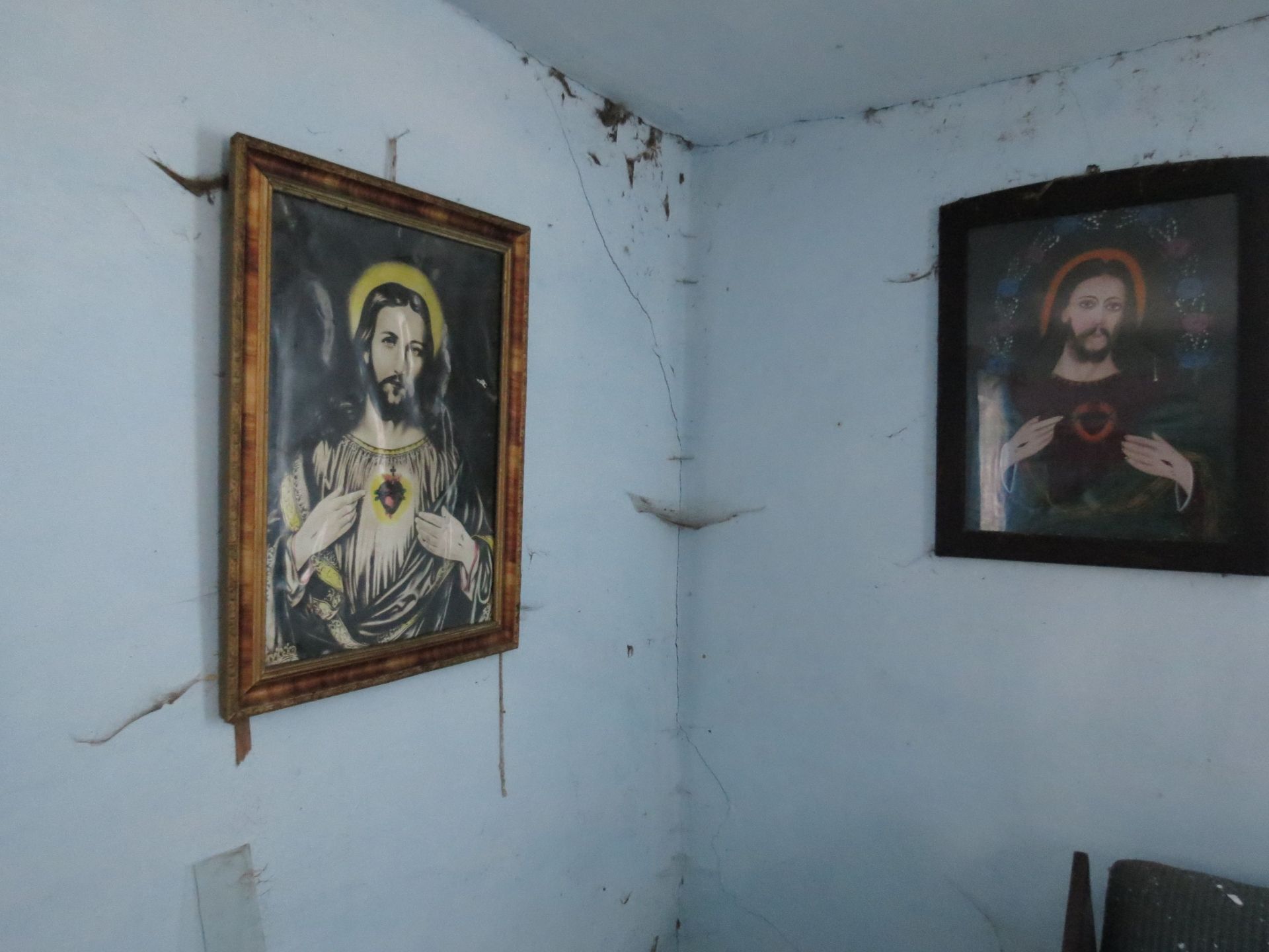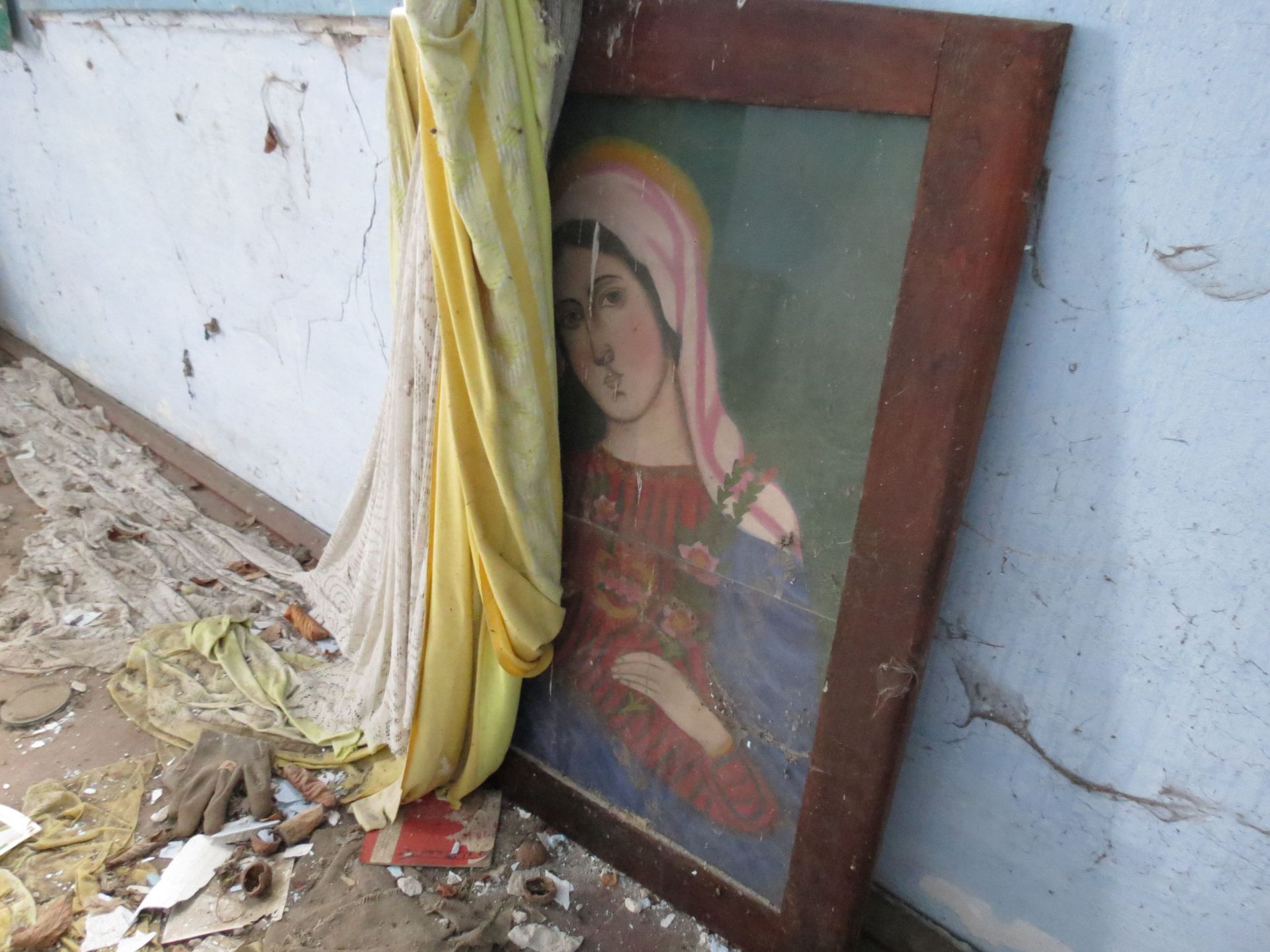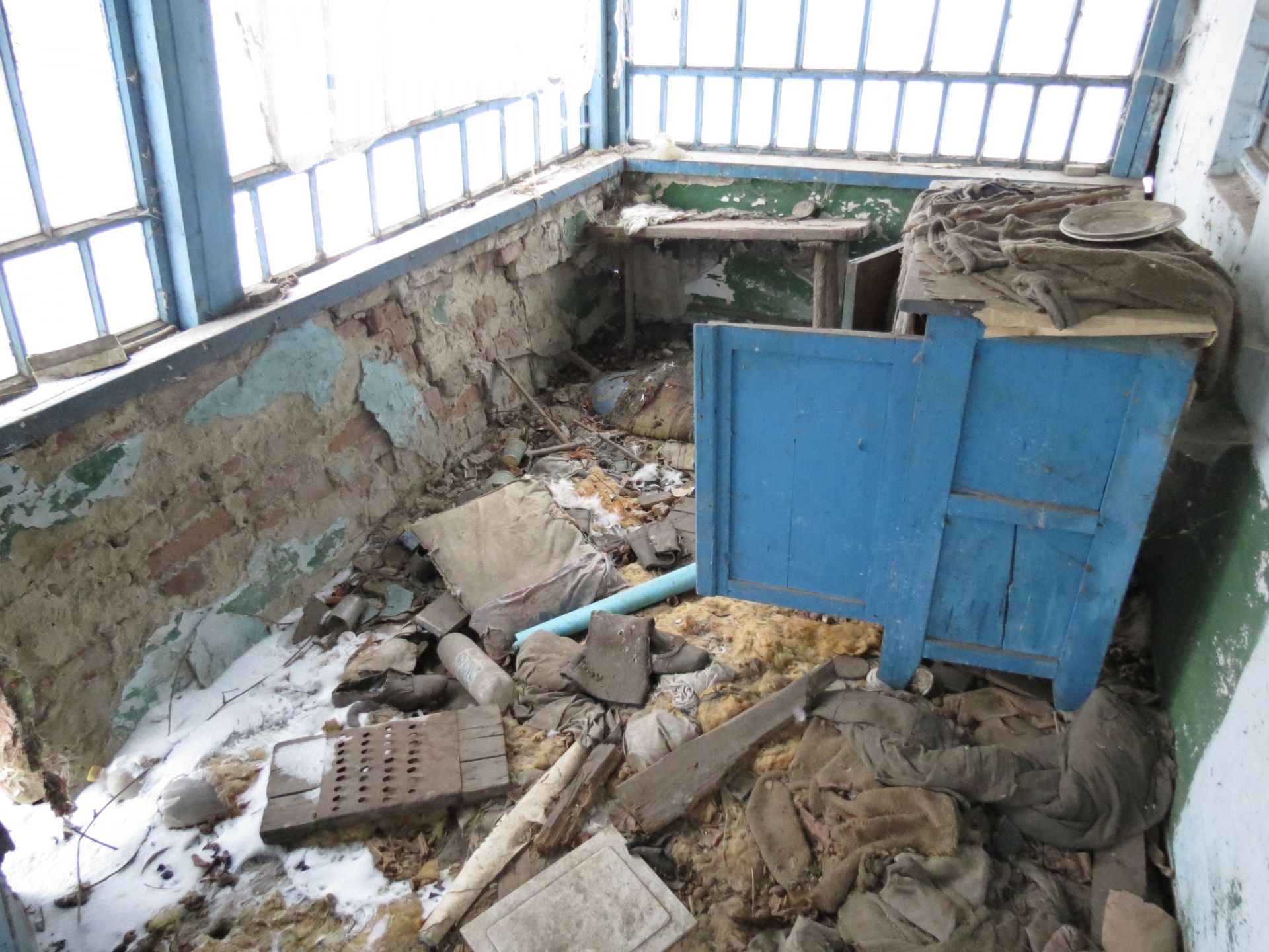 У третьому будинку лишилося навіть ліжко та стіл зі скатертиною, як спогад, що хтось тут жив. Стіни цієї оселі вже потроху тріскаються та осипаються. У великій кімнаті є три великих ікони з Ісусом та Божою Матір’ю, які дивляться на всіх, хто заходить в помешкання. А ще тут ми також знайшли стару фотографію з двома дітками. Вона також лежала поміж сміття і бруду, але виявилася кольоровою.