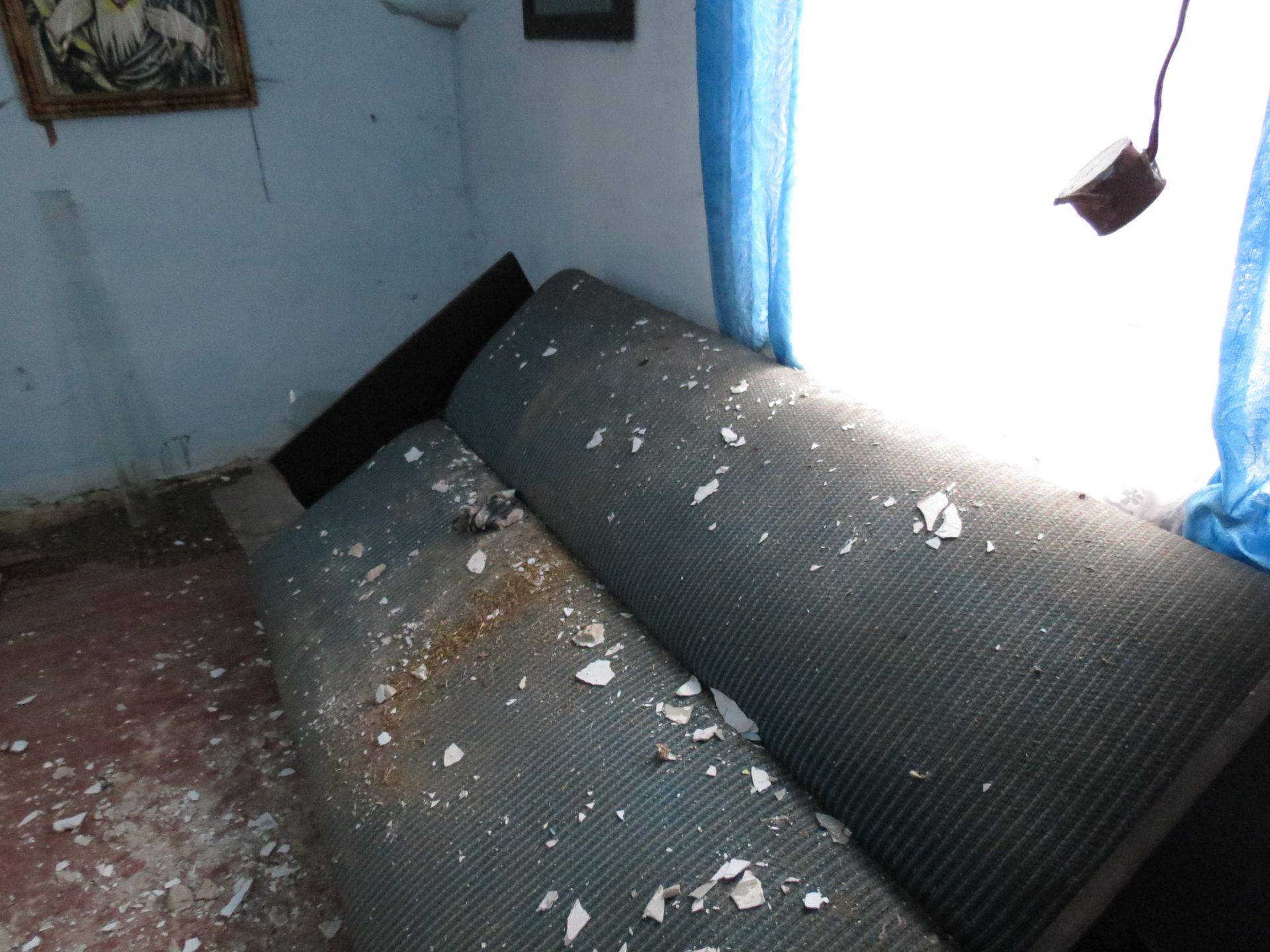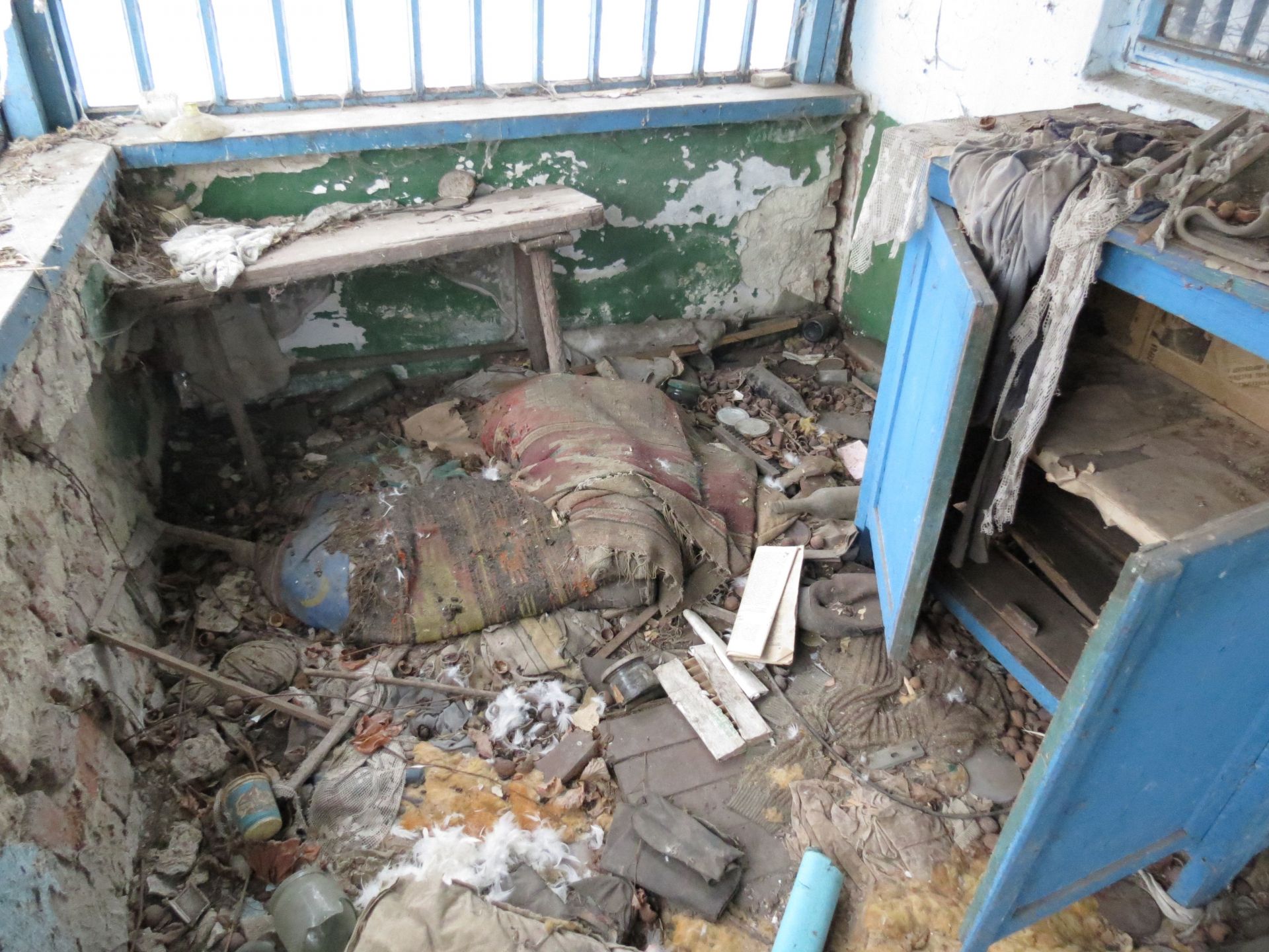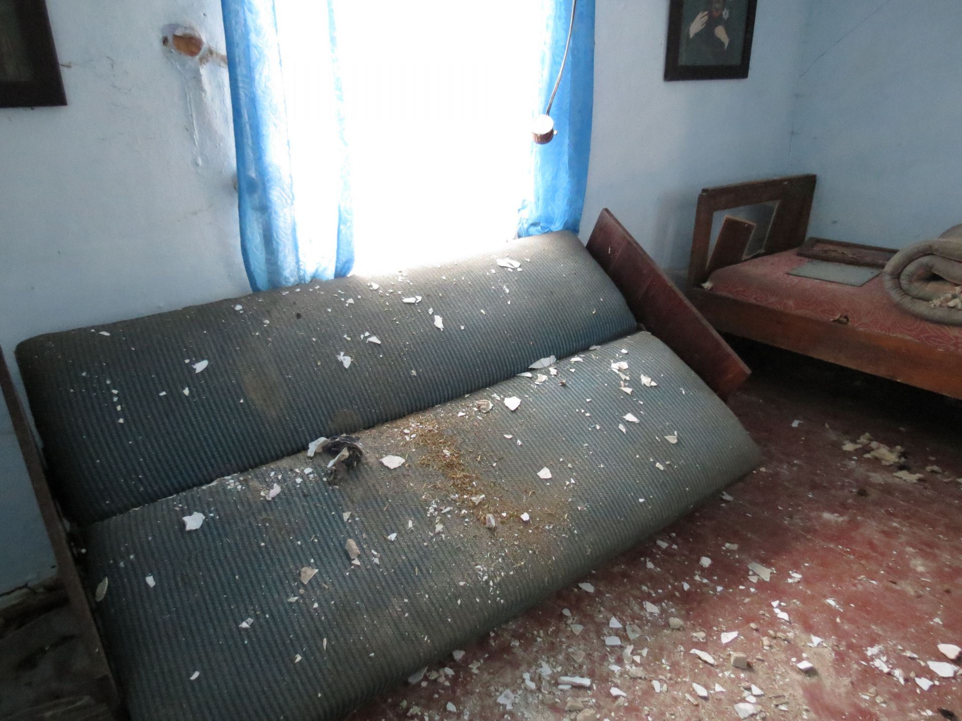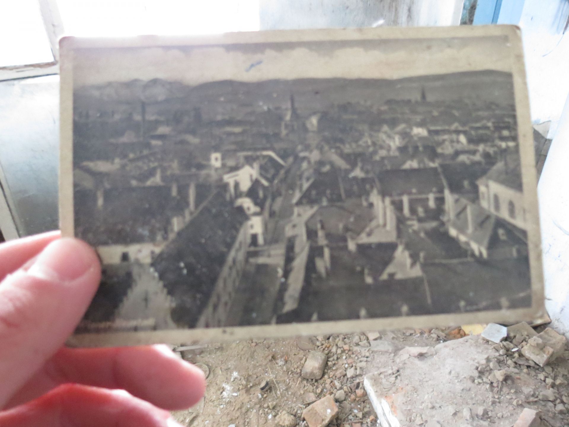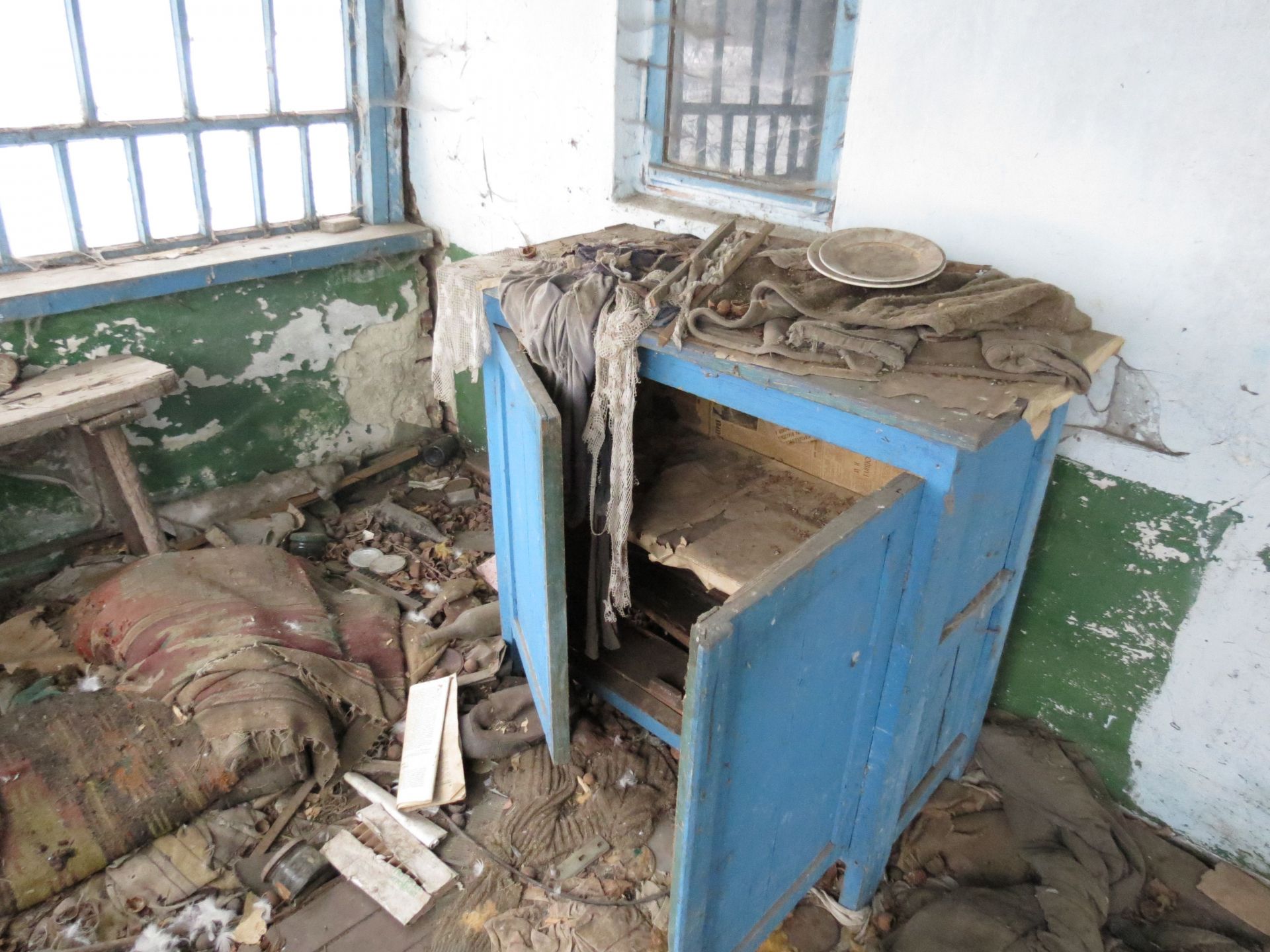 Всередині оселі лишилися старі меблі, коври на стінах і… фотографії. Порвані, розсипані на підлозі зі старими листівками та листками з книг, але це фотографії!