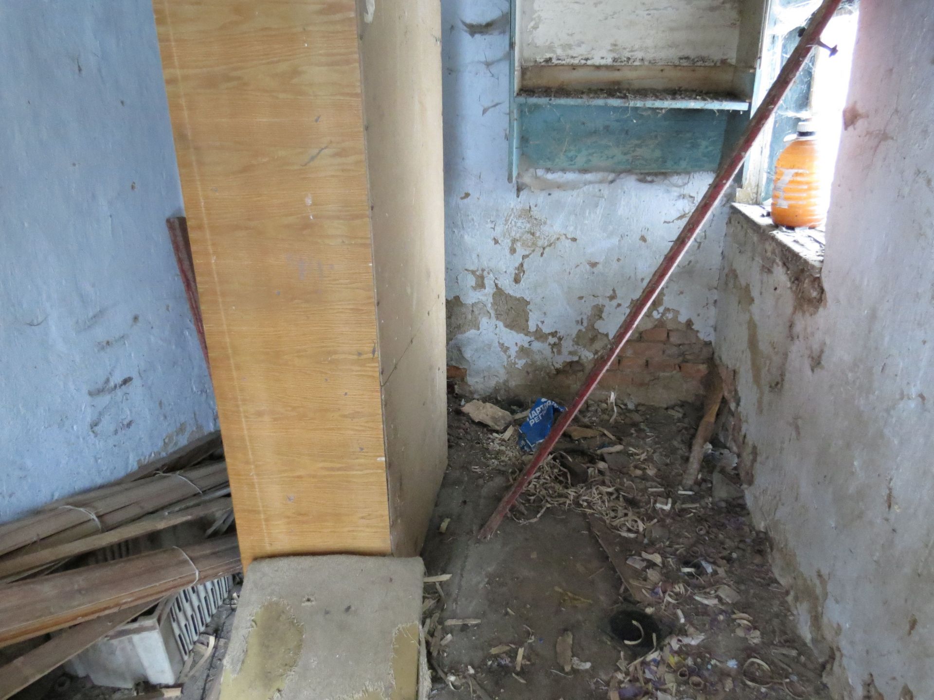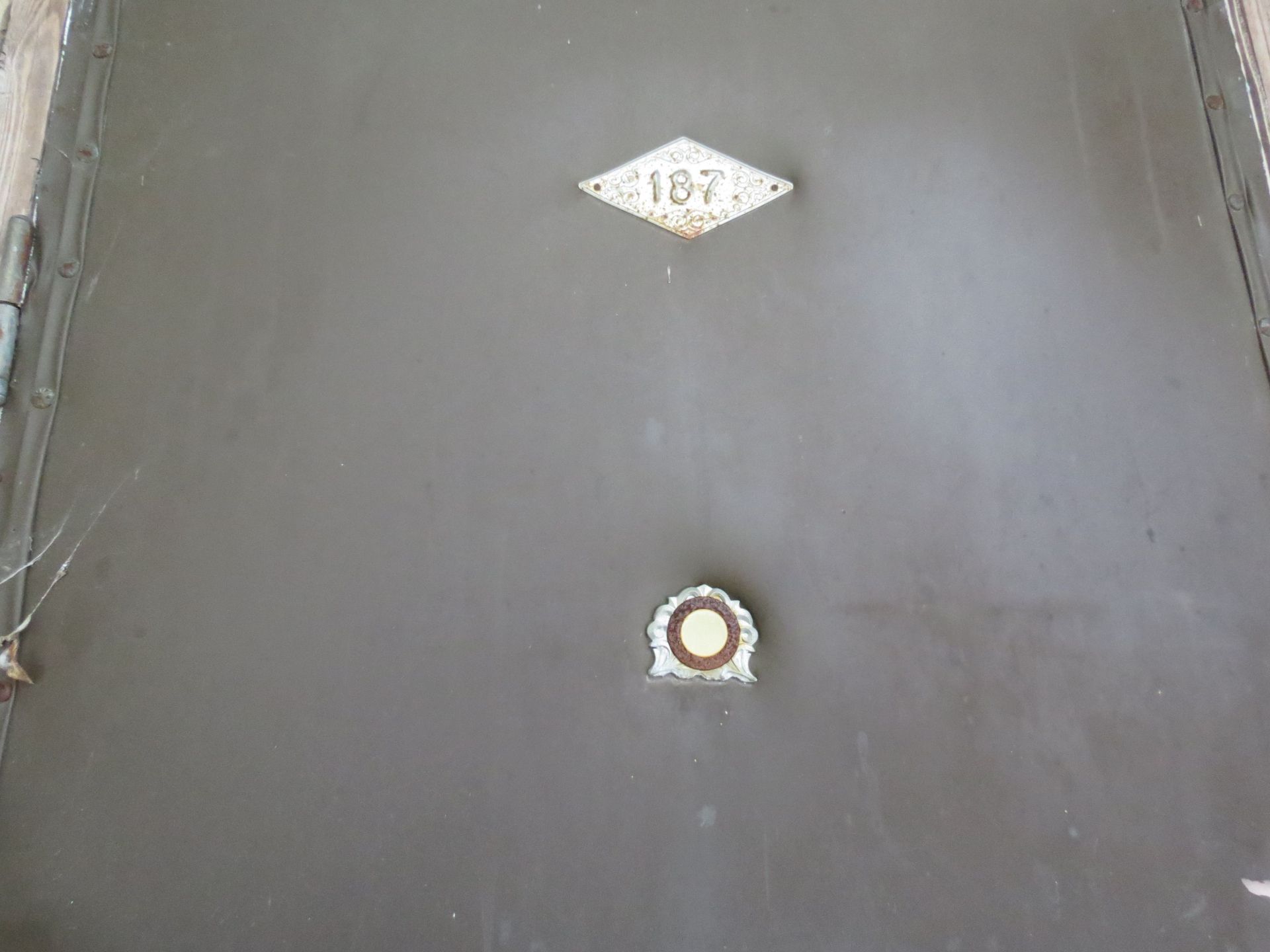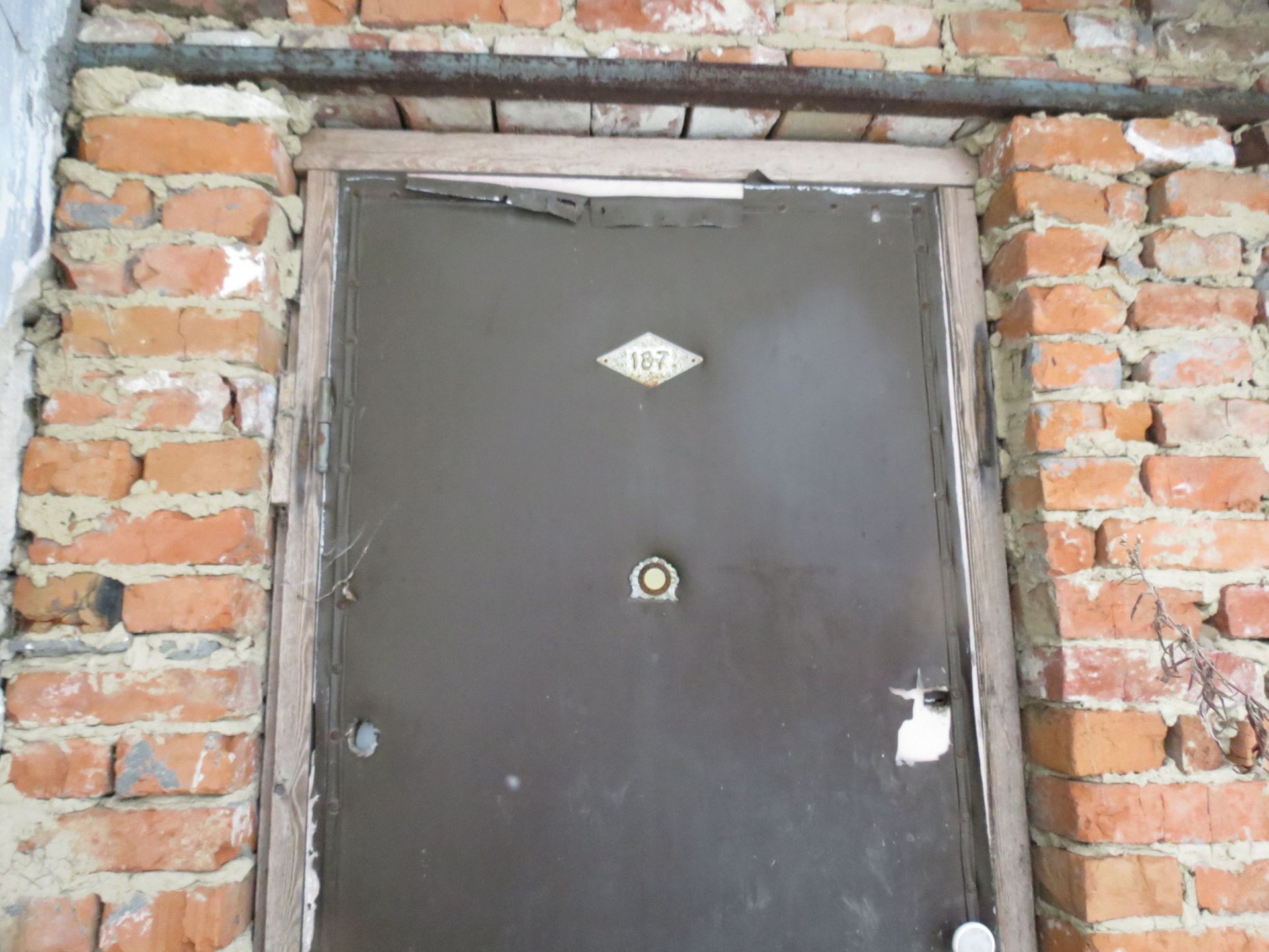Будинки досить великі, з хлівами та льохами, щоправда, давно без плоту. Заходимо на подвір’я одного з них. Бачимо старий цегляний будинок. Двері, очевидно, зняті з якоїсь квартири, з номером 187, зачинені. На невеликому подвір’ї є ще маленький льох та літня кухня, у якій лишився тільки старенький матрац, напіврозвалена грубка та шафка.