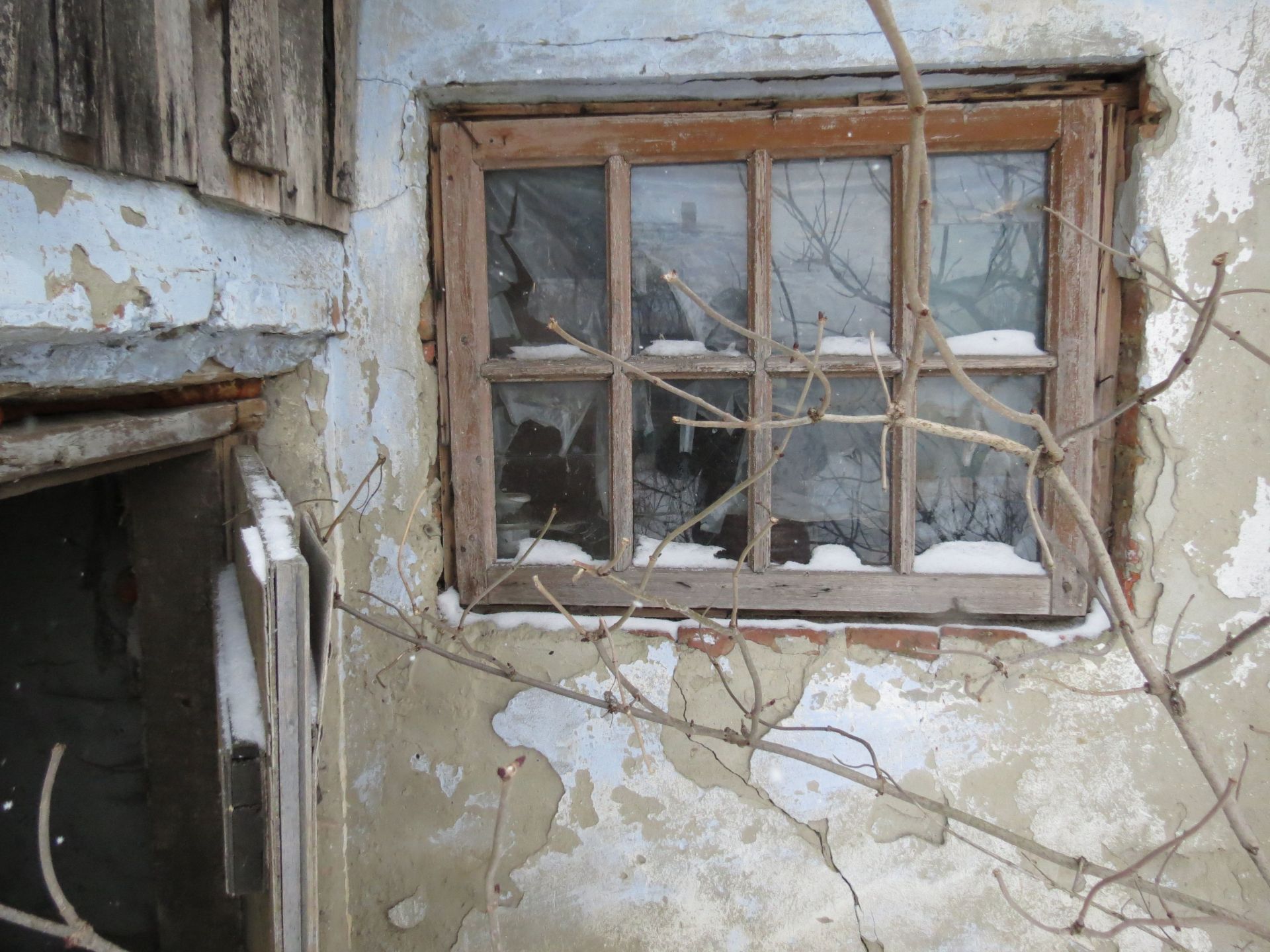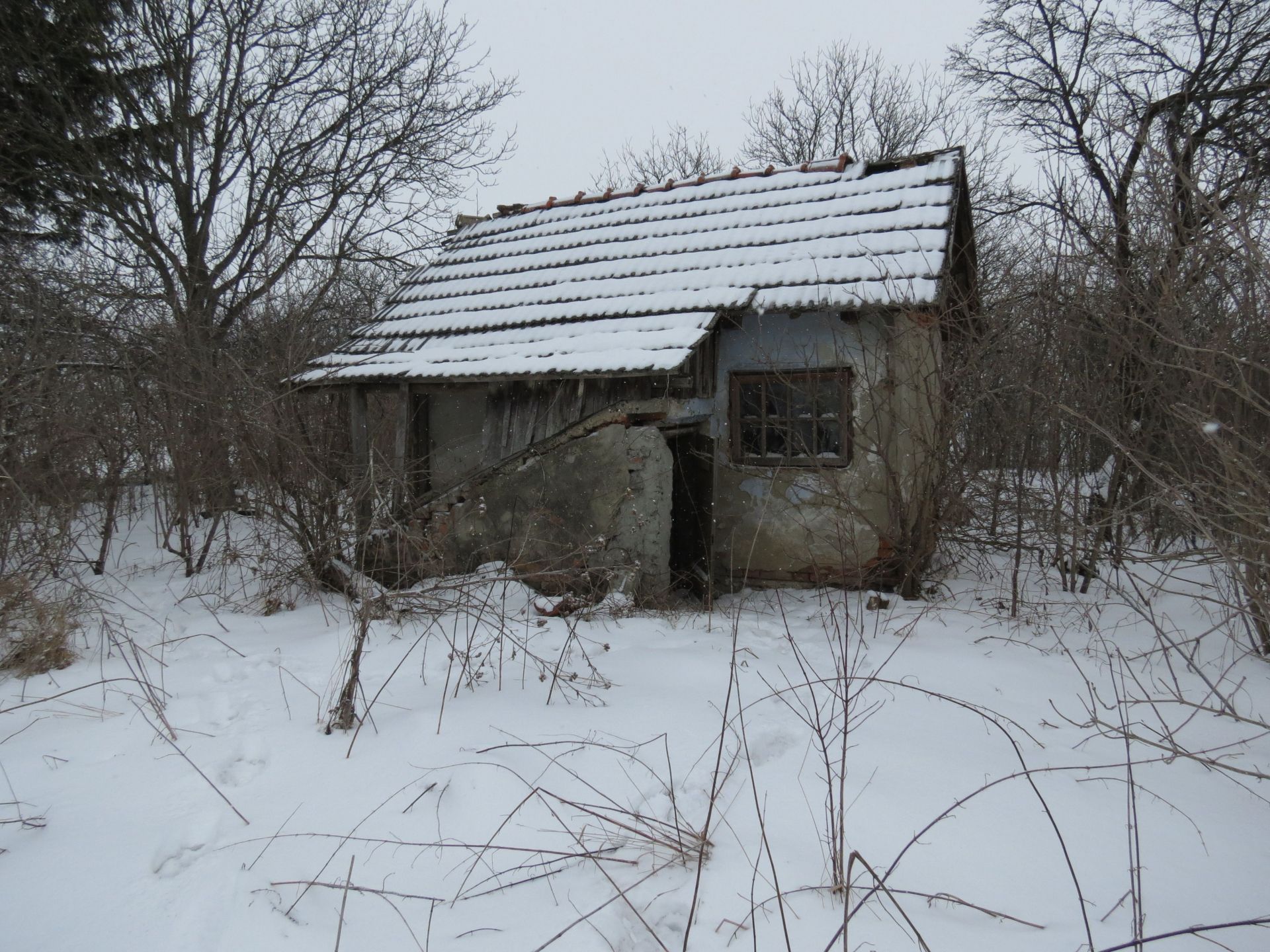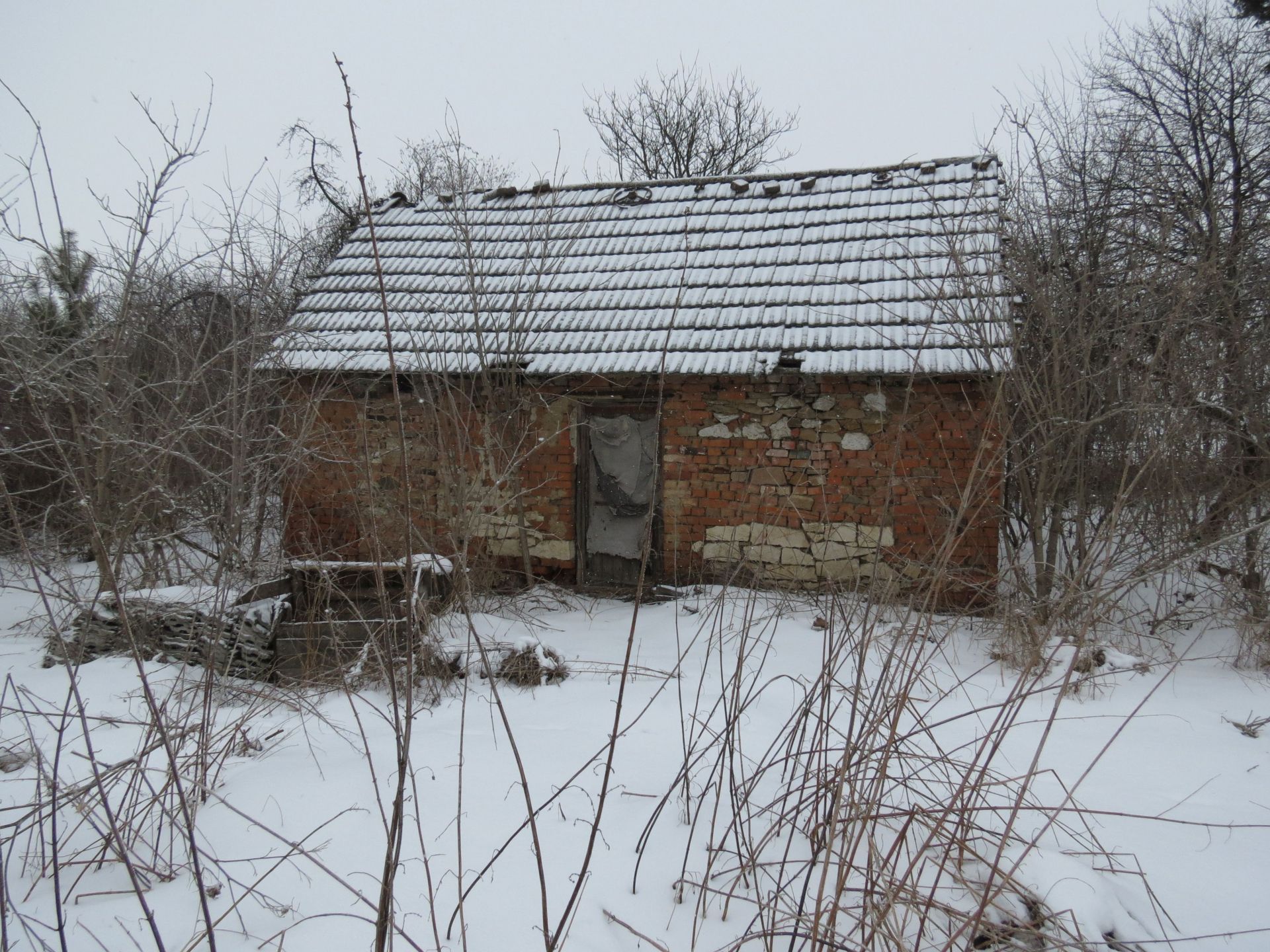 Вирішуємо спочатку навідатися до жінки. Якраз в ту сторону, де дороги немає. Зо півтора кілометри ми йшли напряму по переметених слідах, попри розвалені чи закриті будинки. Але там, де сліди закінчилися, закінчилася і наша надія поспілкуватися ж жінкою. Ворота до подвір’я, де вона, ймовірно, і живе, були зачинені.
