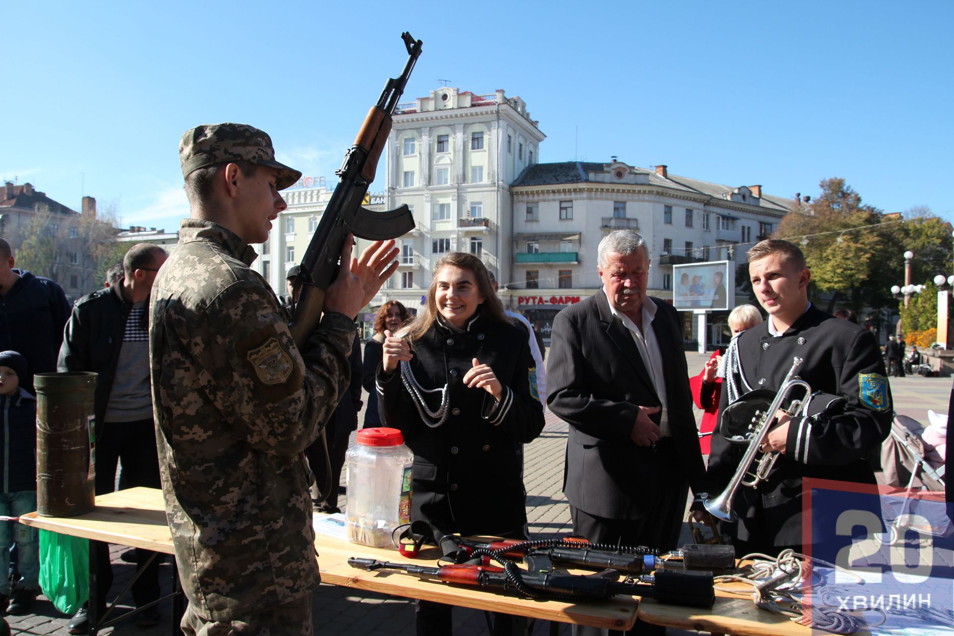 Голова обласного осередку ВГО «Закінчимо війну» Сергій Ліпянін розповідає, що презентація сучасної стрілецької зброї має за мету просвітити населення, показати, що, як і для чого.