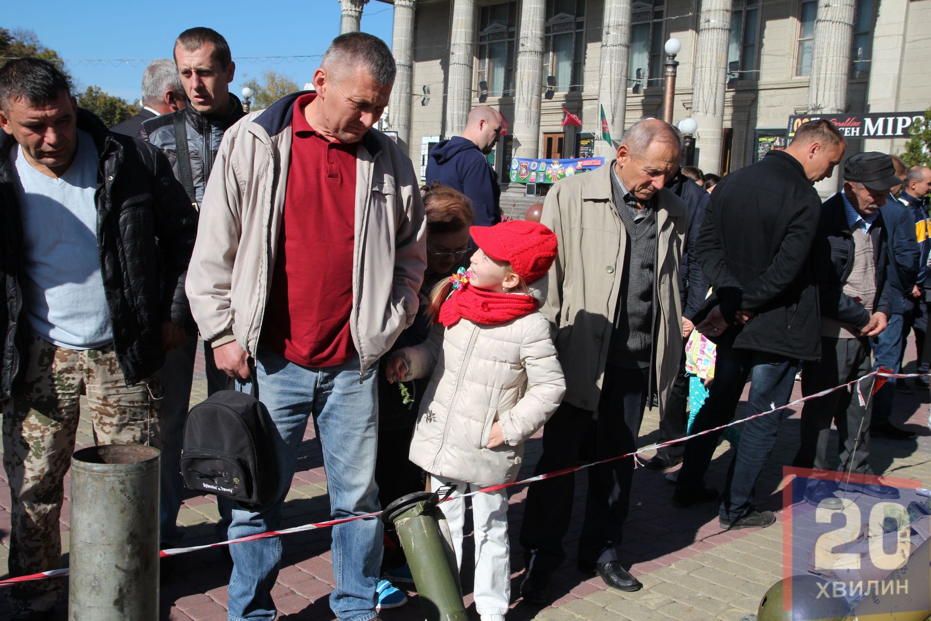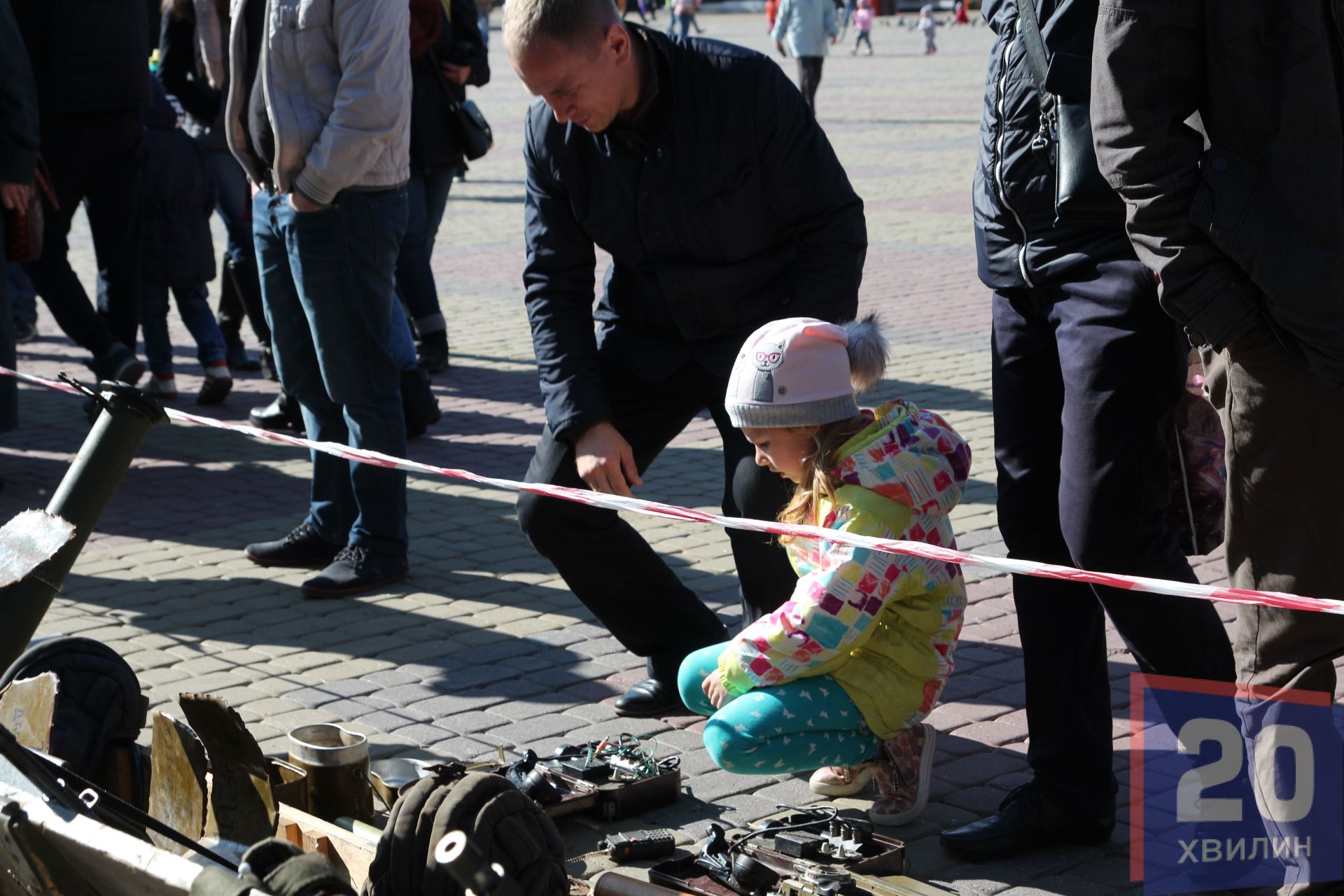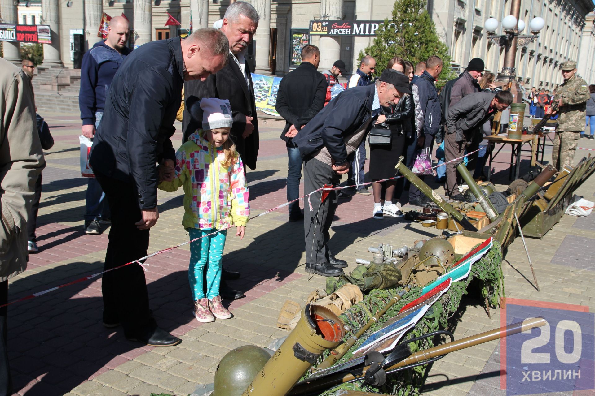 Пересувну виставку зброї з АТО представили для містян на Театральному майдані у неділю, 8 жовтня. Це зброя, яку використовують безпосередньо в АТО і яка пам'ятає війну.
