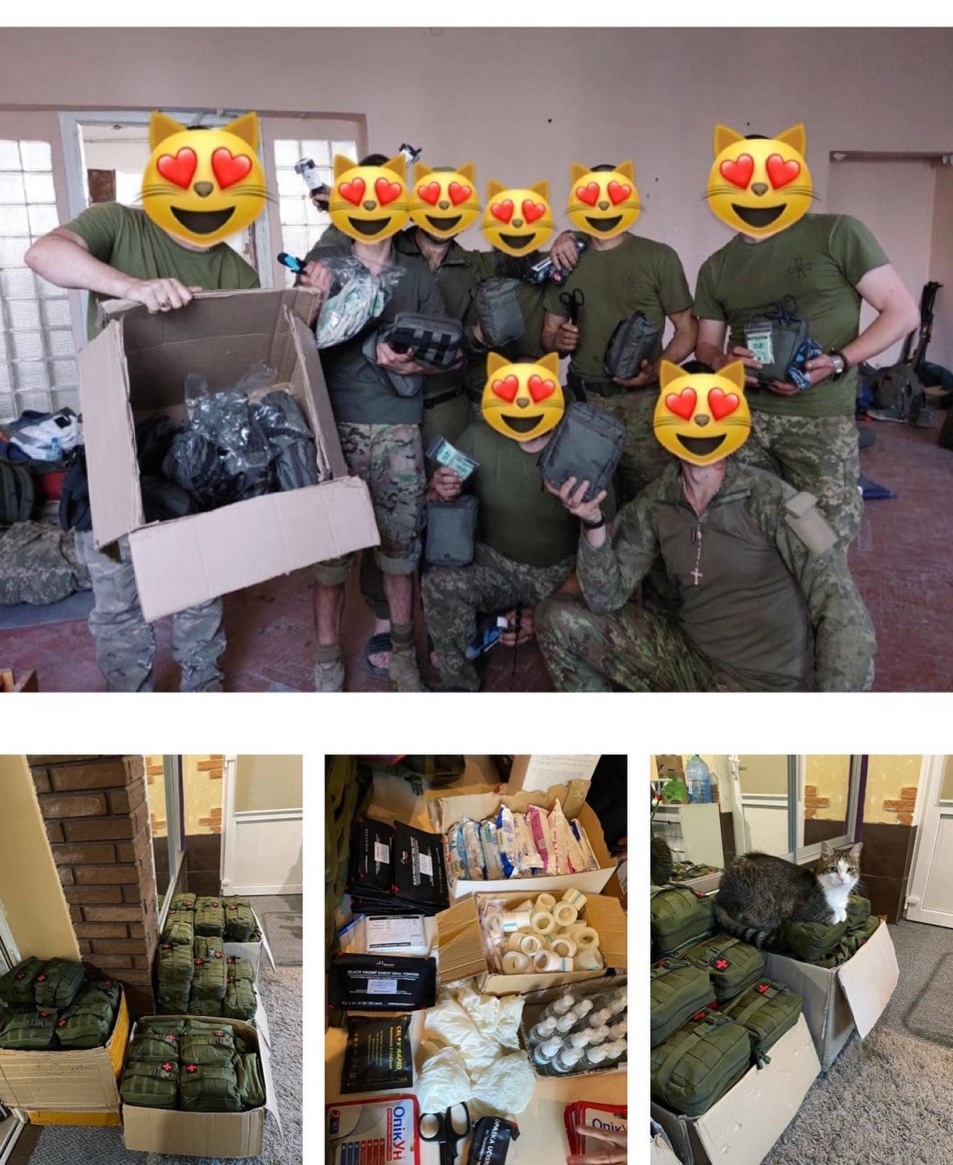«Мені здається, що ми працюємо вже у таких об’ємах, що охочі допомогти давно мають наші контакти. Хтось безпосередньо до мене чи Дениса звертається. Хтось випадково побачив сайт. Ми маємо перевірених колег-волонтерів, які їздять на бойові позиції. У нас сформувалось коло людей, яким ми довіряємо, з якими працюємо. Військові, які потребують аптечок, теж самі нас знаходять», – додає Тетяна Сендецька.