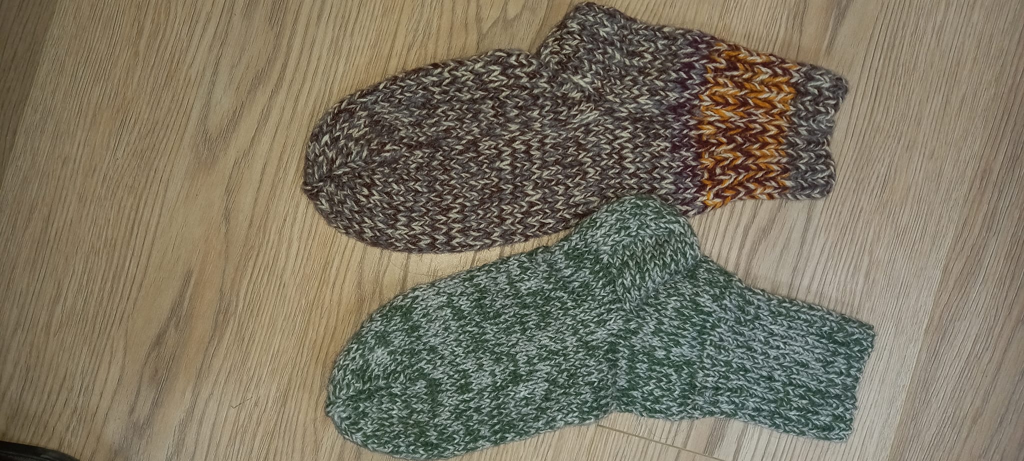 Здебільшого тут виготовляють для бійців теплі шкарпетки. В’яжуть їх чоловічих стандартних розмірів – 42 чи 43. Якщо мають товсті шерстяні нитки, то роблять з них спеціальні шкарпетки для поранених, котрі на реабілітації в лікарнях. В першу чергу це речі для хлопців, яким наклали гіпс, щоб їм було тепло в пальці.