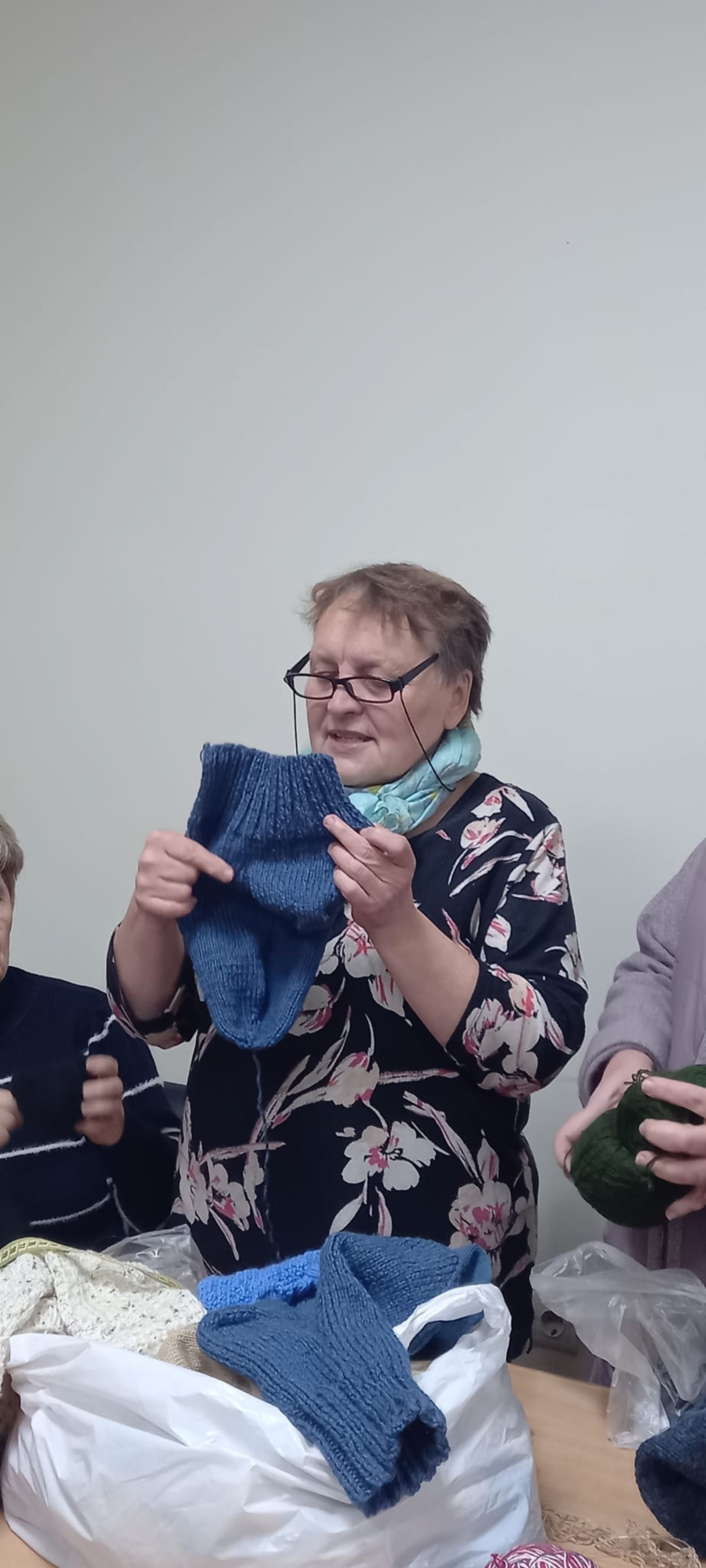 Пані Віра за професією фельдшерка, а працювала в ортопедії. Говорить, що відвідує міський територіальний центр соціального обслуговування впродовж тижня. Жінка волею випадку дізналась, що тут шукають охочих, які в’язатимуть теплі речі для військових, й одразу зголосилась. Вона в’яже з самого дитинства.