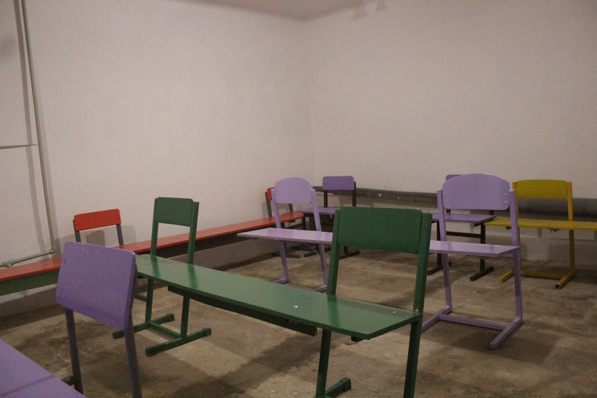 – Тут раніше все заставили речами, ще якась стара холодильна камера стояла. То ми навіть не розуміли, як це впоратись до кінця серпня. Але об’єднались з батьками і почали прибирати. Все зайве викинули, побілили стіни, відмили підлогу, встановили лавки кольорові. Навіть довелося залучати архітектора, який нам показав, де прибрати вхід, а де навпаки розширити. Щоб дітям було комфортно заходити. Генератори не купували, але є спеціальні ліхтарики, що забезпечують приміщення світлом без електроенергії, – каже пані Марія.