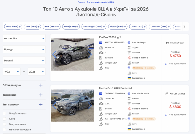 Дізнайтеся, як купити авто з Америки без посередників у 2026 році. Carfast Express відкриває прямий доступ до аукціонів США.