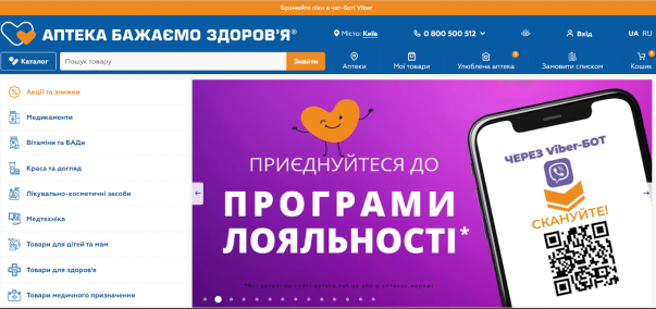 Крім того, сайт аптек має зручний інтерфейс, що дозволяє легко знаходити потрібні товари та оформлювати замовлення.