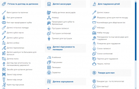 - Товари для дітей та мам: асортимент продукції для дітей включає дитяче харчування, засоби гігієни, а також різноманітні товари для мам, що сприяють підтримці здорового розвитку дітей та добробуту матерів.