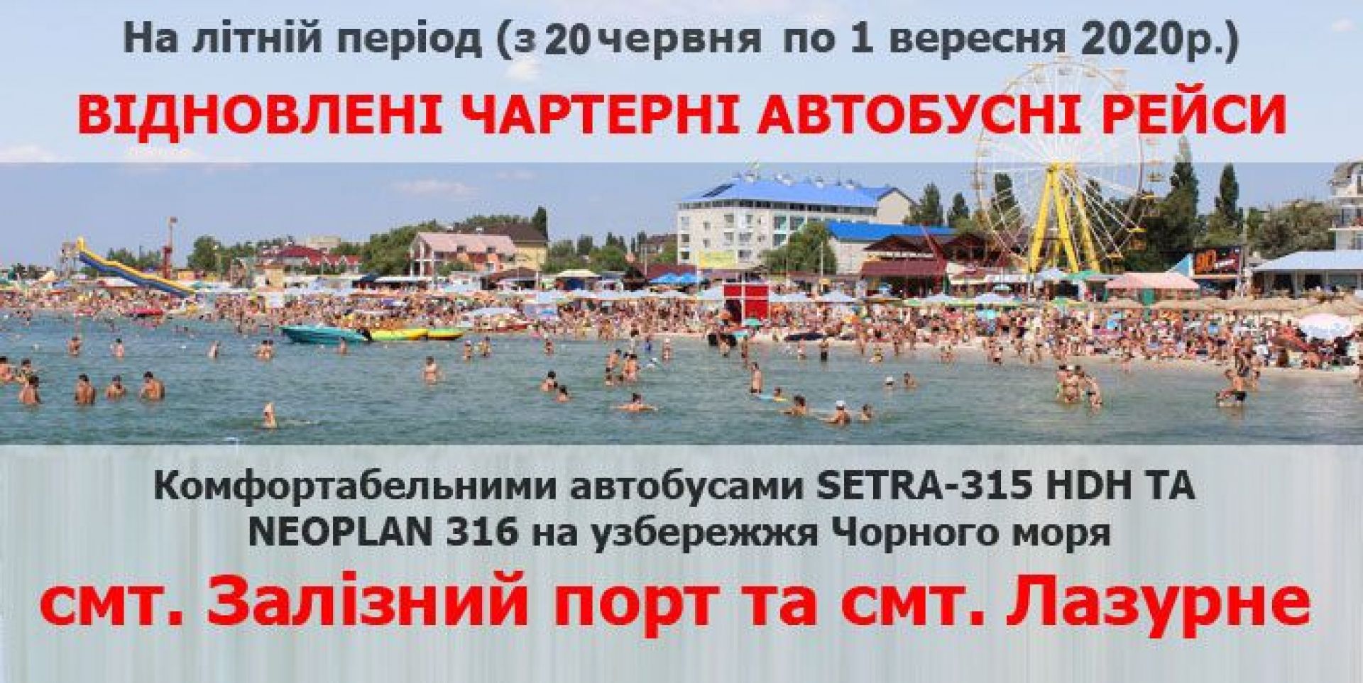 Комфортабельними автобусами Setra-315 HDH та Neoplan 316 на узбережжя Чорного моря