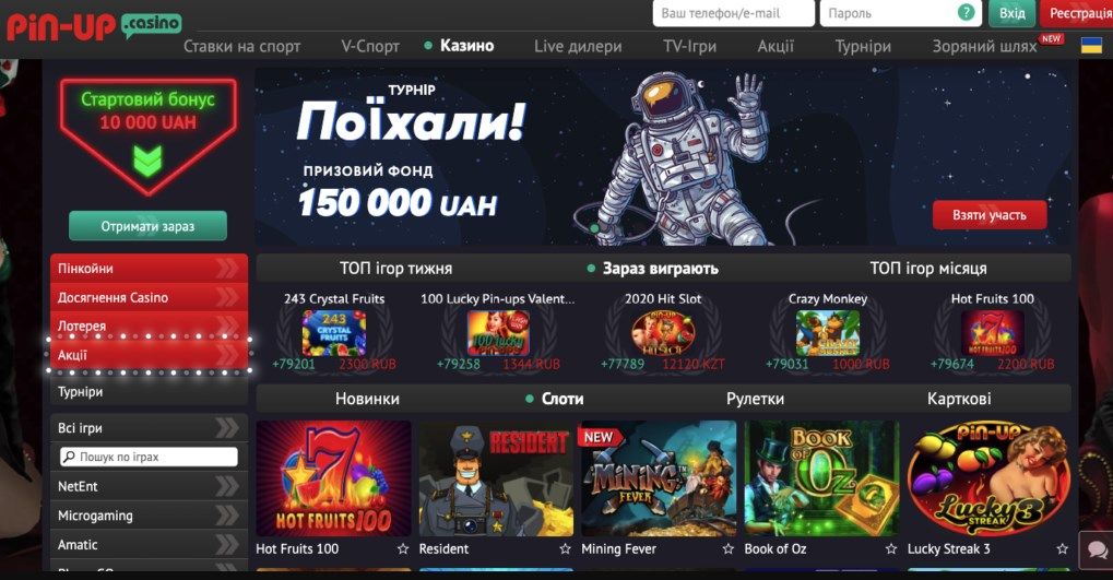 Ліцензоване казино онлайн Пінап – велика кількість азартних ігор на гроші від відомих постачальників софту. Щоб почати грати на гривні, потрібно пройти процедуру реєстрації, а щоб виводити виграш – верифікувати акаунт.