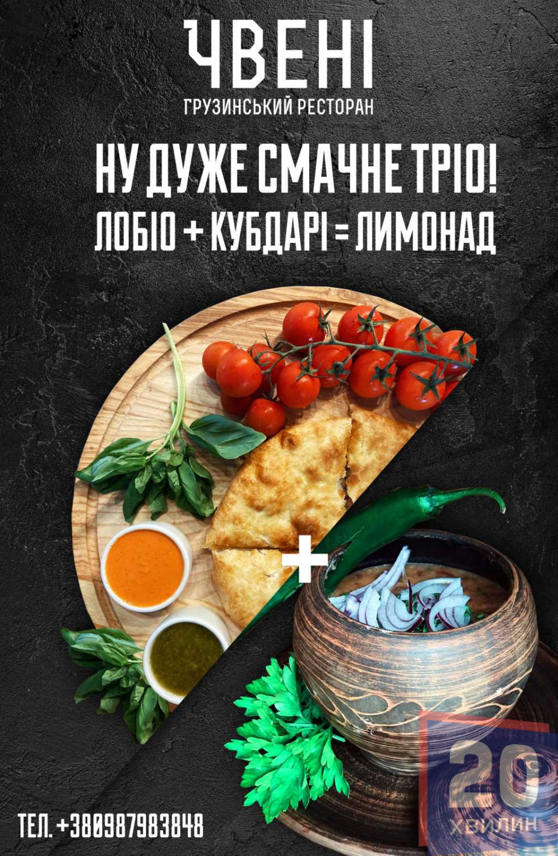 Пікантний шашлик, хрусткі хачапурі, апетитні хінкалі, що так і тануть у роті, терпкий післясмак ароматного вина – все це ті смаки та аромати Грузії, за якими відтепер непотрібно перетинати кордони. Ці та інші страви вже можуть і мусять скуштувати усі тернополяни, тому що частинку Грузії можна знайти у самому серці Тернополя, біля його водної перлини. Ресторан «Чвені» розташований справа від входу в готель «Тернопіль» і саме він гостинно відчиняє двері для кожного з нас.