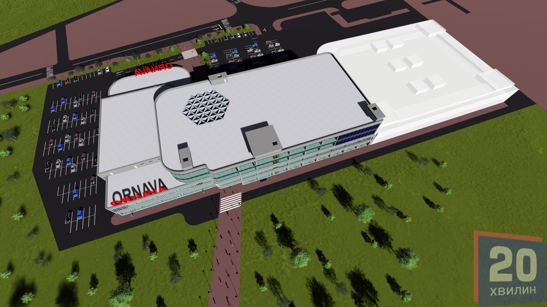 Архітектурні рішення в проекті будівництва торгово-розважального центру дадуть йому змогу бути одним із найкращих розважальних комплексів на західній Україні. Cпортивний комплекс‚ боулінг‚ паб‚ нічний клуб‚ кінокомплекс на найсучаснішому рівні‚ дитячі ігрові кімнати‚ ресторани.