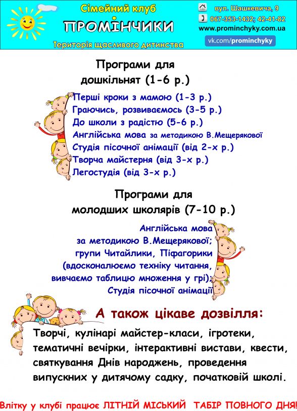 ЛАСКАВО ПРОСИМО В «ПРОМІНЧИКИ» — ЗАТИШНИЙ СІМЕЙНИЙ КЛУБ ДЛЯ ДІТЕЙ І ДЛЯ БАТЬКІВ!