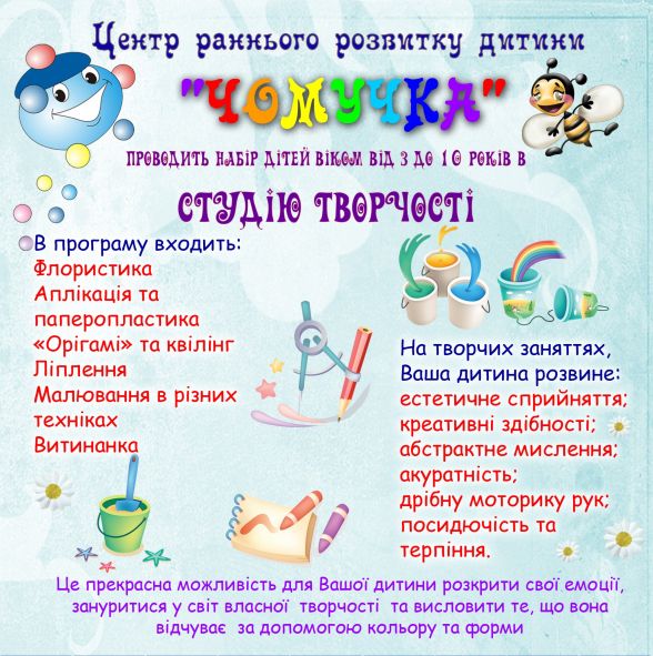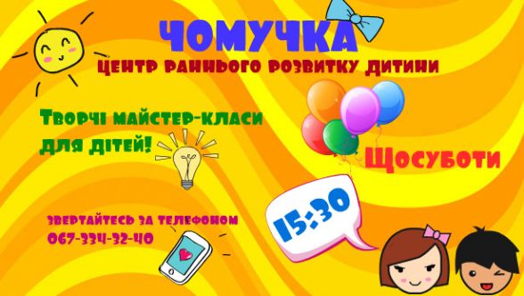 В дитячому центрі «ЧОМУЧКА» проводиться комплекс розвиваючих занять для дітей віком від 2 до 6 років за участю кваліфікованих фахівців з питань раннього розвитку дитини