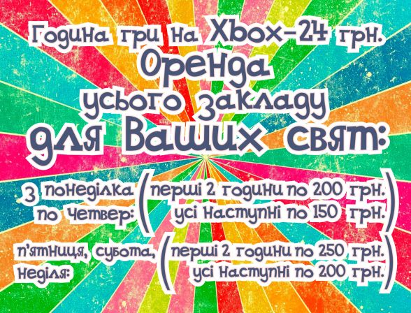 У нас караоке, Х-Бокс, іграшки, настільні ігри, конструктори, сухий басейн з гіркою, синтизатор, машинки та багато іншого!