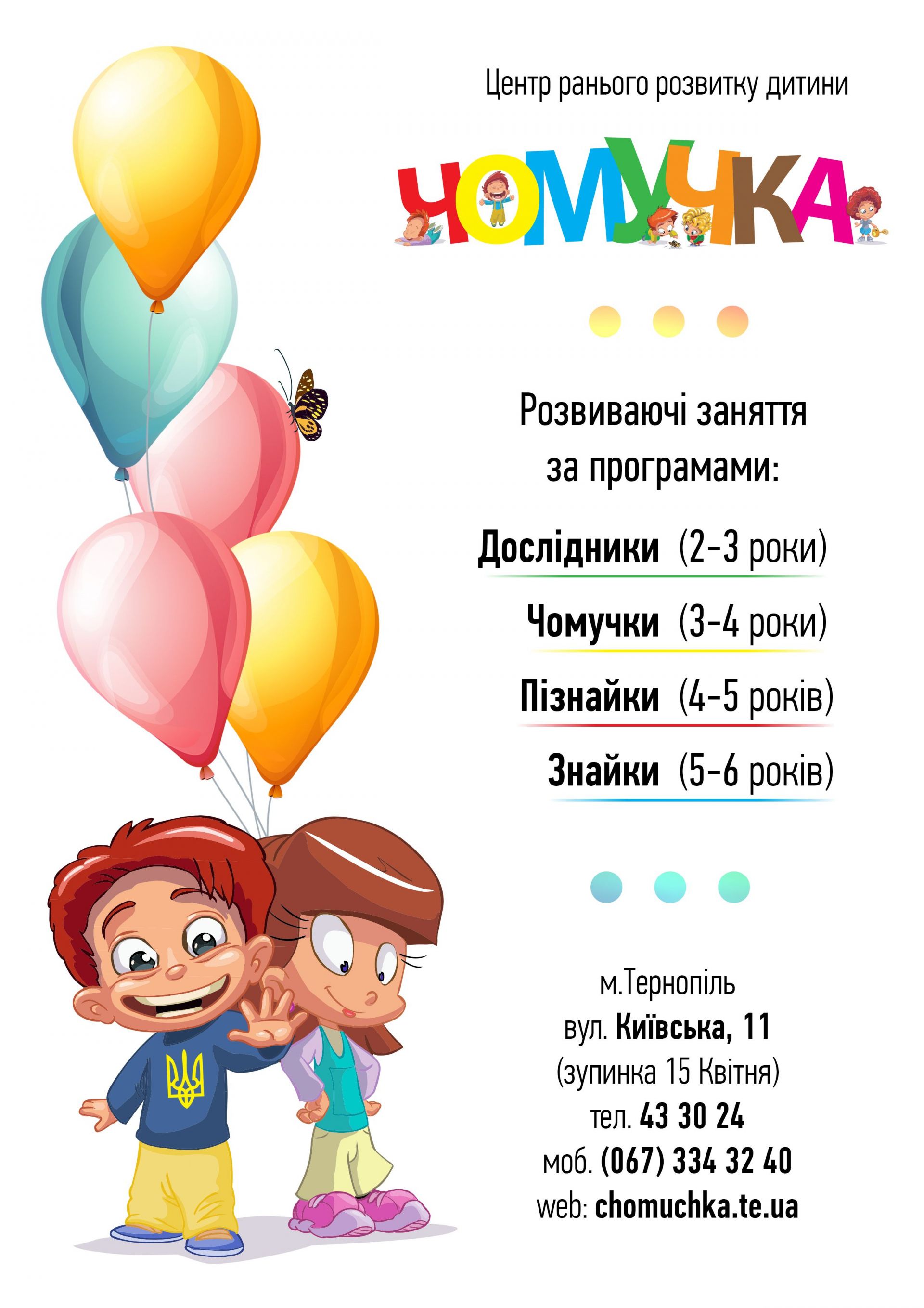 В дитячому центрі «ЧОМУЧКА» проводиться комплекс розвиваючих занять для дітей віком від 2 до 6 років за участю кваліфікованих фахівців з питань раннього розвитку дитини.