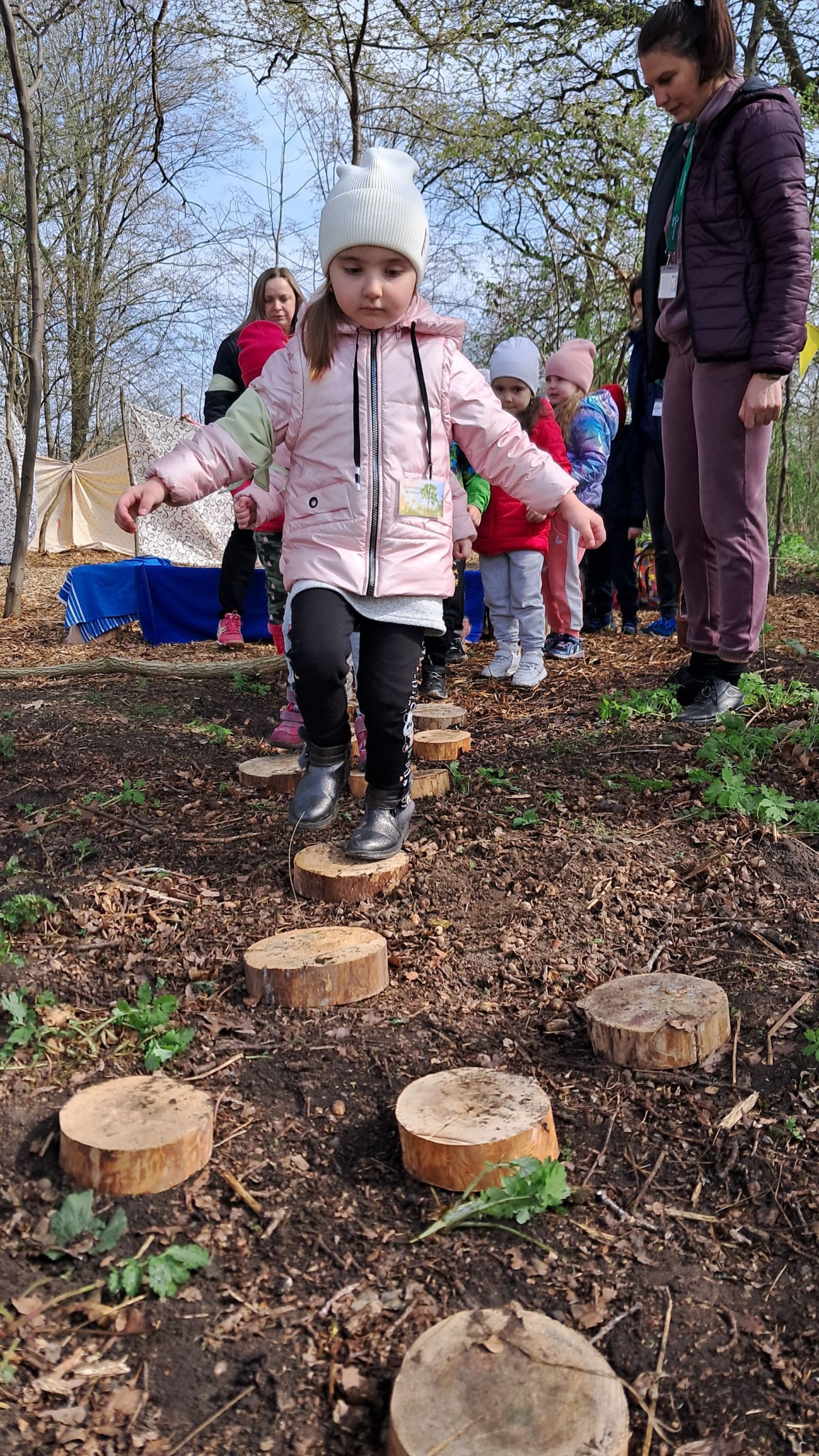 – Сесії ми проводили щосереди, спершу у групах, а потім на вулиці. Діти проходили посвяту в охоронців лісу і отримували маленьку місію – берегти природу. Виходячи надвір, вони пам’ятали про свою роль, прислухалися до природи, спостерігали й слухали її. Структура й повторюваність дають відчуття спокою: діти знають, що буде далі, згуртовуються й сміливо виконують завдання, – розповіла Христина Козачок, вихователька та фасилітаторка програми. – У лісі діти крок за кроком облаштовували своє Безпечне місце: будиночок, рукомийник, лавочки з пеньків, розпалювали вогонь і обговорювали важливі речі. Дорогою долали «річку» та « гасили вогонь», що розвивало віру, емоції, соціальні зв’язки, уяву, мислення та тілесний ресурс – тобто модель стресодолання BASIC Ph. Кожна справа робила дітей сильнішими: природа відновлюється, і ми відновлюємося разом із нею.