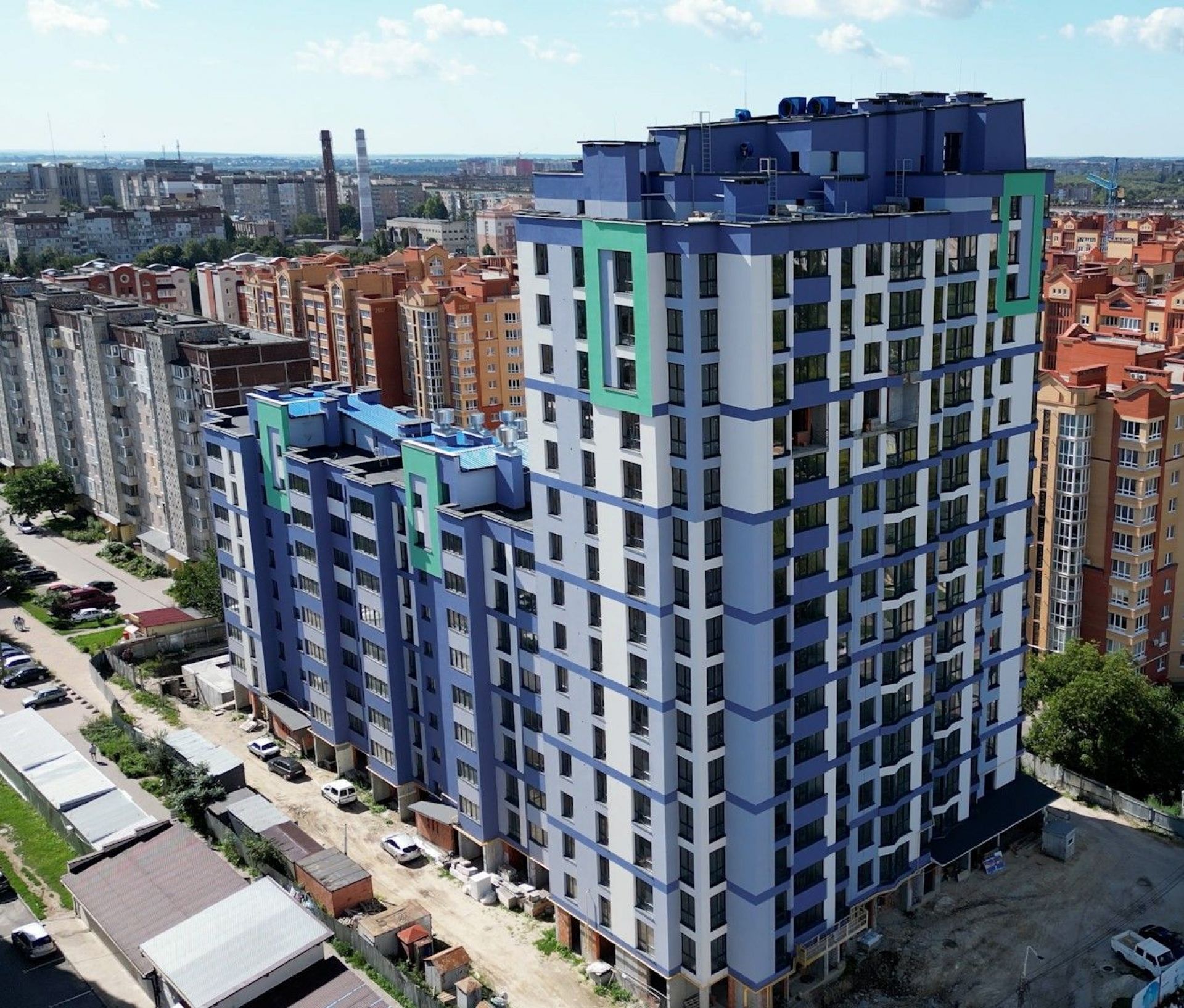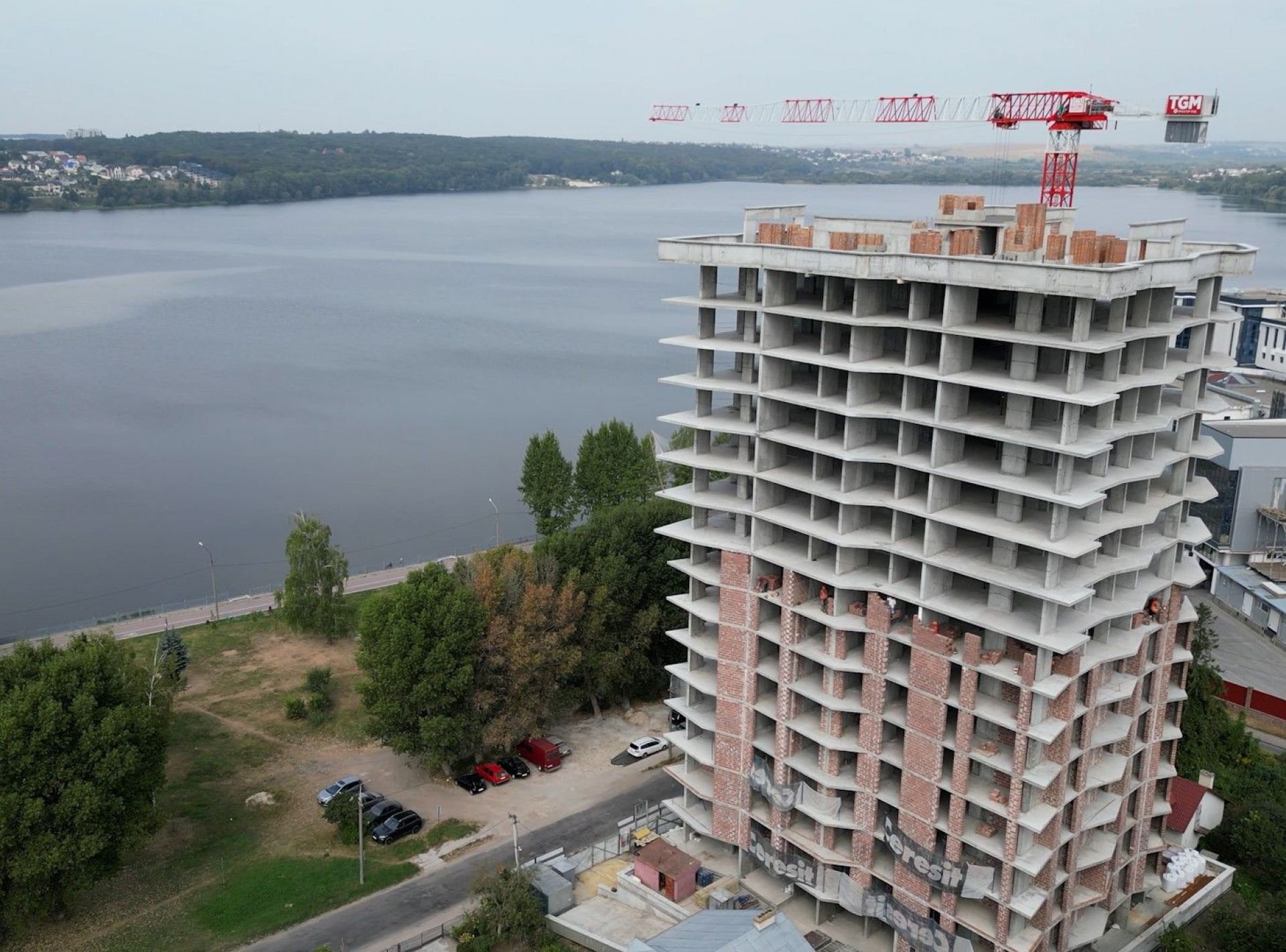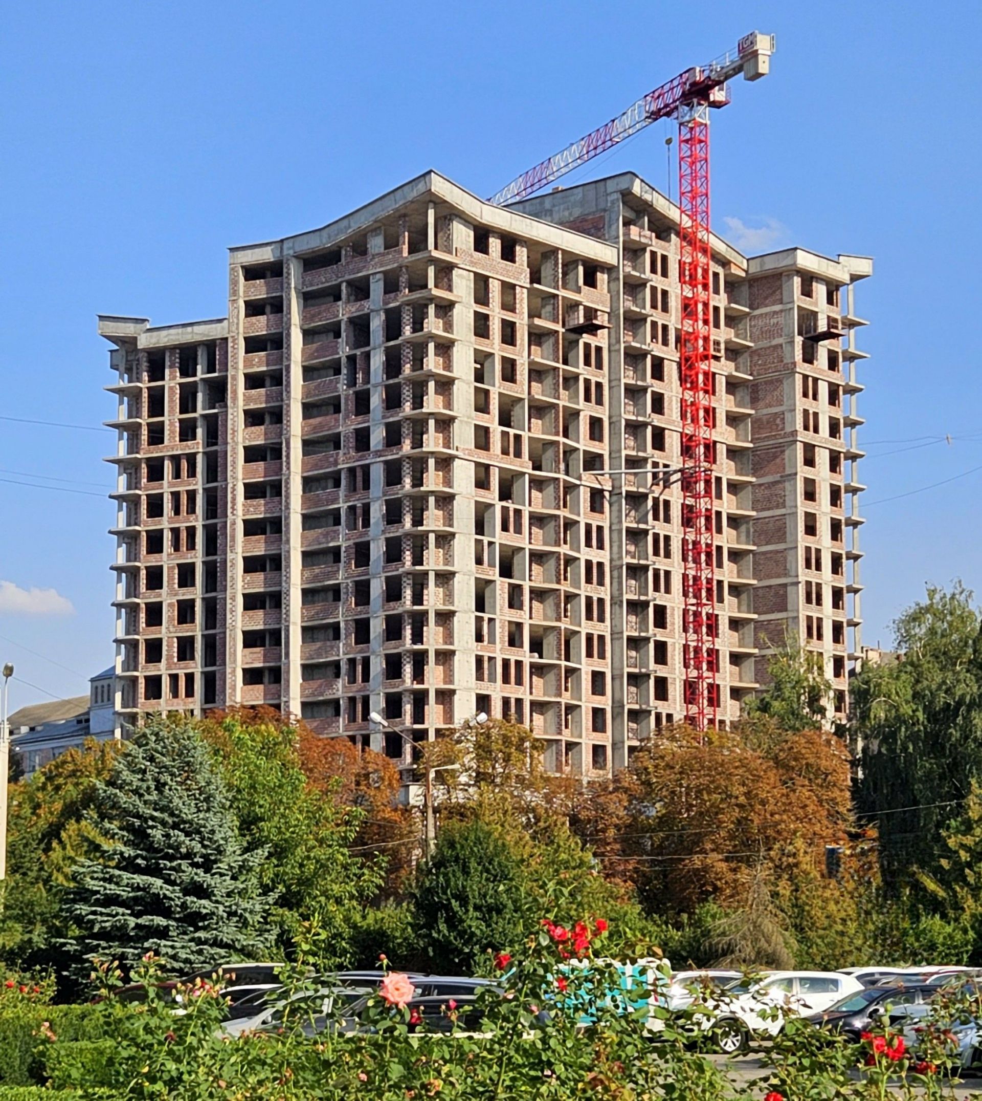 У комплексі ведуться мулярні роботи. Станом на початок вересня ведуться роботи на 10 поверсі. На даху майстри завершили роботи з влаштування димовентиляційних шахт.