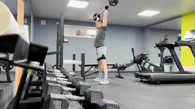 - жим гирі 16 кг стоячи на кількість разів для категорій R1.