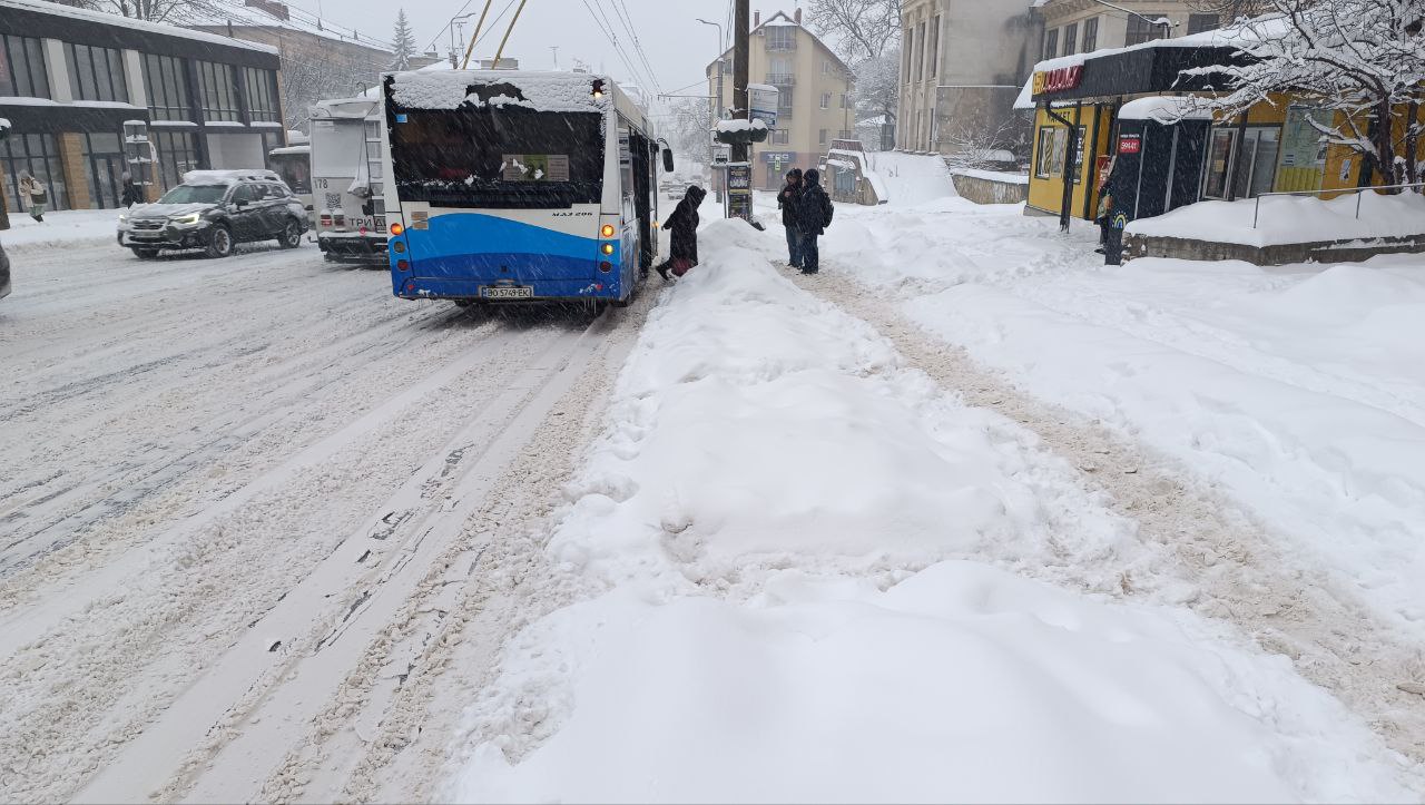 Попри негоду громадський транспорт у Тернополі курсує та перевозить містян за звичайним графіком. На маршрути вийшли як автобуси, так і тролейбуси.