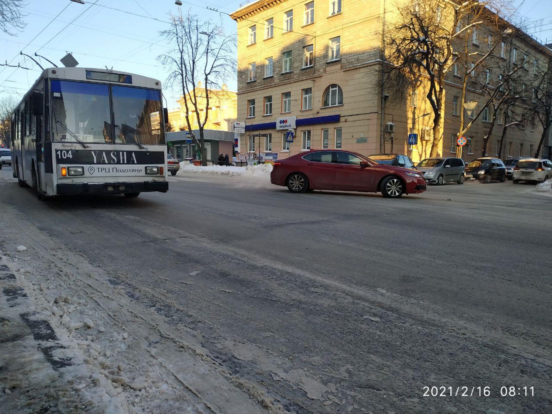 У цей же час до зупинки під’їхав перший тролейбус, не шкільний, та й дітям у нього також зайти не вдалося. Бо старші просто ринулися силою у транспорт.