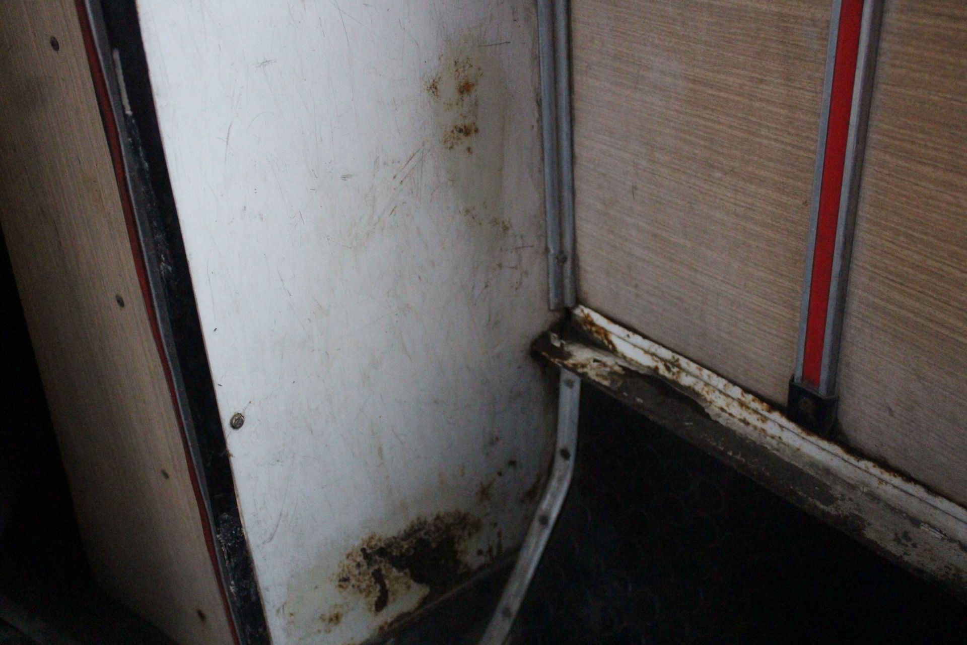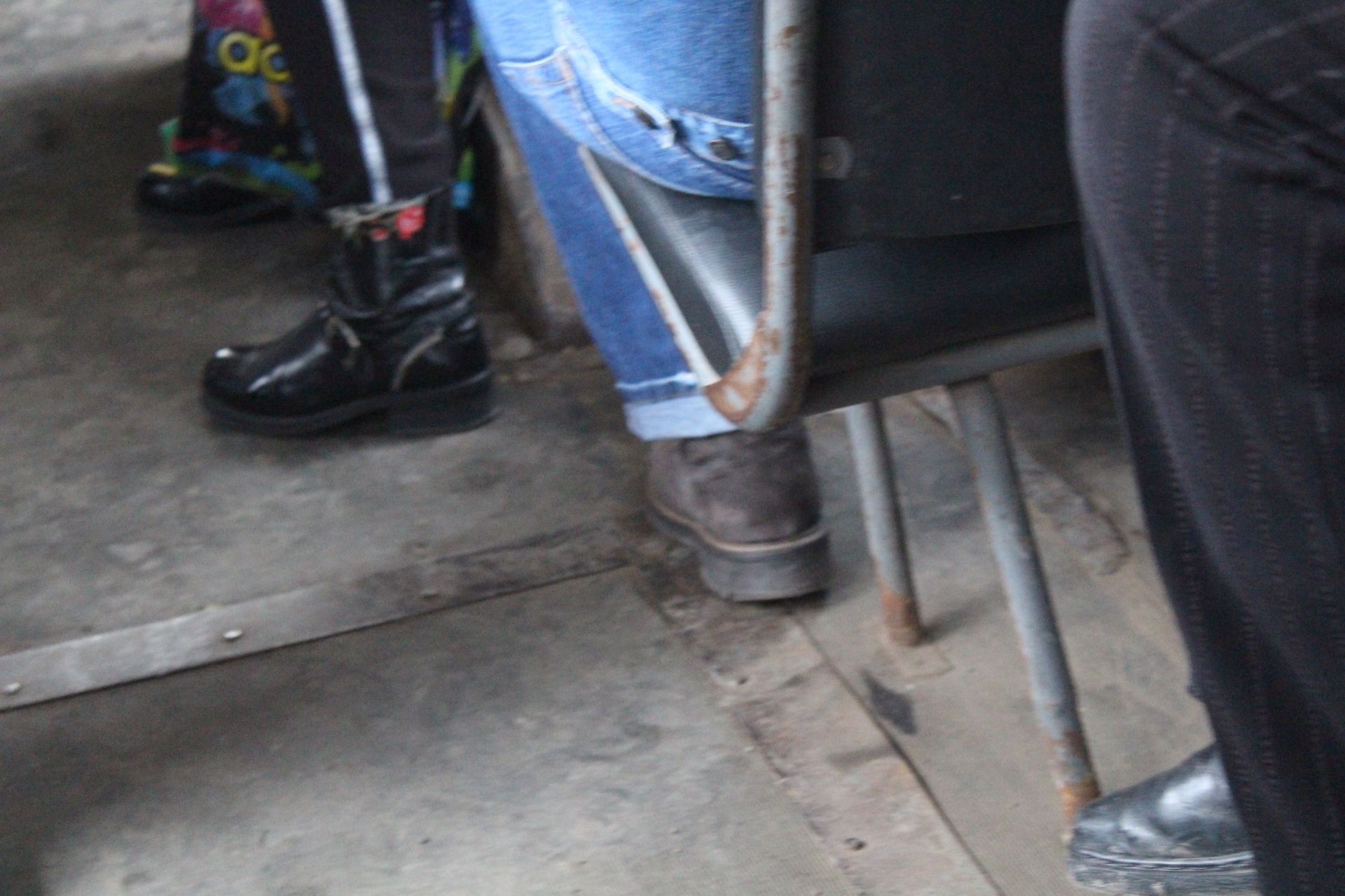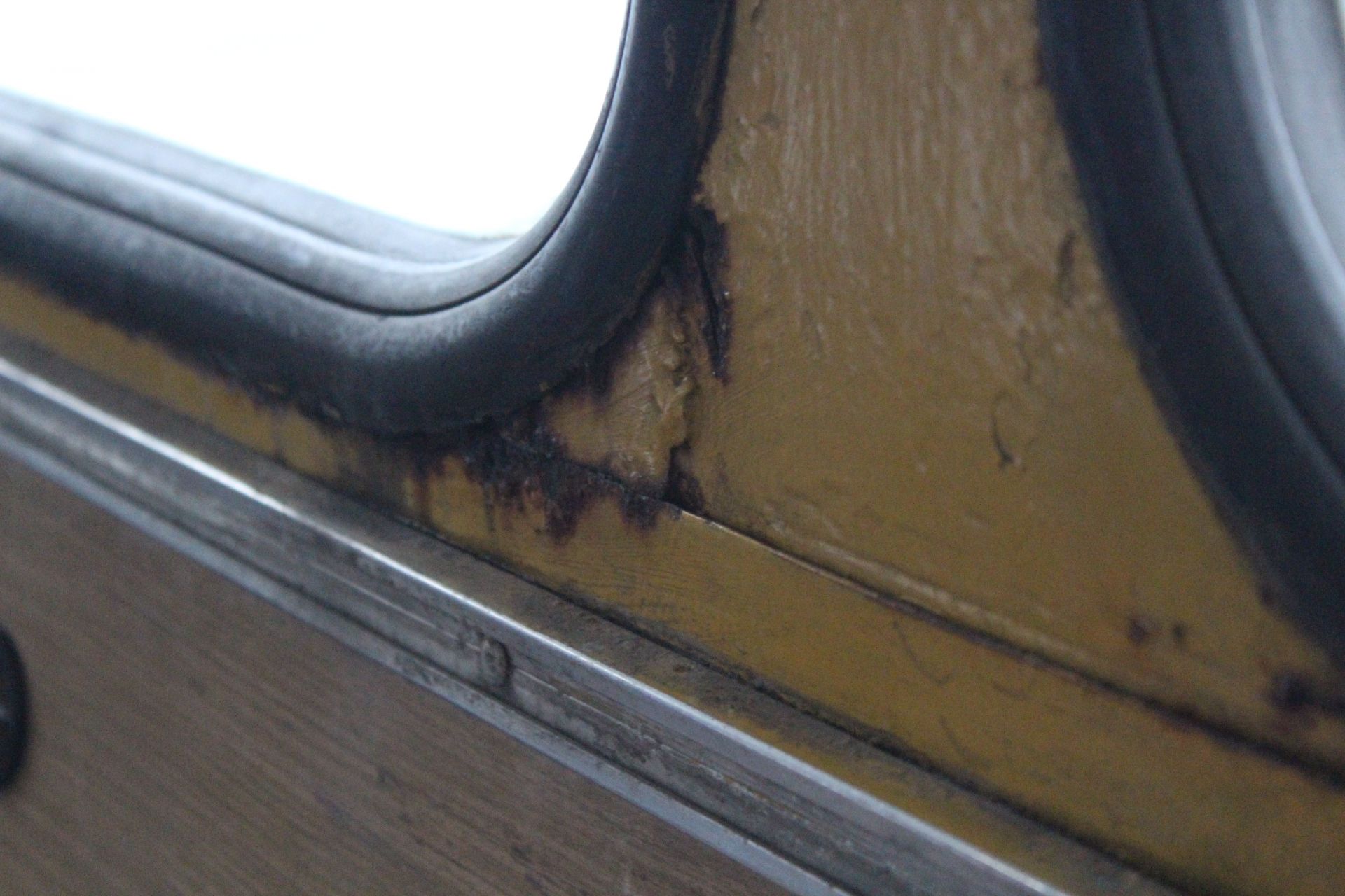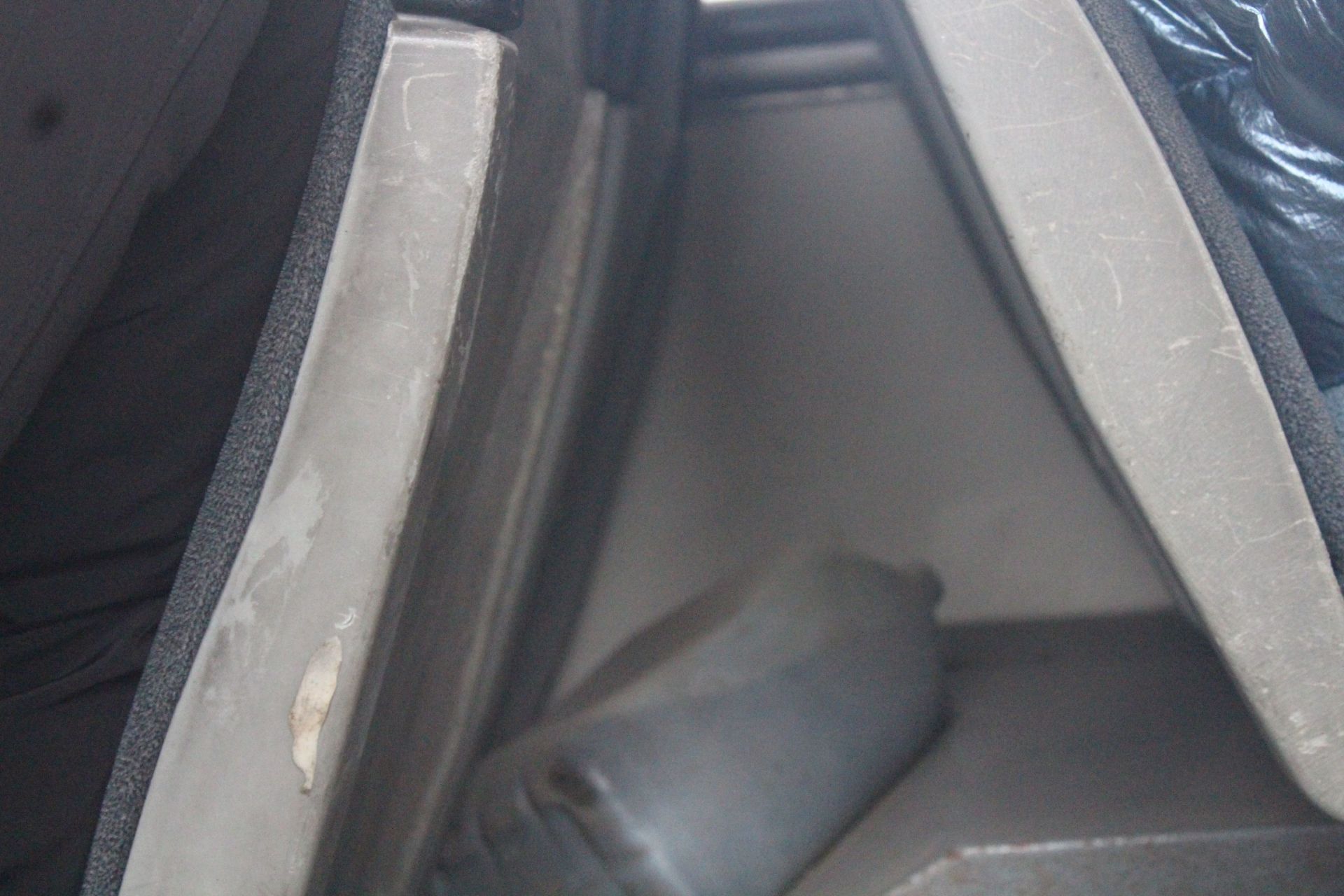 В середині він виглядає не краще. На багатьох сидіннях обшивка почала рватися. За нею видніється старий пожовклий поролон. Метал ржавіє. Особливо це помітно біля підлоги. Стара жовта фарба вже починає лущитися. На підлогу хтось розлив білу фарбу.
