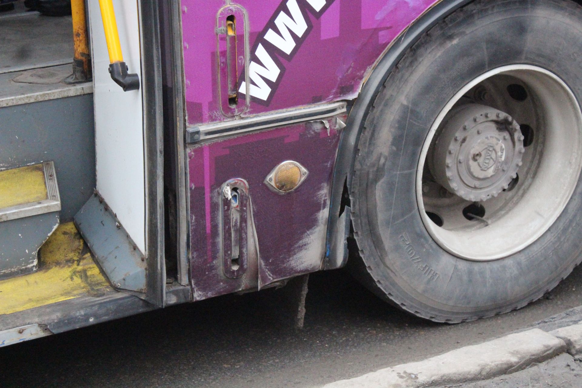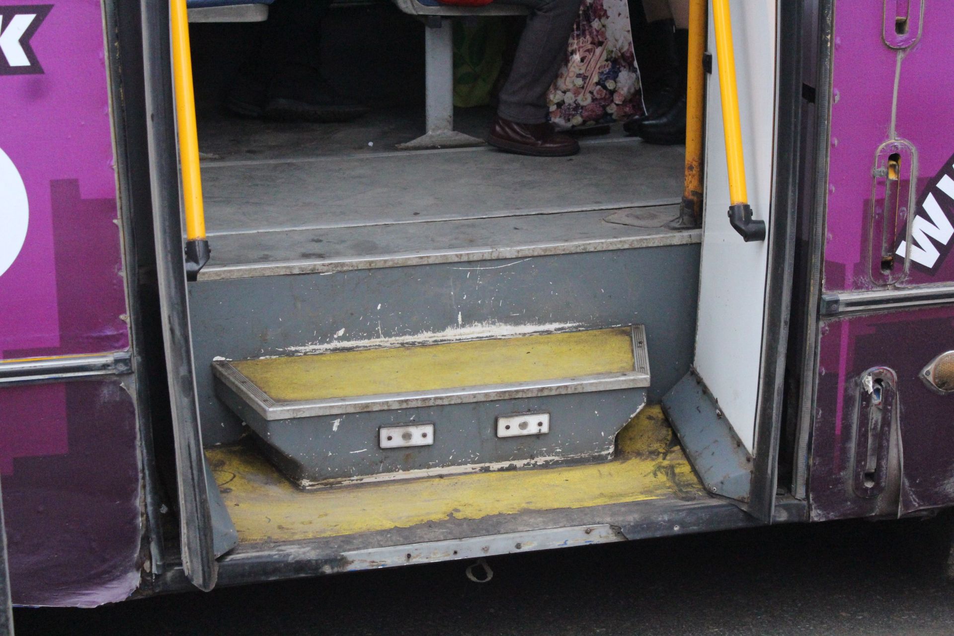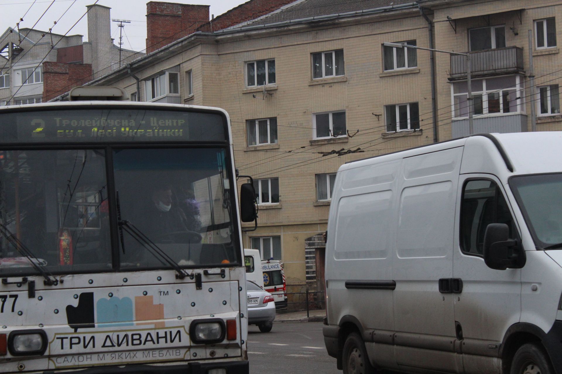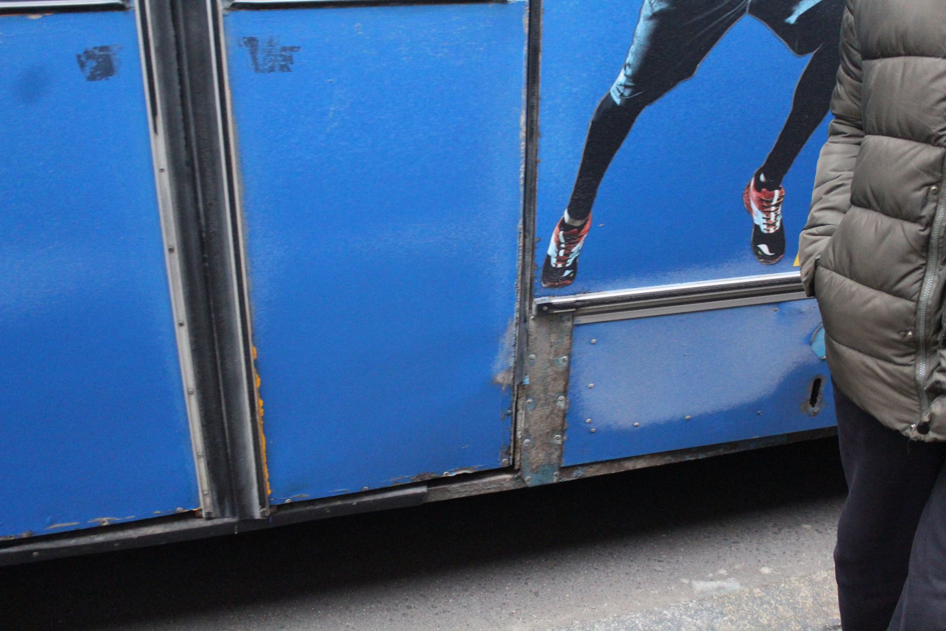 Перший під’їхав старенький тролейбус, який їде за маршутом №1. Зовні він не виглядає старим, однак якщо придивитися – можна побачити метал, який роз’їдає ржавчина. Кілька шарів фарби. Задні двері відчиняються погано. Пасажири, коли виходять з тролейбуса, руками привідчиняють двері, щоб вони швидше відкрились.