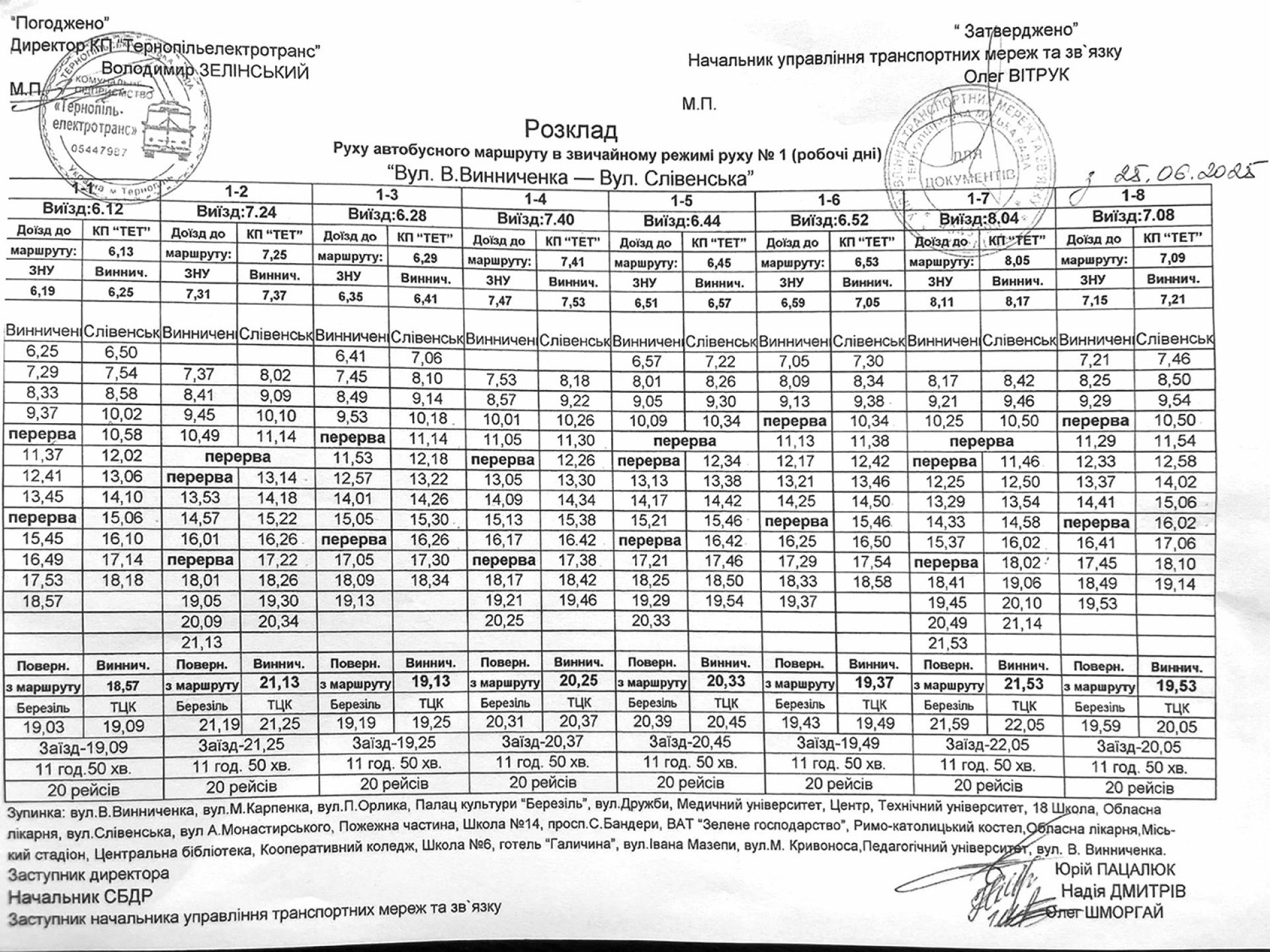 - №1 (автобус, колишній №1А) – оновили розклади;