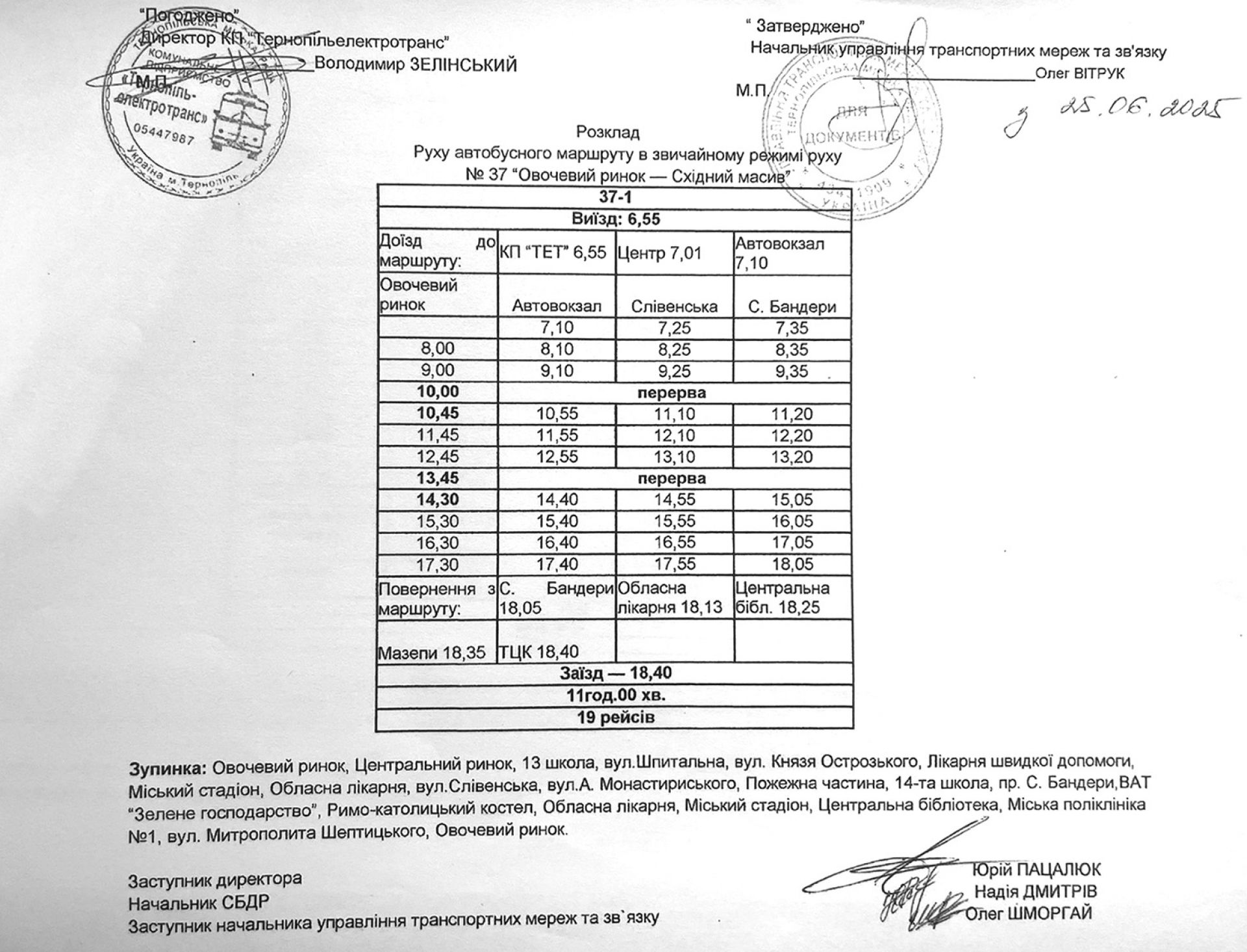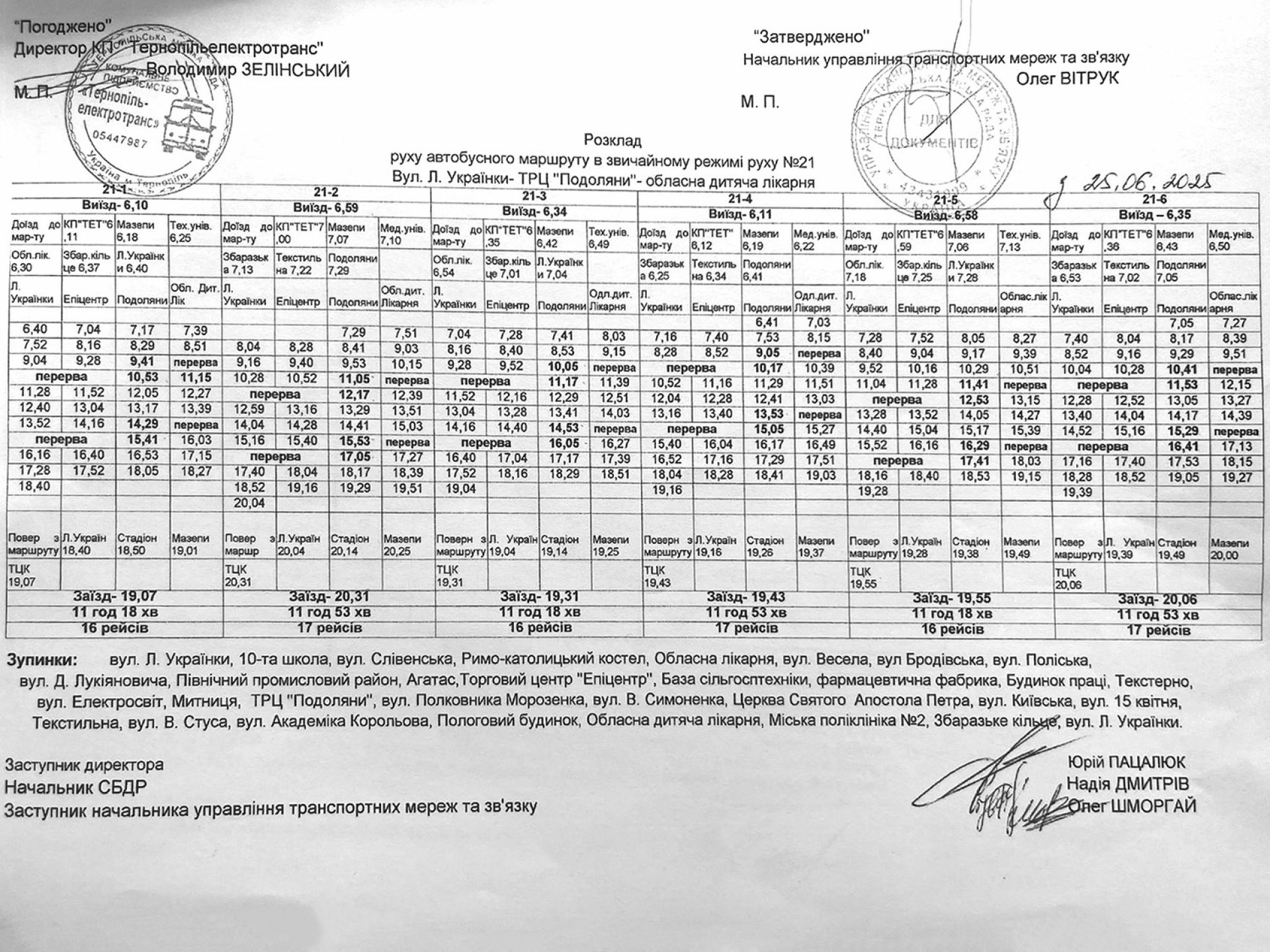 Графіки всіх автобусних та тролейбусних маршрутів є на сайті Тернопільської міської ради.