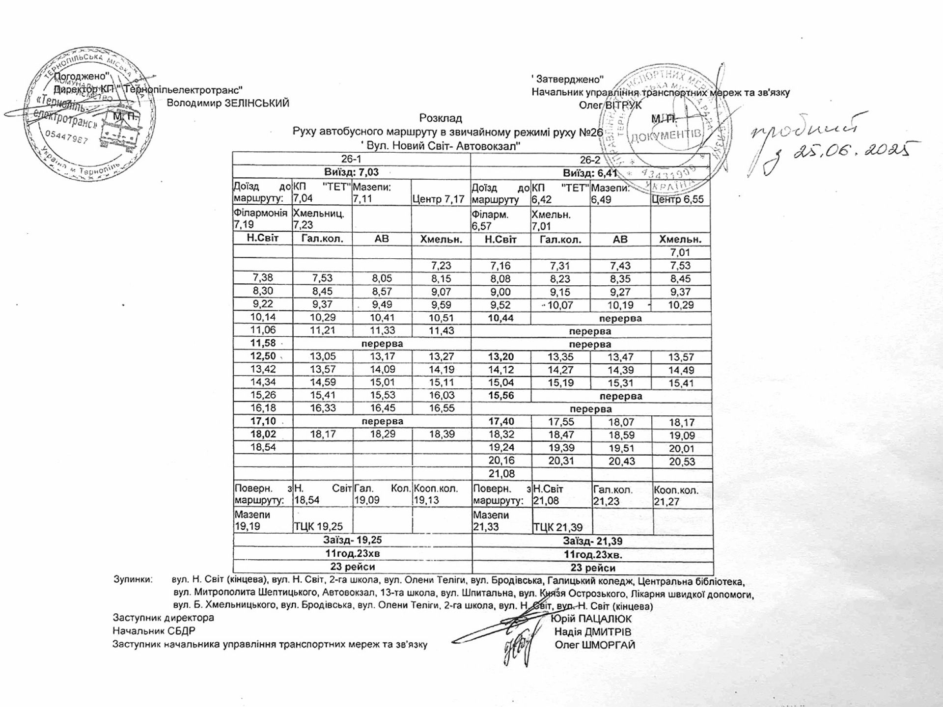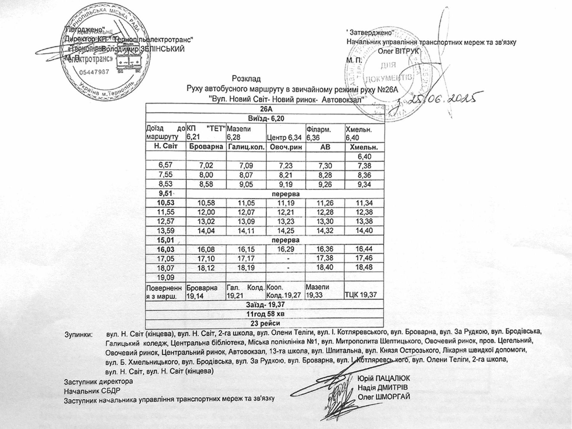 - №26А (автобус, колишній №6А) – оновили розклади;
