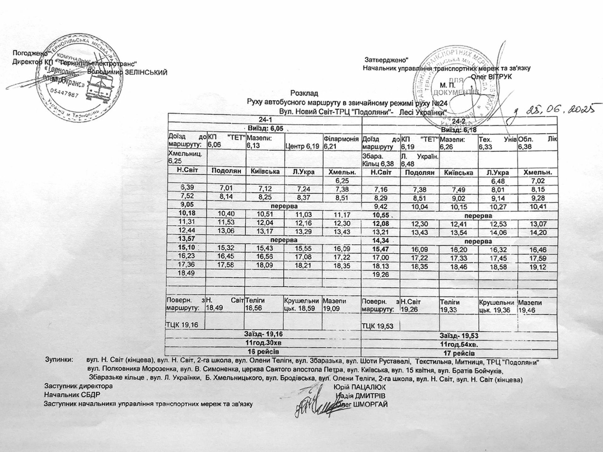Із 25 червня 2025 року в Тернополі вступають у дію зміни до мережі автобусних і тролейбусних маршрутів. Їх розробила робоча група на основі звернень мешканців, аналізу роботи громадського транспорту, змін у пасажиропотоках та появи нових місць тяжіння пасажирів. Зміни затверджені рішенням виконавчого комітету міської ради.