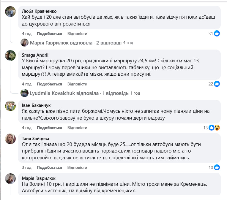У коментарях до допису міського голови Кременця чимало містян скаржаться на поганий стан міських автобусів.