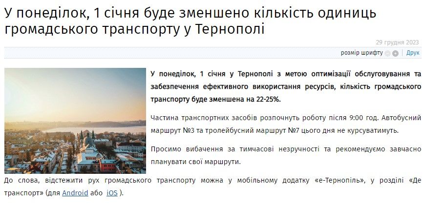 Як 1 січня курсуватиме громадський транспорт у Тернополі?