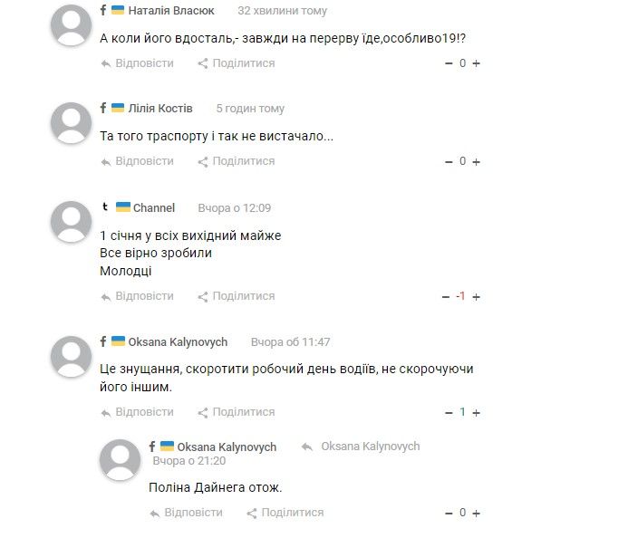 Тернополяни у коментарях до нашого матеріалу по-різному відреагували на повідомлення про зміни в роботі громадського транспорту. Хтось писав, мовляв, 1 січня майже у всіх вихідний, тому все зробили вірно. Інші обурювались, як це – «скоротили робочий день водіїв, не скорочуючи його іншим». Або люди хвилюються, чи зможуть дістатися на роботу у понеділок вранці.