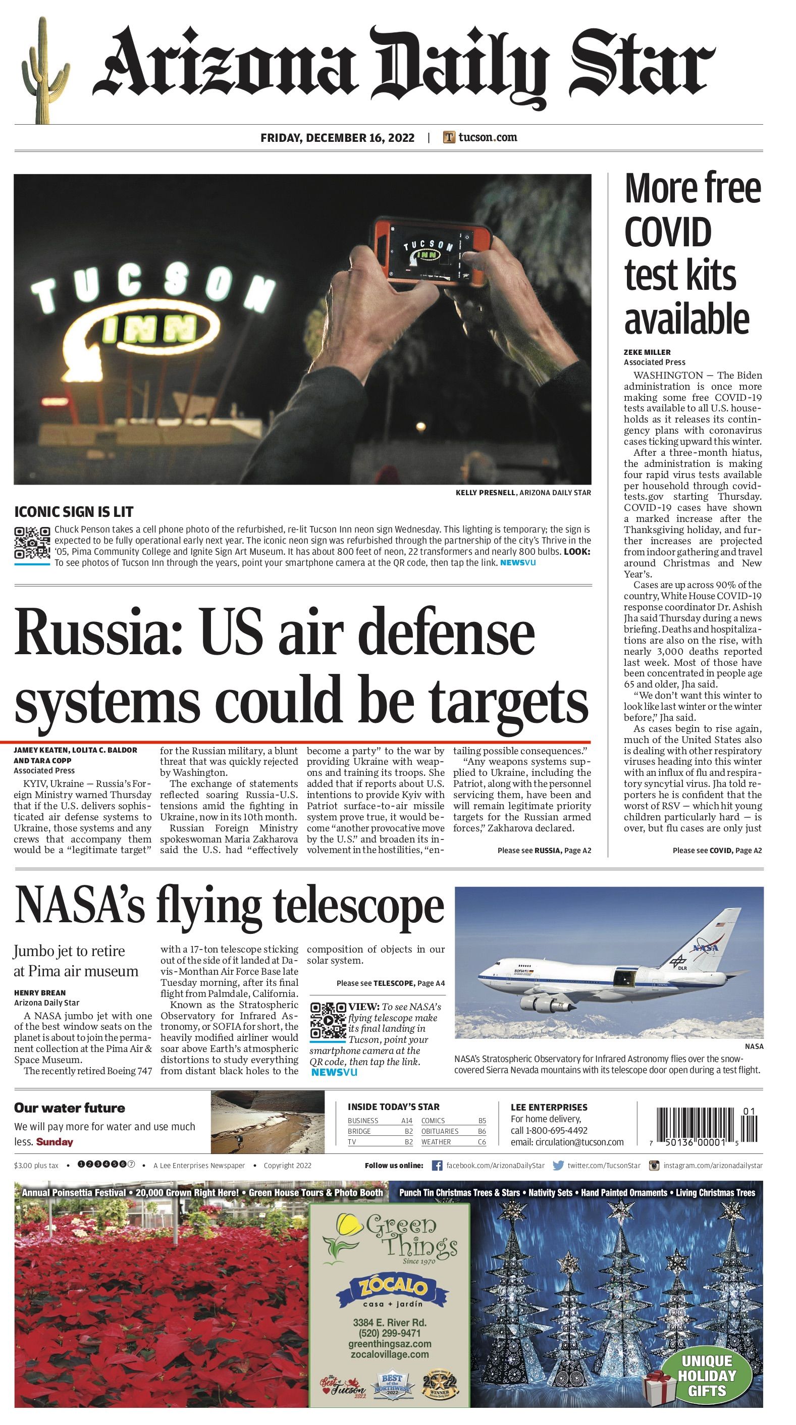 «Arizona Daily Star» — «Росія: системи ППО США можуть стати цілями»
