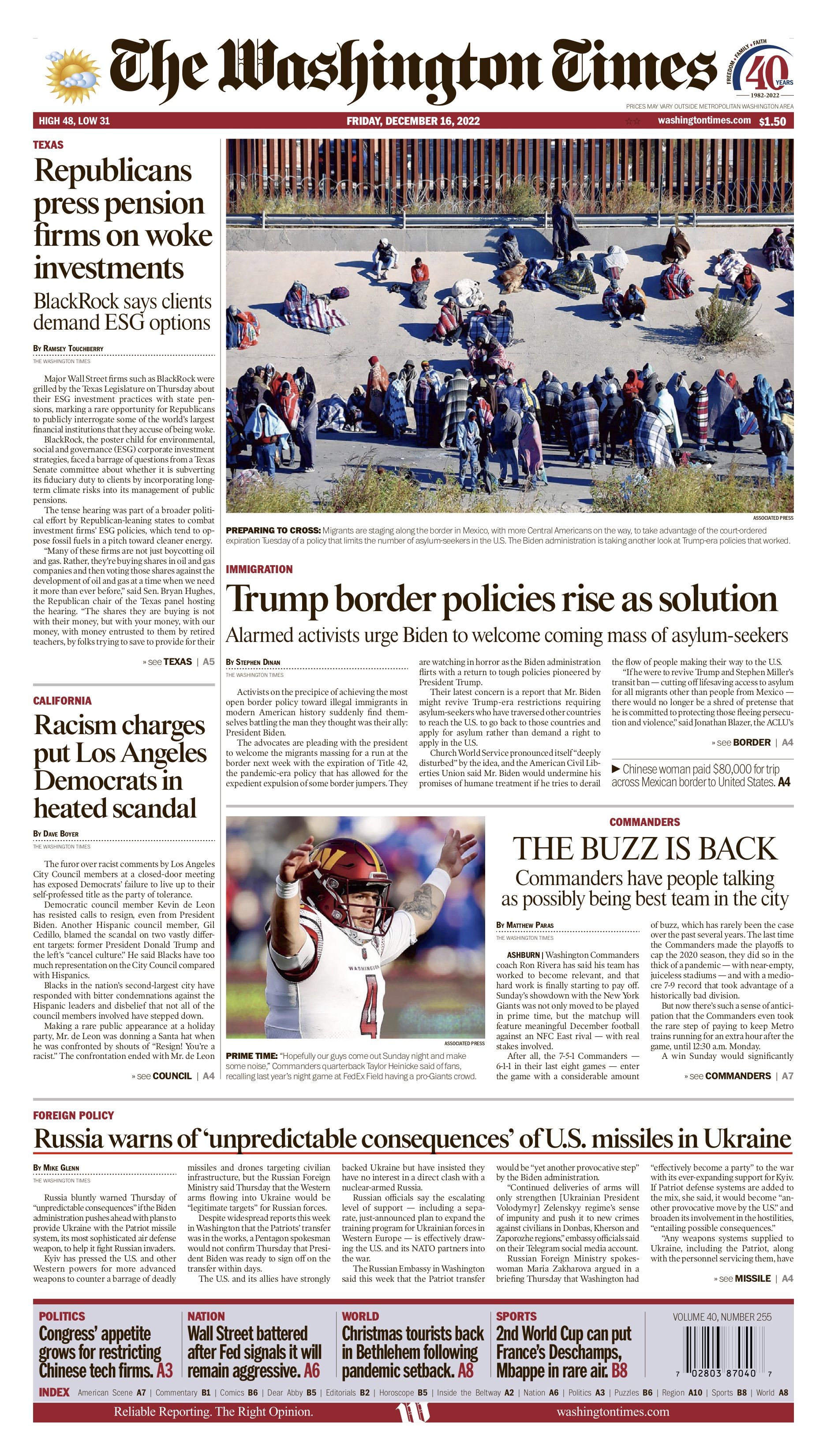 Росія готує масштабний наступ у новому році і нарощує сили для просування вглиб України аж до Києва, попередив вищий командувач. Головнокомандувач Збройних сил України генерал Валерій Залужний заявив, що напад може статися "в кращому випадку в лютому, в березні, а в гіршому - в кінці січня". Він попередив, що мобілізація Москви «спрацювала» і Росія збирає війська, щоб запобігти поразкам влітку.